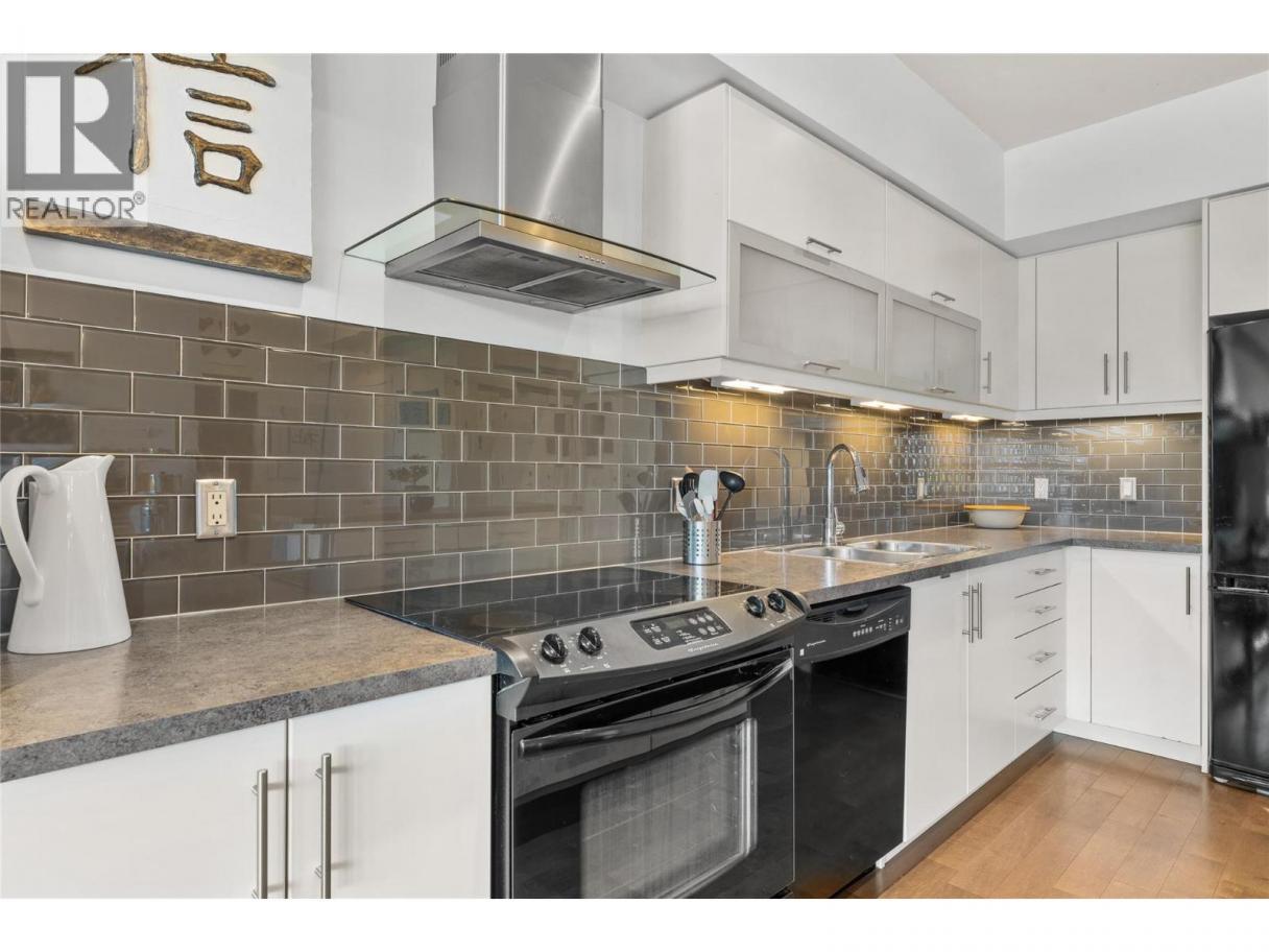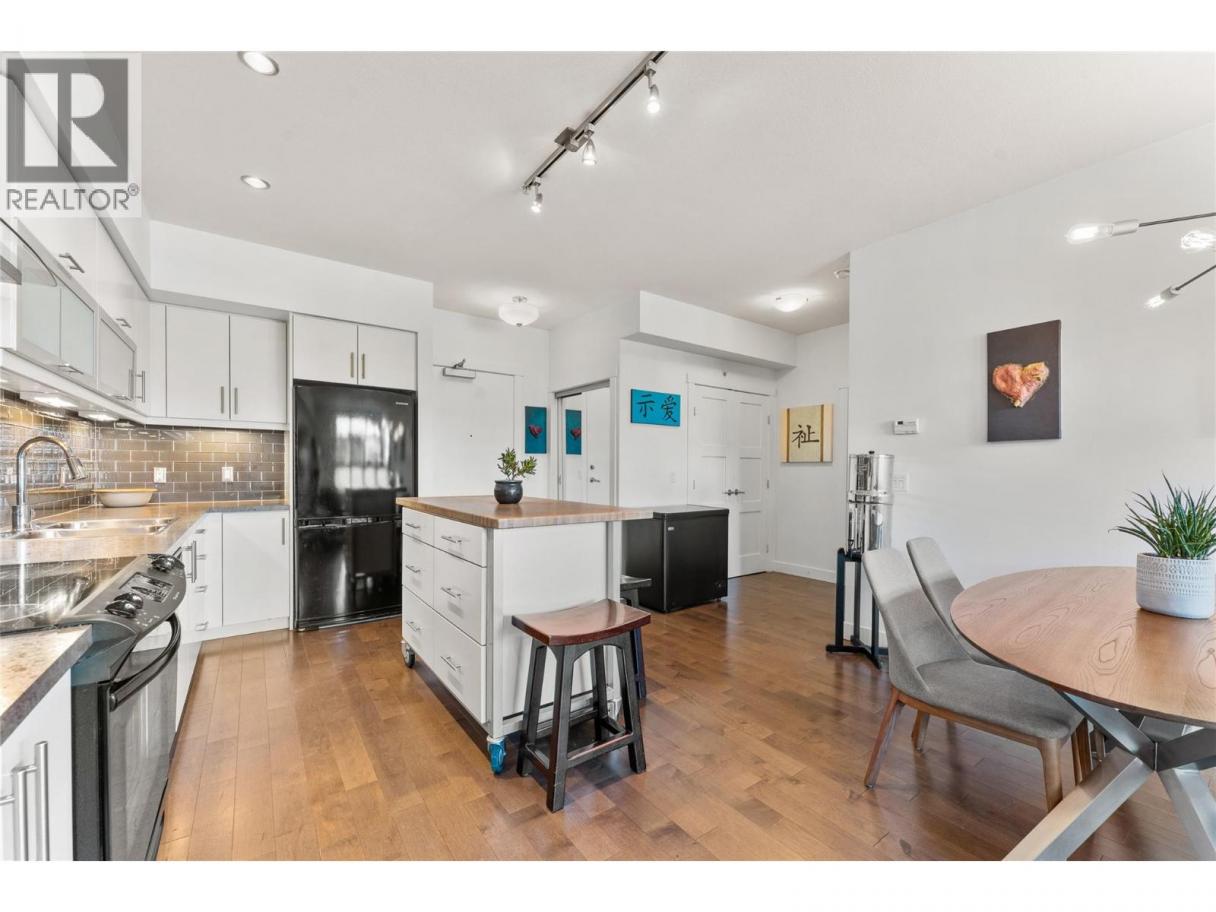 Welcome to #307 700 Martin Avenue! Located at the Martin Lofts – a boutique condo building in downtown Kelowna – this beautiful, well-appointed north-facing 1-bedroom, 1-bathroom unit includes 736 sq. Ft of living space with a huge outdoor balcony! This unit features a modern design, with bright, open living space and natural light throughout. The kitchen is equipped with white cabinets, modern backsplash, black appliances, and opens onto the dining area and living room with direct access to a large private balcony – perfect for morning coffee, evening relaxation, or entertaining friends. Whether you are a first-time home buyer, investor, or looking for a low-maintenance home in a prime location, this unit offers the lifestyle and convenience you are looking for. Located just outside of the downtown core – walk to restaurants, breweries, wineries, public transit, Waterfront Boardwalk, and City Park. One heated underground parking stall and storage locker included. Amenities include a fitness centre, secure bike storage, and electric vehicle (EV) charging stations. Rentals are allowed, with restrictions (min. 30 days), and pets are also allowed, with restrictions (one dog or one cat). (id:6769)