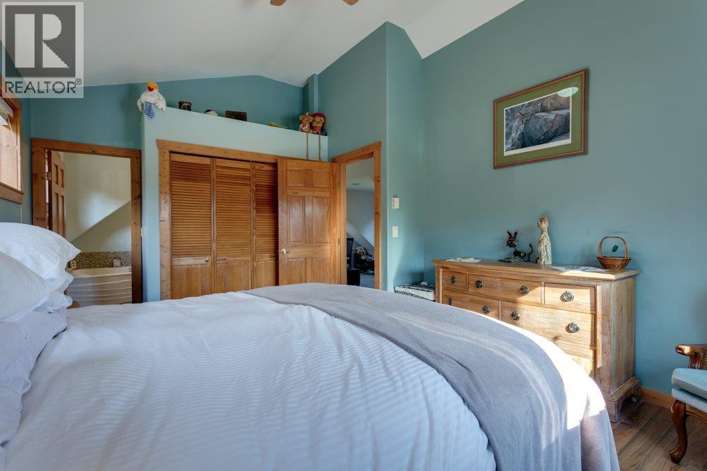 Spacious 3-Bedroom Home Backing Onto Parkland! This 2200+ sq.ft. 3-bedroom, 3-bathroom home offers the perfect blend of comfort, function, and outdoor living, all while backing onto beautiful provincial parkland and 5min walk to the lake. The inviting main floor features a bright kitchen, dining area, living room with fireplace, and a bedroom serviced by a full bathroom with laundry. Step outside to enjoy the large front porch or expansive back deck, creating seamless indoor/outdoor living. Upstairs, a spacious loft overlooks the main level and connects to a private balcony. The master bedroom includes a full ensuite with a large soaker tub. The lower level adds a large recreation room, a third bedroom, and flexible spaces that can easily convert into an additional bedroom. The well-manicured yard features fruit trees, gardens, and a back gate leading directly into the park. A detached 2-car garage/shop is perfect for hobbies, projects, or storing all your toys, with plenty of additional parking available. Includes recent heat pumps for summer cooling and new Hot Water Tank. Built in 2008, this home is ideal for retirees seeking a quiet retreat or families wanting space and direct access to outdoor adventures. Hydro averages just $100/month! Come grab your piece of paradise before it’s gone! (id:6769)