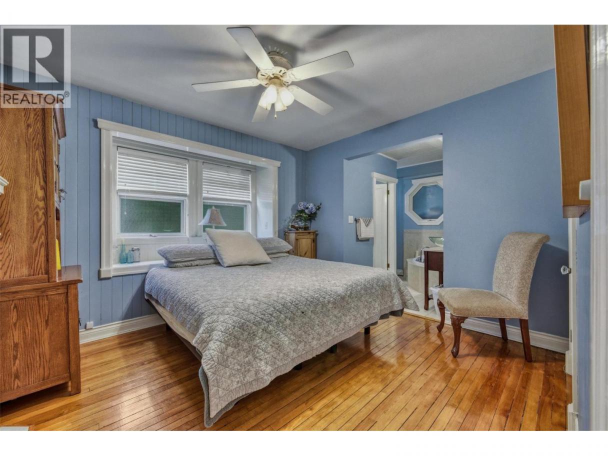 Step into a piece of history with this beautifully updated 1948 Victorian-style home. This stunning 4-bedroom, 4-bath residence offers an open floor plan with a cozy gas fireplace and large, bright windows in the family room to take in the lake views. The kitchen is a chef’s dream, boasting granite countertops, a lovely island, a coffee station, and a pantry, all complemented by stainless steel appliances. The spacious eating area in the kitchen is great for family meals. The family room off the kitchen is perfect for the teens. The huge front entrance provides plenty of room for everyone to enter the home comfortably. The main floor features 2 bedrooms plus 1 1/2 baths. The 2nd floor features 2 more spacious bedrooms, a full bath & a wonderful games room. Enjoy the large covered deck for summer barbecues or relax in the sunken hot tub with stunning lake views. Throughout the home, you’ll find plenty of upgrades, including updated wiring and plumbing, as well as fresh paint, a newer furnace, new air conditioner, and newer hot water tank. The fully fenced yard features two barns with lofts, a gazebo, a fire pit area, and beautifully maintained lawns. Located right across from the Grey Canal walking trail for ultimate convenience. Come see your dream home today! (id:6769)