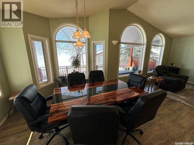 Check out this Fabulous AAA waterfront property (144' of sandy beach) with oversize double car garage and an additional boathouse garage at Collingwood Lakeshore Estates just 1 hour North of Regina on Last Mountain lake. There is an ADDITIONAL titled lot across the street for future building or additional parking and storage that is included in the sale. This beautiful fully landscaped yard is so private with mature trees, underground sprinklers and numerous patios totalling just over a 1 acre land. Walking up to this 4 season home you automatically see has so much the property has to offer with a beautiful covered private deck just off the front entry which is absolutely perfect for those morning coffees. The smart design of the house gives you breathtaking west views of the lake. Stepping into the foyer you immediately see the modern entertainers kitchen which overlooks the livingroom and dining room with 14' vaulted ceiling with feature natural gas fireplace all overlooking west views of the lake the lake with oversize windows. The fabulous kitchen with granite countertops has a large breakfast island and comes complete with stove, fridge, built in dishwasher and microwave hood fan. The dining area is conveniently set off to the front and side of the great room with direct exit to another covered deck. The large primary bedroom has a convenient 3 piece ensuite. There are 2 additional bedrooms, 4 piece bath and a laundry /storage room that completes the home. The detached drive thru boat house garage is perfect for all of your toys. The detached double car main garage is also heated. This home is an absolute gem and is such a pleasure to show. For a virtual walkthru please click on link or view https://unbranded.youriguide.com/194_gordon_drive_collingwood_sk/ (id:6769)