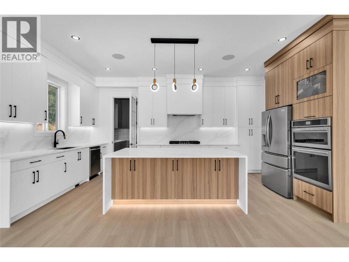 Welcome to 1176 Hume Avenue! A stunning south-facing luxury home tucked away on a quiet cul-de-sac in Black Mountain. Designed to impress at every level, it offers exceptional space, style, and functionality, paired with sweeping panoramic views of the valley, lake, city, and mountains. The ground floor makes a grand first impression with a welcoming foyer, a spacious media room with wet bar and full bathroom, and a fully self-contained 2-bedroom legal suite—perfect for extended family or rental income. The main level is the heart of the home, featuring an airy, open-concept design with oversized windows that flood the living spaces with natural light. Here you’ll find both a living and family room, a chef-inspired modern kitchen with spice kitchen, a convenient powder room, and a beautiful primary suite with full ensuite and walk-in closet. Upstairs, the luxury continues with four bedrooms, including two spectacular primary suites, each with private deck access to soak in the incredible Okanagan views. Imagine waking up to mountain sunrises and winding down with city lights sparkling below. With high-end finishes, a thoughtful layout, and a location just minutes from schools, golf, shopping, and dining, 1176 Hume Avenue offers the ultimate blend of luxury, lifestyle, and convenience. GST not applicable. (id:6769)