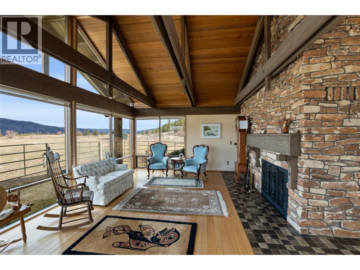 HORSE HEAVEN! This fantastic, flat, 5 acre parcel offers the perfect setting for horse lovers and those who enjoy rural living, while still being close to Kamloops. This beautiful property features a true rancher, executive-style home. The home uses City water and has Natural Gas. The property has a water license for irrigation purposes, connected to the Campbell Creek system. There is a riding arena and valuable, useful outbuildings, which provide a tack room, work shop, tool/equipment storage, and horse stalls. In the house, the floor-to-ceiling windows offer plenty of natural light and the interior, wooden architecture creates a warm and classy atmosphere. The kitchen features high-end, S/S appliances and ample cabinetry, flowing comfortably into a spacious family room. This area opens to a very large deck with a gas bbq connection, a great place to enjoy summer entertaining and appreciate the panoramic views of the northern landscape. The primary bedroom features a spa-like ensuite and a fireplace, flowing out to an expansive sunroom with a gas fireplace and views of the beautiful garden and majestic Evergreens.The main floor also provides a 2nd bedroom, a full bathroom, and a laundry/mud room.The basement has a large office, a cold room, a family room, a storage room, and access from the carport area. If you love golf,as well as horses, Eaglepoint Golf is just down the road.This property and the adjoining 5 acres were operated as one. Two separate titles and water licenses and could be purchased together. (id:6769)