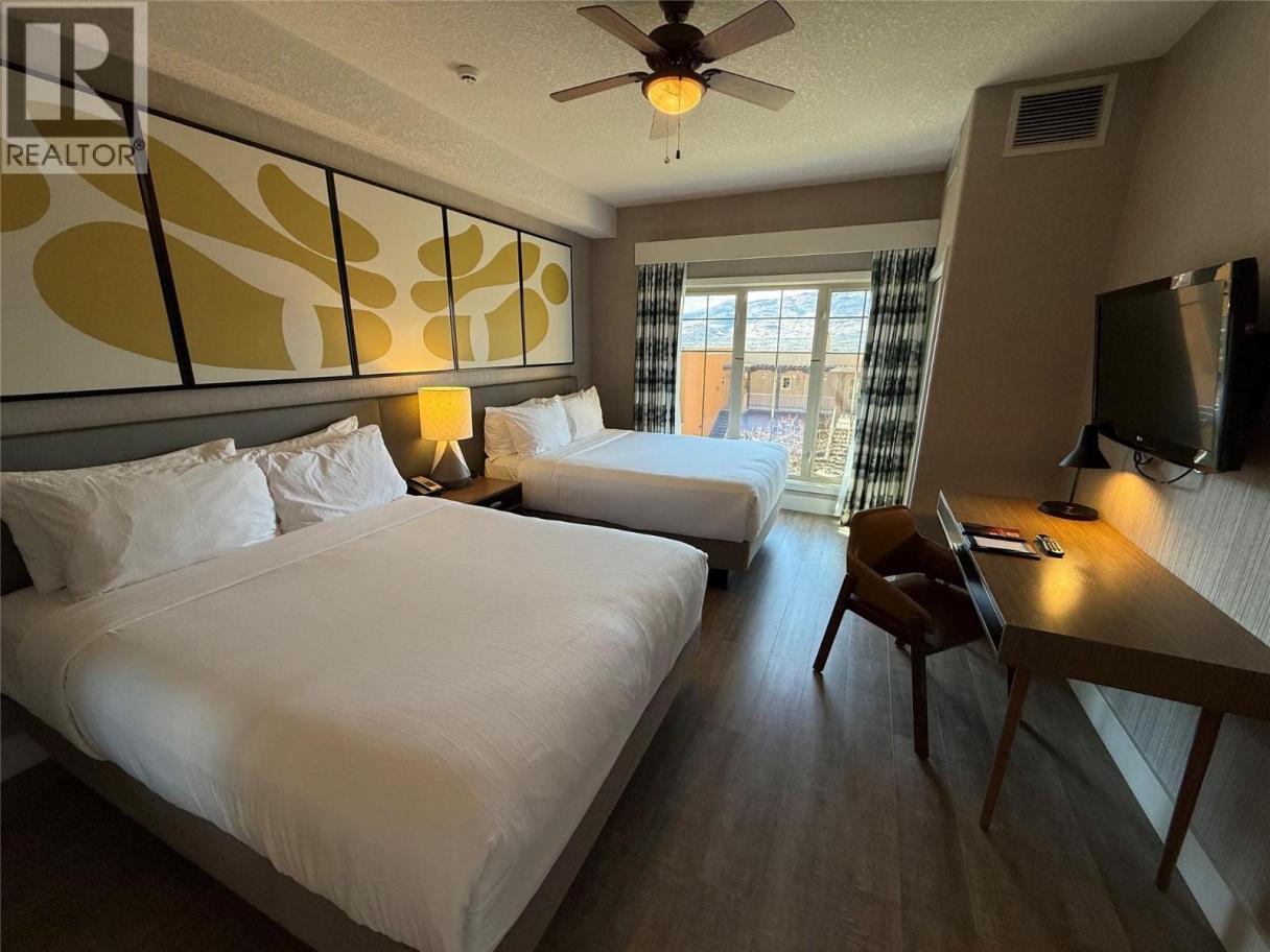 Experience resort living with 1/2 share ownership of a beautifully renovated 1-bedroom suite at Spirit Ridge Resort & Spa, part of The Unbound Collection by Hyatt. This fully furnished and equipped suite offers flexible usage and excellent income potential through the professionally managed Hyatt rental pool when not in personal use. Ideally situated in the Desert Building, this suite is conveniently located near the pool and on-site dining, and features two queen beds with a spacious layout. Enjoy stunning views of the surrounding mountains, vineyard, and Lake Osoyoos, all from a sought-after resort setting just steps from the beach and golf course. Spirit Ridge is a 4.5-star resort offering an exceptional array of amenities, including a full-service restaurant and bistro, spa, two outdoor pools, waterslide, hot tub, steam room, fitness facilities, and housekeeping services. The resort is also home to a vineyard, winery, and desert cultural centre, creating a truly unique Osoyoos experience. Ownership includes access to numerous owner privileges and travel exchange opportunities. Monthly HOA fees cover all utilities, cable, Wi-Fi, underground parking, and condominium insurance for added convenience. Please note: This property is not freehold strata; it is a pre-paid Crown lease on Indigenous land with a Homeowners Association. HOA fees apply, and GST is payable. All measurements are approximate. For more information or to book a private tour reach out to Cameron today! (id:6769)