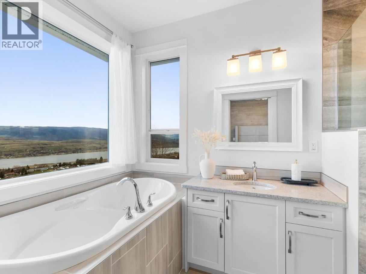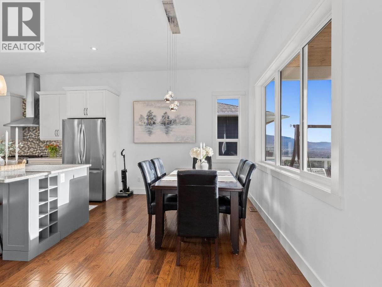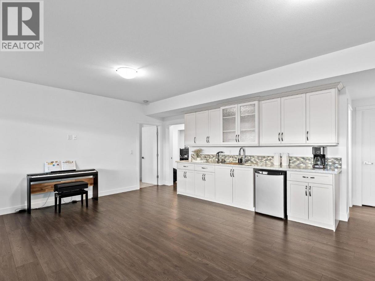 Step into luxury with this move-in-ready rancher on Blackcomb Way, offering 7 bedrooms plus a games room and 4 beautifully finished bathrooms. Designed with no detail overlooked, this home blends style, comfort, and function. The open-concept main living area is an entertainer’s dream, featuring a gourmet kitchen, elegant dining space, and a bright living room with floor-to-ceiling windows showcasing breathtaking views of the city, valley, and Kalamalka, Okanagan, and Swan Lakes. The spacious primary suite is a true retreat, complete with a spa-inspired ensuite, walk-in shower, and generous walk-in closet. The lower level includes a self-contained 2-bedroom, 980 sq ft suite—ideal as a mortgage helper—with potential for a second suite as well. Enjoy outdoor living on the expansive deck and patio, perfect for hosting, with a wet bar on the lower level. Additional features include a 2-car garage/workshop with sink and hot/cold taps, hardwood floors, high-end finishes, a fenced and landscaped yard, newer hot tub, and hot/cold taps on the upper deck. Located minutes from downtown Vernon, Silver Star Ski Resort, and hiking trails, this home offers an exceptional lifestyle. (id:6769)