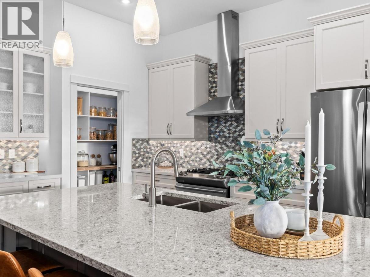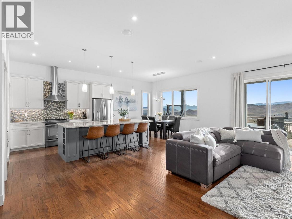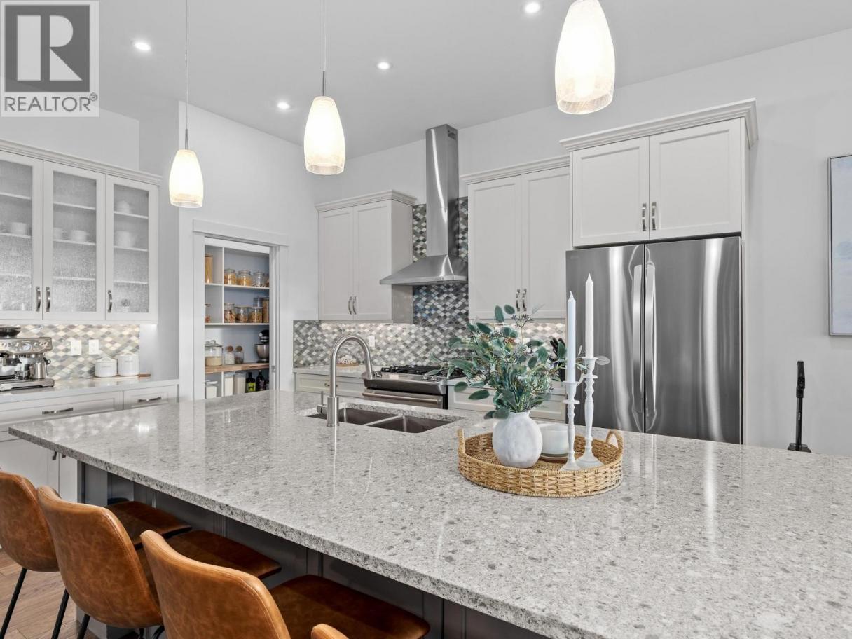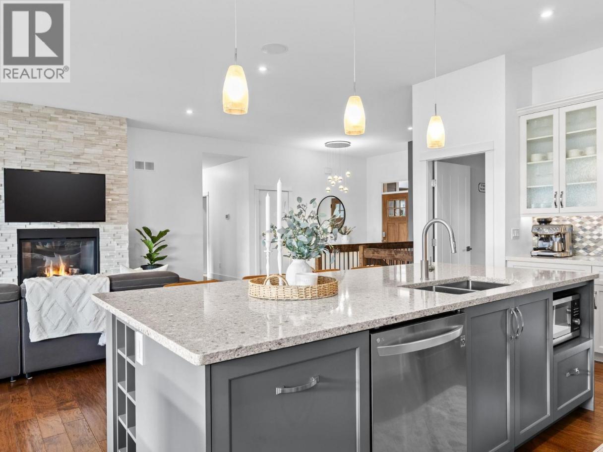 Step into luxury with this move-in-ready rancher on Blackcomb Way, offering 7 bedrooms plus a games room and 4 beautifully finished bathrooms. Designed with no detail overlooked, this home blends style, comfort, and function. The open-concept main living area is an entertainer’s dream, featuring a gourmet kitchen, elegant dining space, and a bright living room with floor-to-ceiling windows showcasing breathtaking views of the city, valley, and Kalamalka, Okanagan, and Swan Lakes. The spacious primary suite is a true retreat, complete with a spa-inspired ensuite, walk-in shower, and generous walk-in closet. The lower level includes a self-contained 2-bedroom, 980 sq ft suite—ideal as a mortgage helper—with potential for a second suite as well. Enjoy outdoor living on the expansive deck and patio, perfect for hosting, with a wet bar on the lower level. Additional features include a 2-car garage/workshop with sink and hot/cold taps, hardwood floors, high-end finishes, a fenced and landscaped yard, newer hot tub, and hot/cold taps on the upper deck. Located minutes from downtown Vernon, Silver Star Ski Resort, and hiking trails, this home offers an exceptional lifestyle. (id:6769)