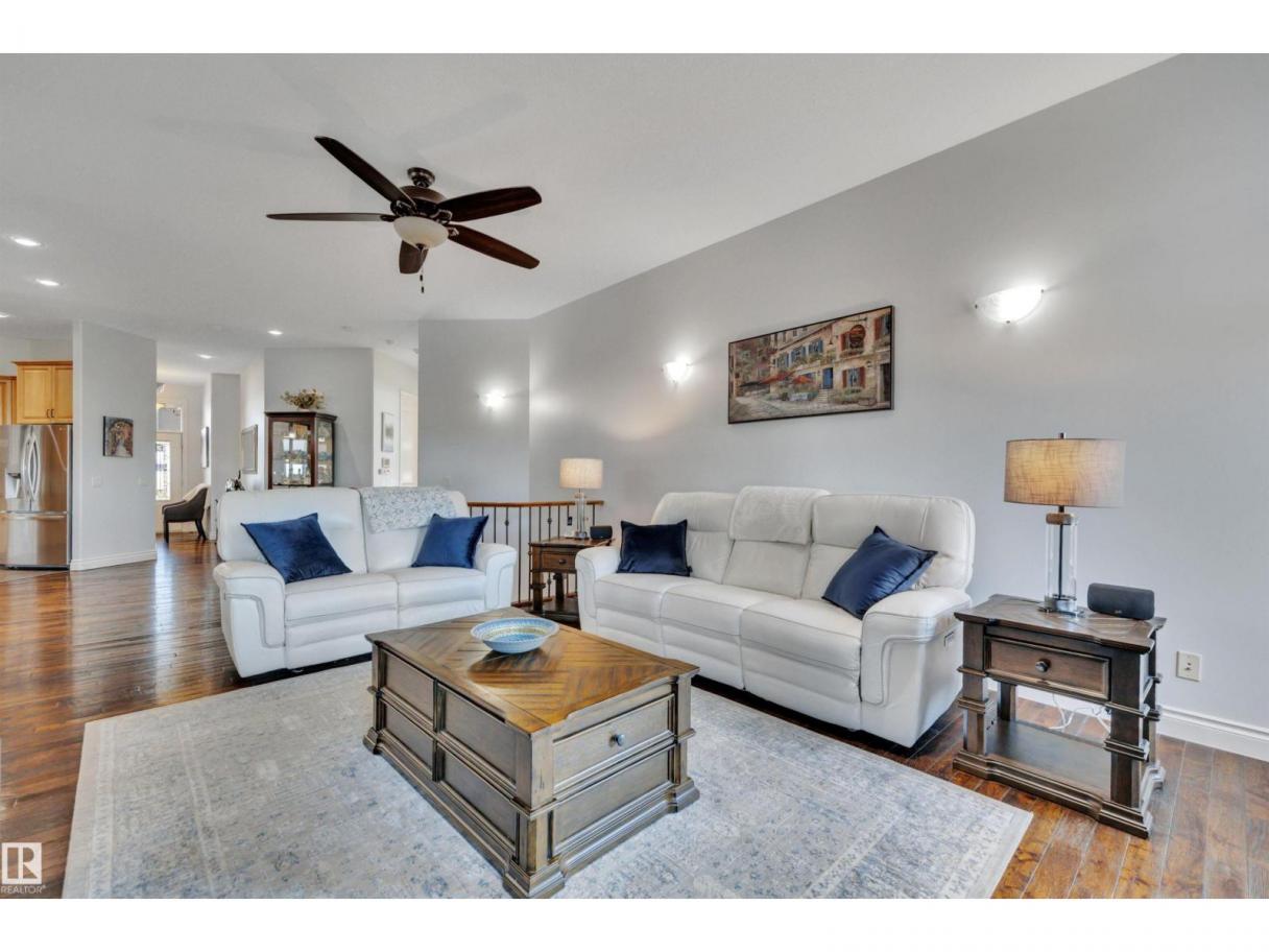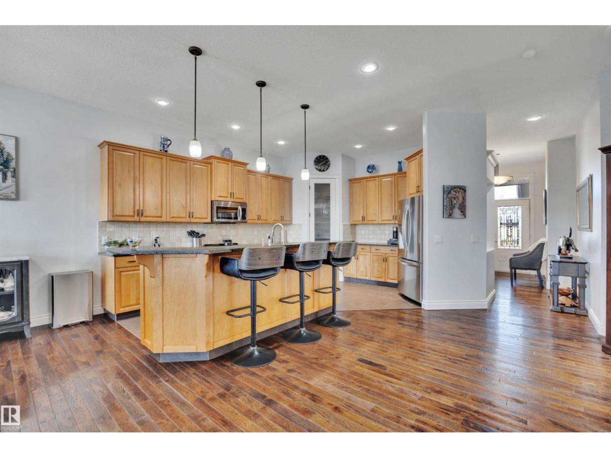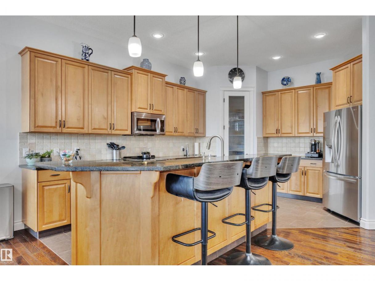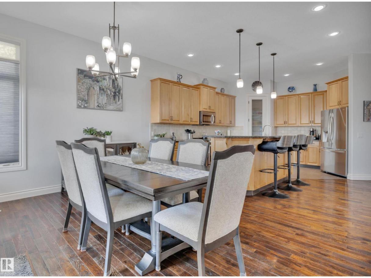 Welcome to your elevated Home2Love bungalow in Leduc—designed for comfort, connection & effortless living. The bright open-concept main floor showcases 10’ ceilings, rich hardwood floors, A/C & an abundance of natural light. The chef-inspired kitchen features a massive granite island & flows seamlessly into the spacious living area—perfect for everyday living & entertaining. Escape to your king-sized primary retreat with a large walk-in closet & relaxing soaker tub. A private home office, second bedroom & full bath complete the main level. The fully finished basement with 9’ ceilings is built to impress—featuring a stunning wet bar, space for a pool table & the ultimate setup for movie nights, game days or hosting guests. Two generous bedrooms & another full bath included below. Step outside to your maintenance-free deck with no rear neighbours—ideal for BBQs, quiet mornings & evening sunsets. The oversized heated garage offers incredible space & includes a mobility lift for easy access. (id:6769)