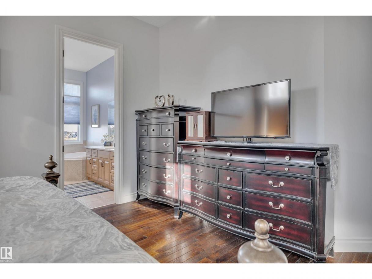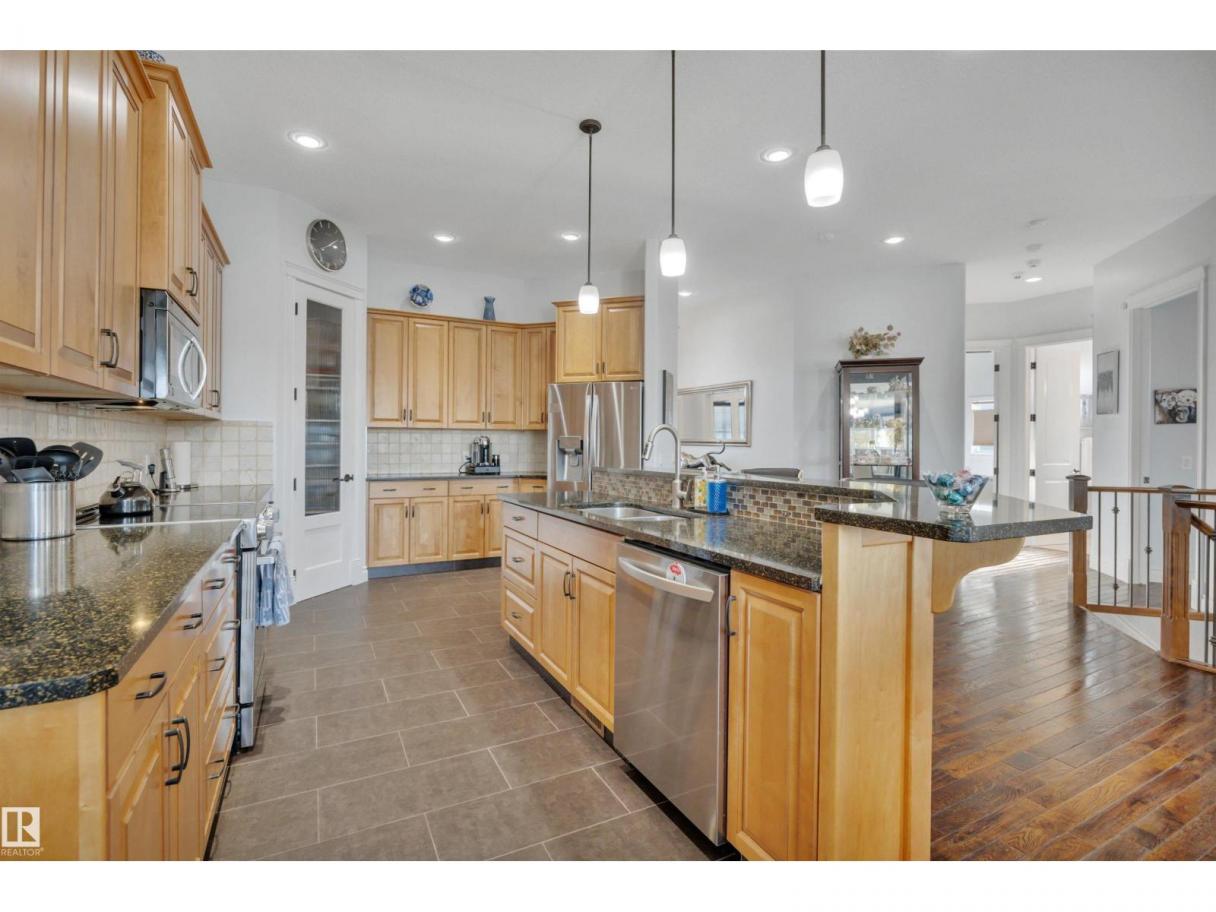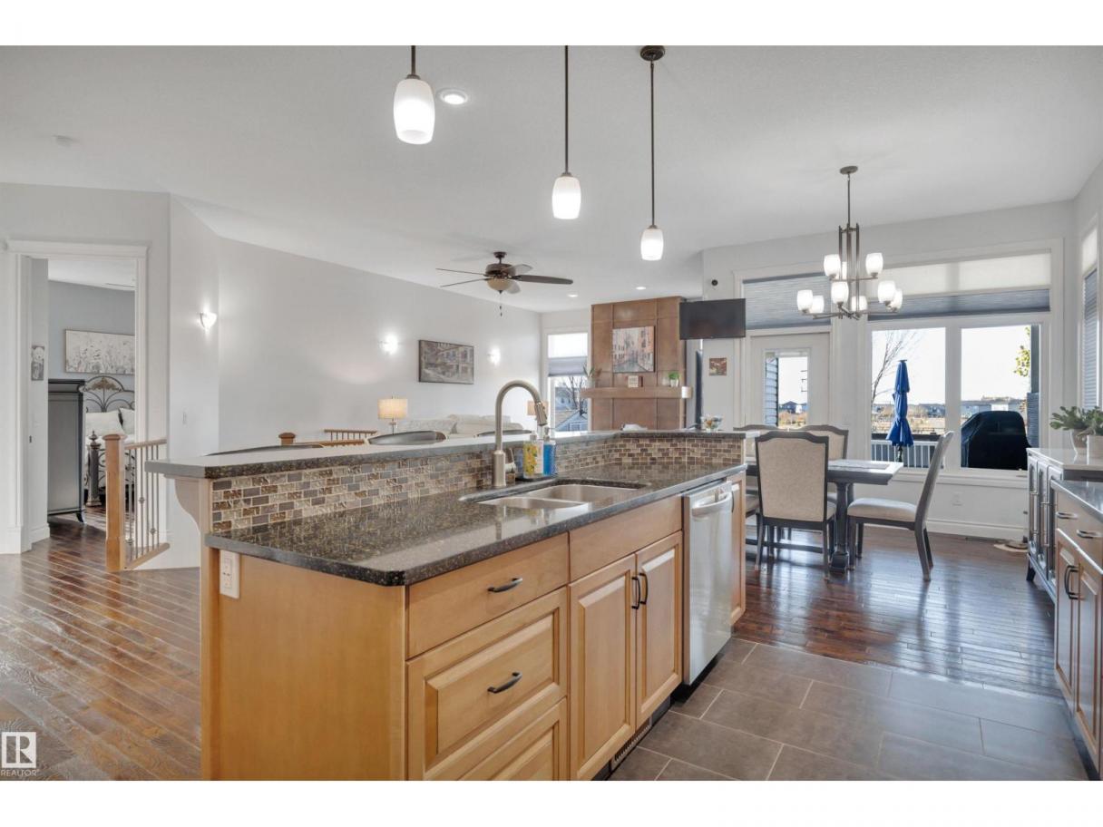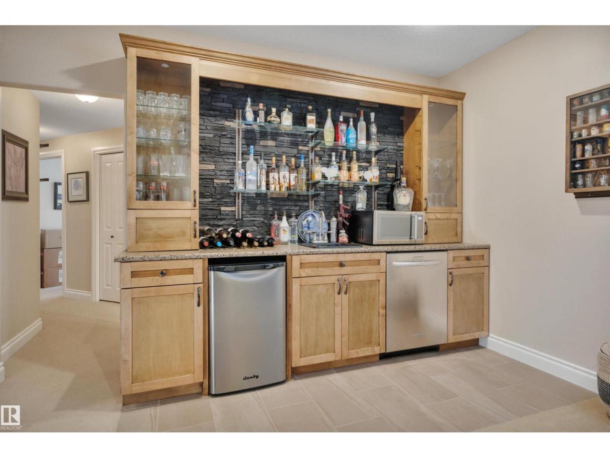 Welcome to your elevated Home2Love bungalow in Leduc—designed for comfort, connection & effortless living. The bright open-concept main floor showcases 10’ ceilings, rich hardwood floors, A/C & an abundance of natural light. The chef-inspired kitchen features a massive granite island & flows seamlessly into the spacious living area—perfect for everyday living & entertaining. Escape to your king-sized primary retreat with a large walk-in closet & relaxing soaker tub. A private home office, second bedroom & full bath complete the main level. The fully finished basement with 9’ ceilings is built to impress—featuring a stunning wet bar, space for a pool table & the ultimate setup for movie nights, game days or hosting guests. Two generous bedrooms & another full bath included below. Step outside to your maintenance-free deck with no rear neighbours—ideal for BBQs, quiet mornings & evening sunsets. The oversized heated garage offers incredible space & includes a mobility lift for easy access. (id:6769)