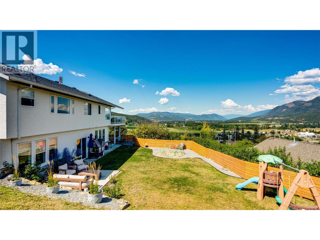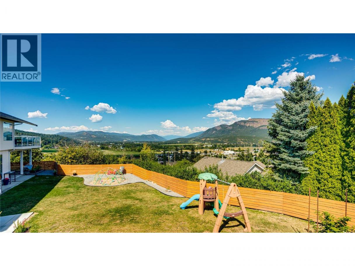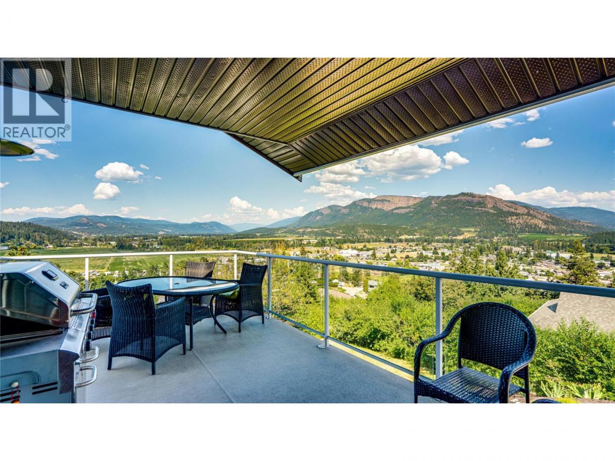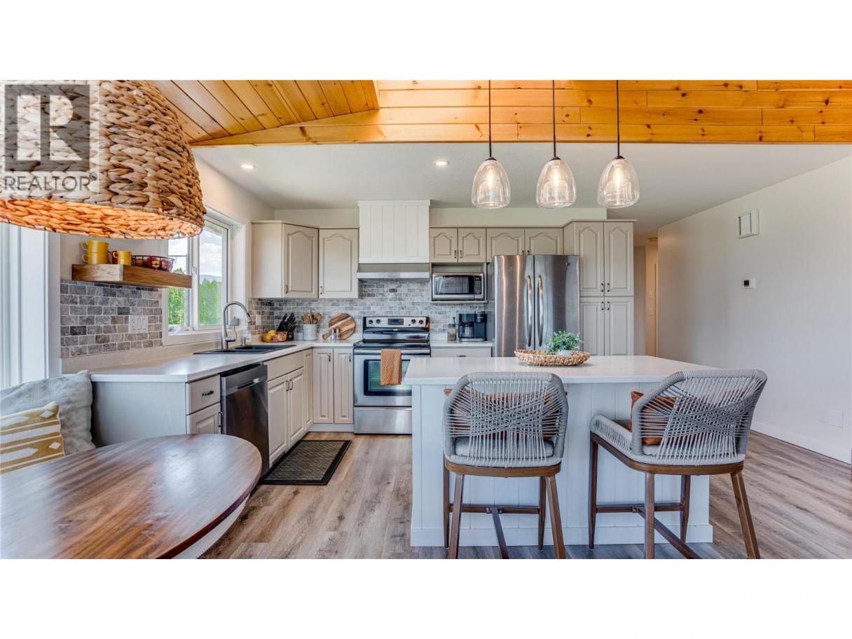 This bright and modern open-concept home is designed with many windows to capture the amazing valley views and the iconic Enderby Cliffs from much of the main floor. This grade level entry rancher home is at the end of a quiet cul-de-sac with an updated 2,728 sq. ft. 4 bedrooms and 3 bathrooms. The upstairs has been tastefully modernized, offering three bedrooms and two full bathrooms including a full ensuite and walk-in closet in the master. Seamless flow between the living, dining, and kitchen areas lead out on to the huge view deck that overlooks your beautiful fenced backyard, an amazing combination for both everyday living and entertaining. The downstairs is equally updated and modern, featuring a open entertainment area with a full bar, its own full bathroom, and a private fourth bedroom with direct backyard access—ideal for guests, in-laws, or a home office. Recent updates include a new roof (2021), furnace (2023), air conditioning (2023), and hot water tank (2024), renovated master ensuite and complete poly b replacement (2026) plus much more. The fenced backyard is stunning, fully landscaped making it perfect for kids and pets. A double garage, parking in front of the door and an extra parking spot just off the road to the left of the driveway. Located just a short walk or drive to groceries, shopping, schools, ball diamonds, hockey rink, the local beach and river, and the drive-in movie theatre. Call today for more info and to arrange a private showing (id:6769)