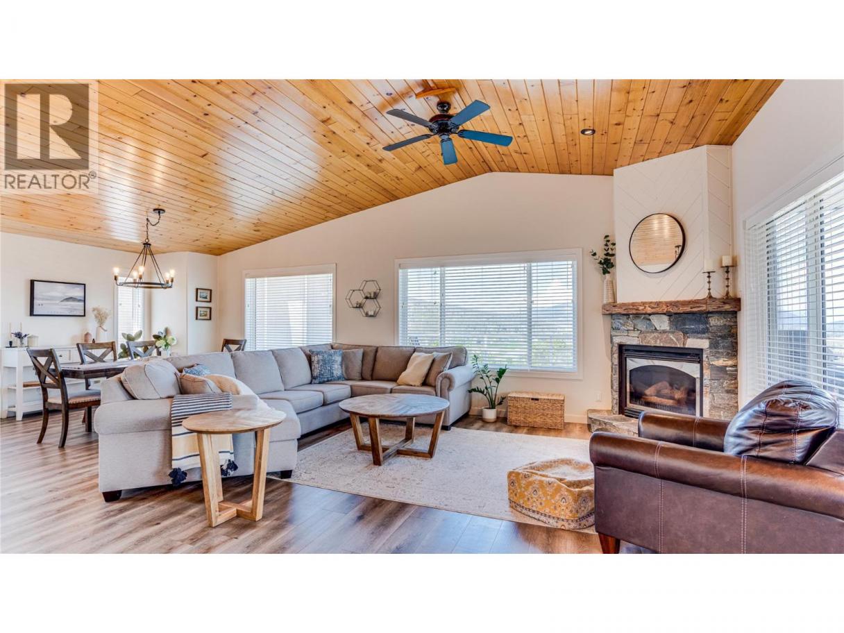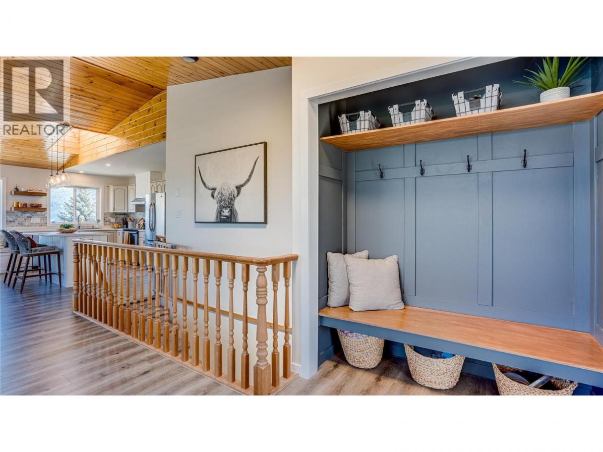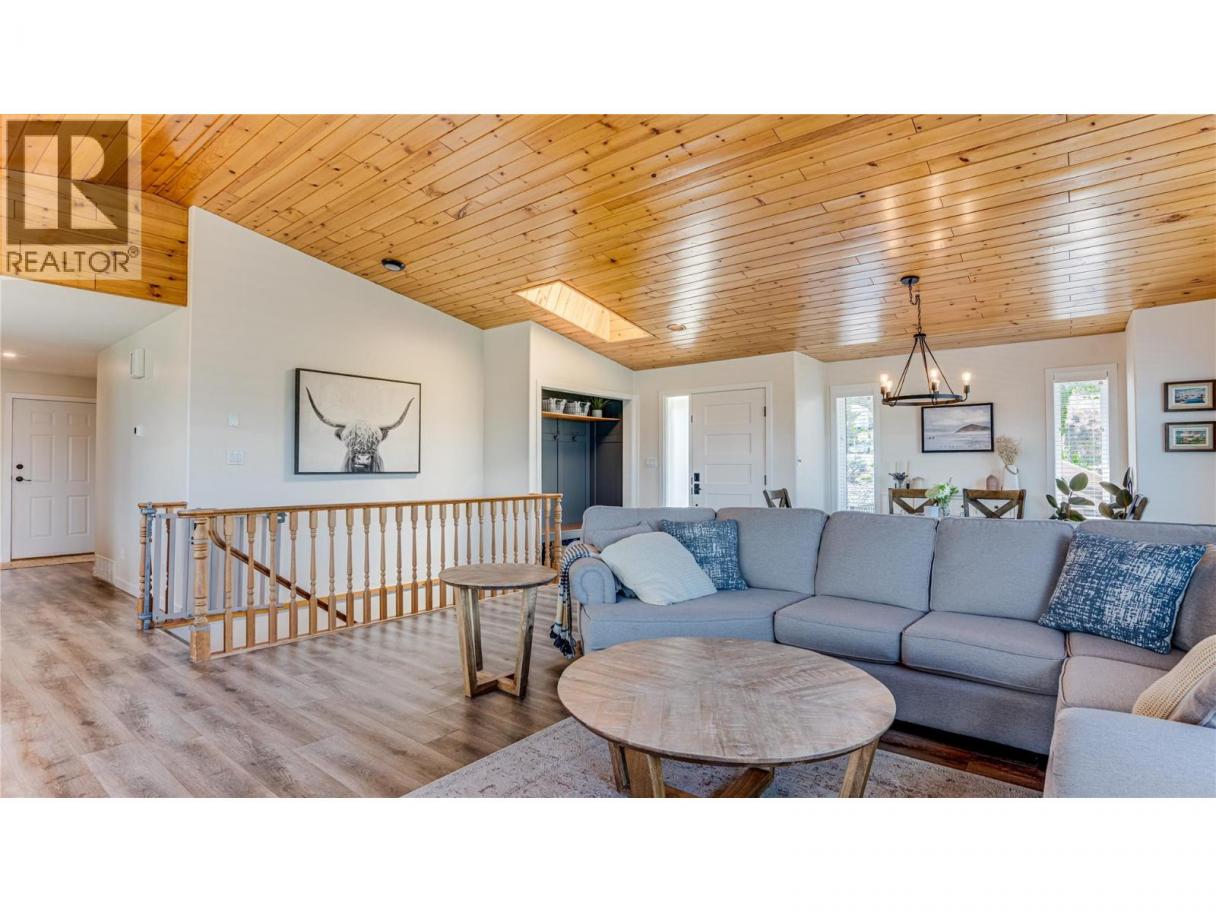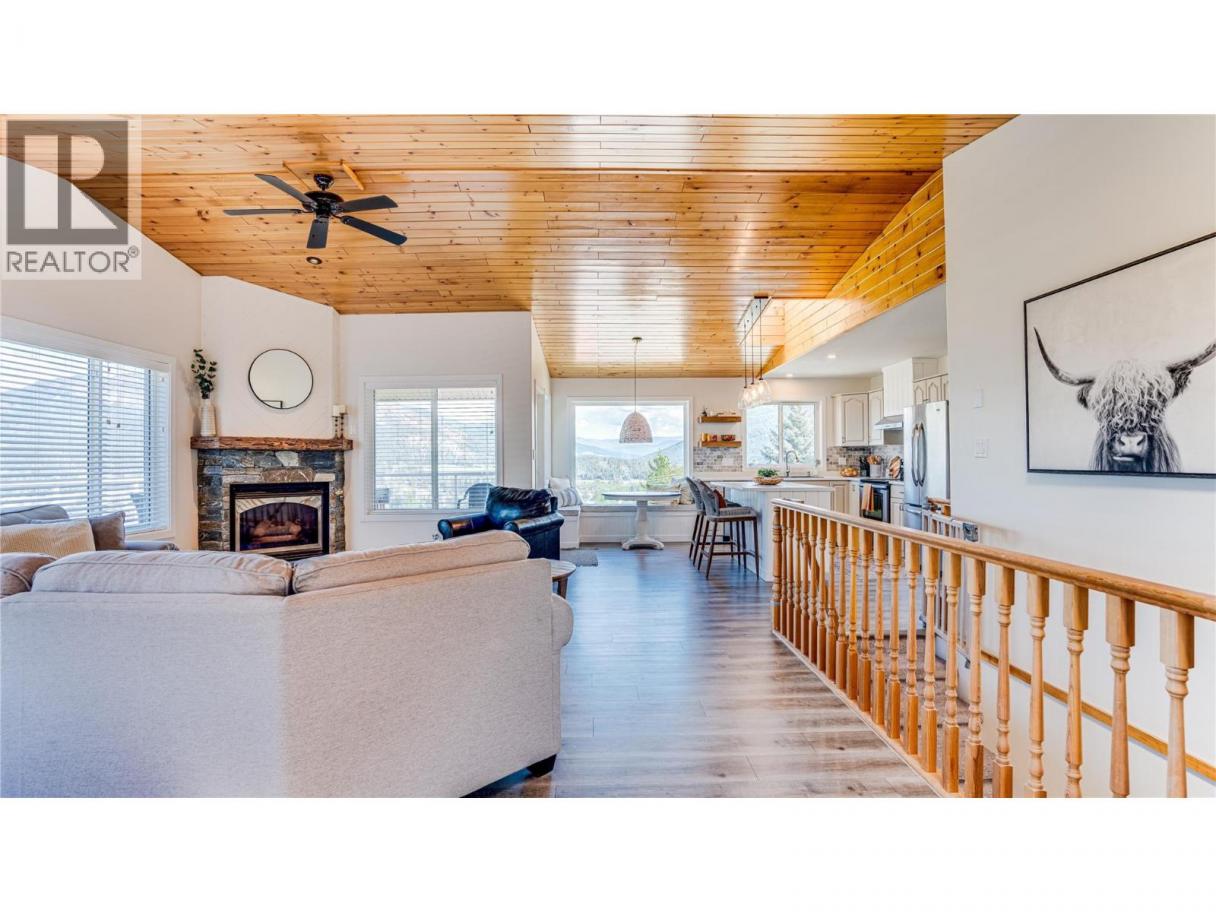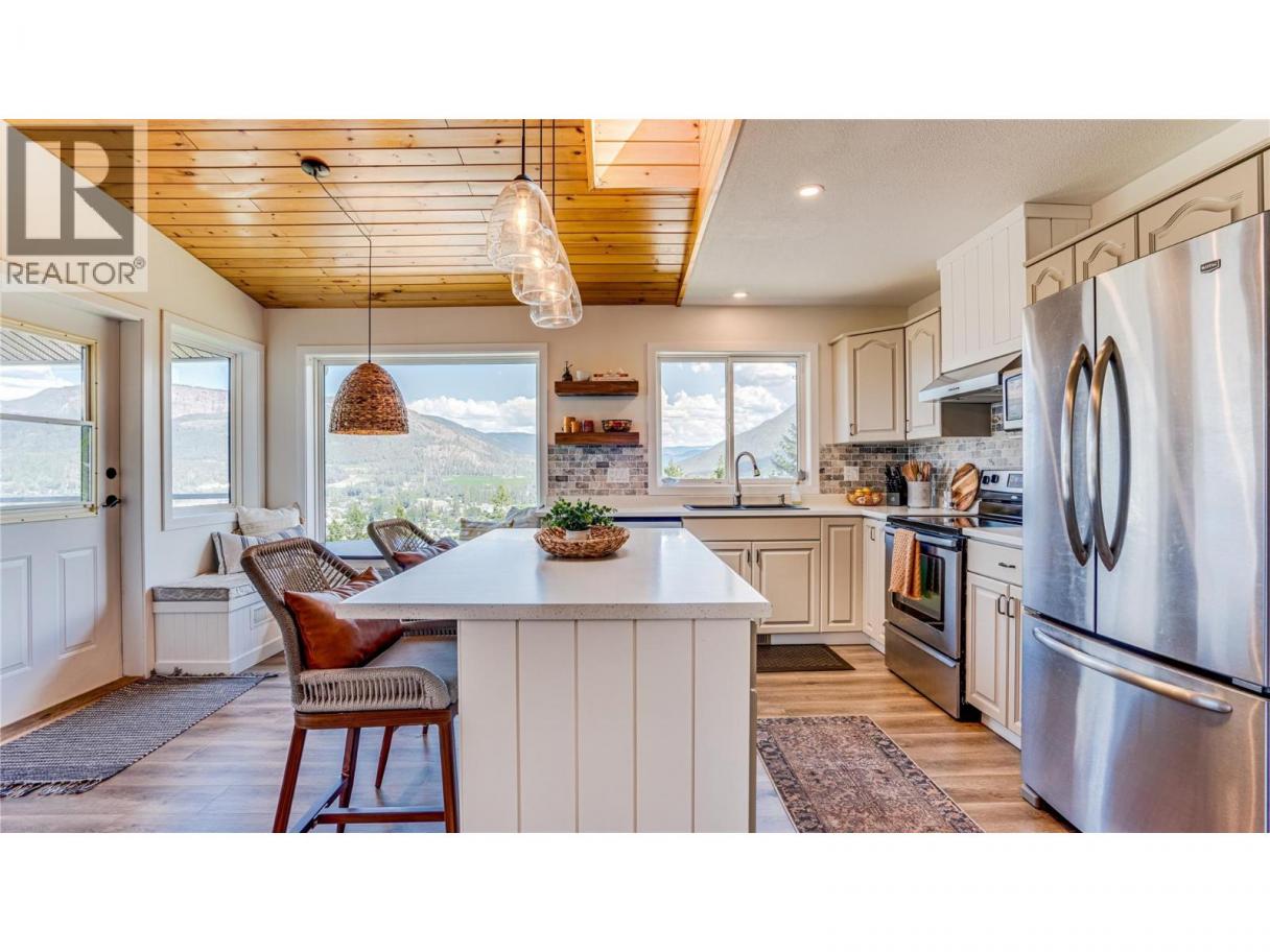 This bright and modern open-concept home is designed with many windows to capture the amazing valley views and the iconic Enderby Cliffs from much of the main floor. This grade level entry rancher home is at the end of a quiet cul-de-sac with an updated 2,728 sq. ft. 4 bedrooms and 3 bathrooms. The upstairs has been tastefully modernized, offering three bedrooms and two full bathrooms including a full ensuite and walk-in closet in the master. Seamless flow between the living, dining, and kitchen areas lead out on to the huge view deck that overlooks your beautiful fenced backyard, an amazing combination for both everyday living and entertaining. The downstairs is equally updated and modern, featuring a open entertainment area with a full bar, its own full bathroom, and a private fourth bedroom with direct backyard access—ideal for guests, in-laws, or a home office. Recent updates include a new roof (2021), furnace (2023), air conditioning (2023), and hot water tank (2024), renovated master ensuite and complete poly b replacement (2026) plus much more. The fenced backyard is stunning, fully landscaped making it perfect for kids and pets. A double garage, parking in front of the door and an extra parking spot just off the road to the left of the driveway. Located just a short walk or drive to groceries, shopping, schools, ball diamonds, hockey rink, the local beach and river, and the drive-in movie theatre. Call today for more info and to arrange a private showing (id:6769)