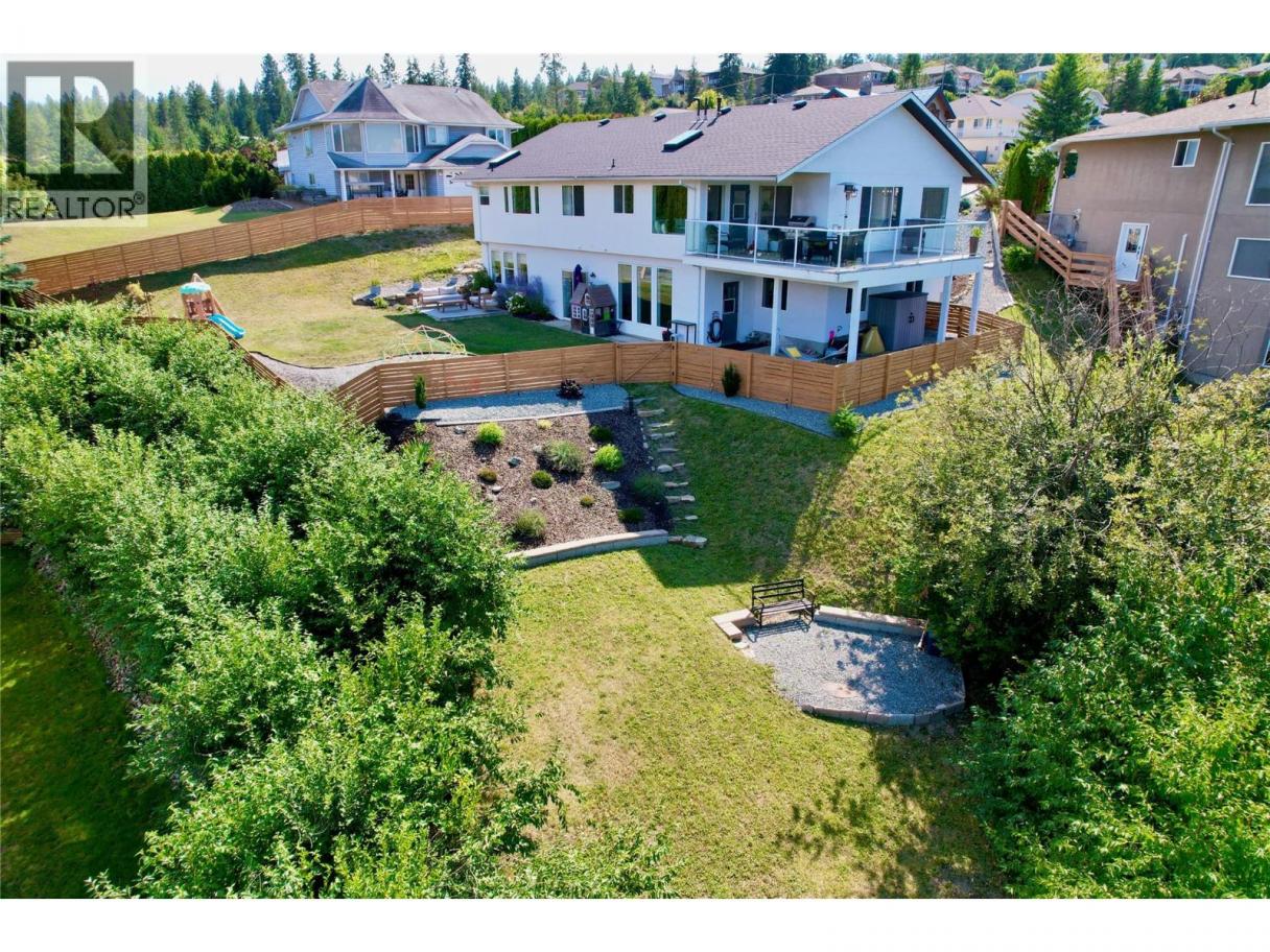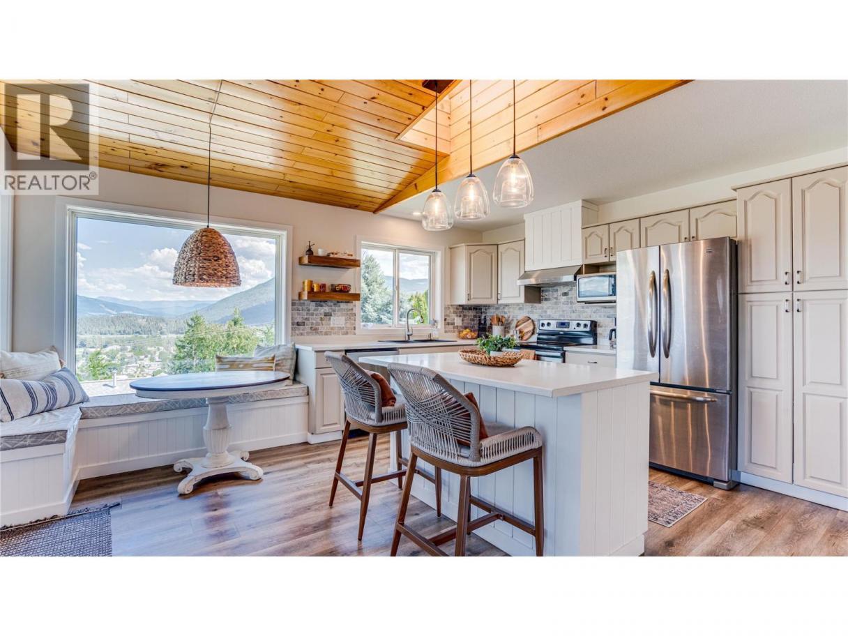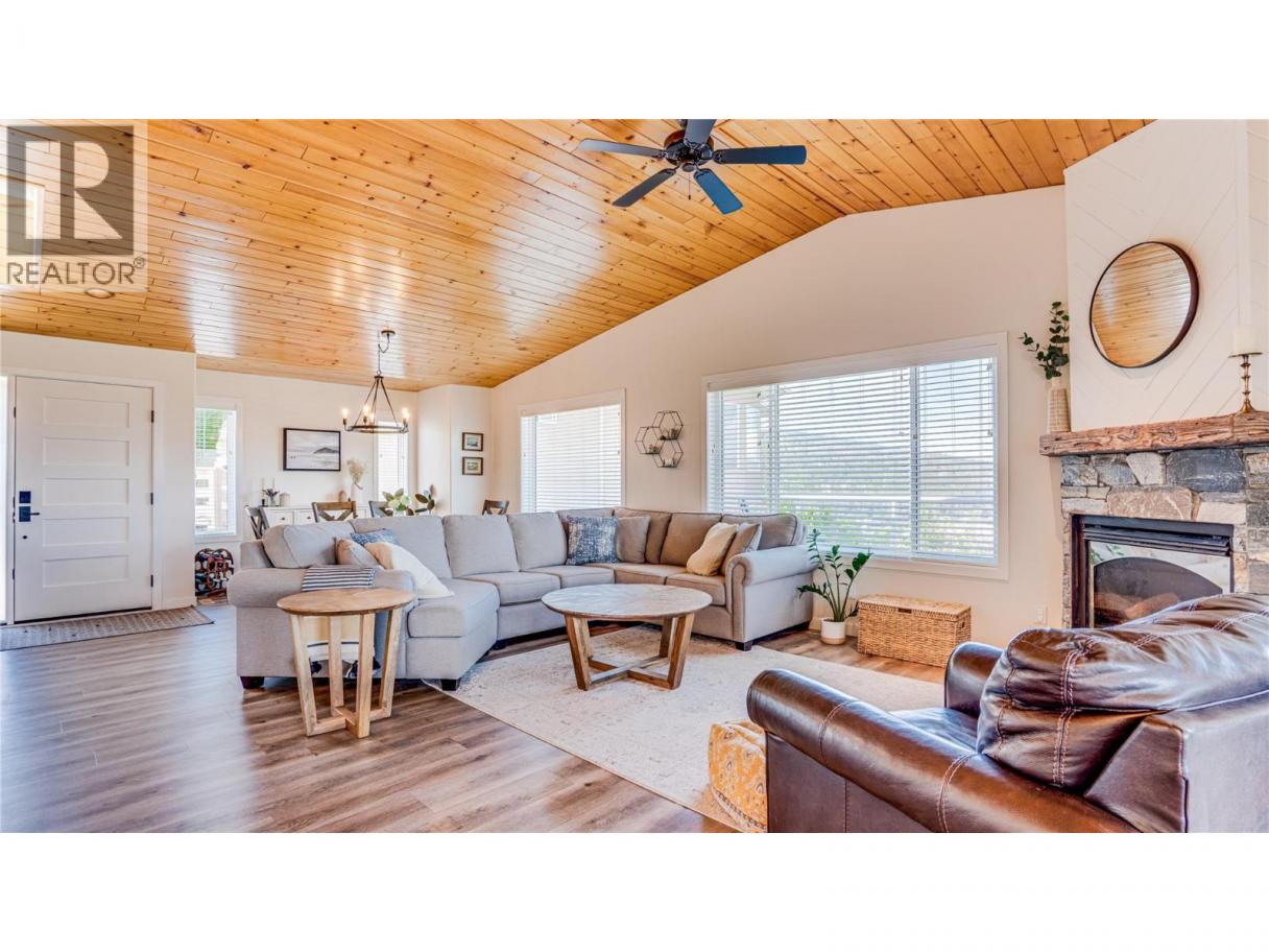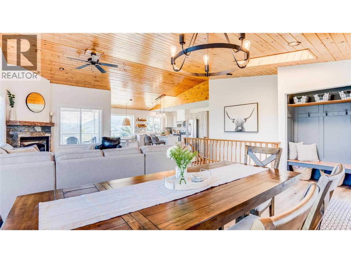 This bright and modern open-concept home is designed with many windows to capture the amazing valley views and the iconic Enderby Cliffs from much of the main floor. This grade level entry rancher home is at the end of a quiet cul-de-sac with an updated 2,728 sq. ft. 4 bedrooms and 3 bathrooms. The upstairs has been tastefully modernized, offering three bedrooms and two full bathrooms including a full ensuite and walk-in closet in the master. Seamless flow between the living, dining, and kitchen areas lead out on to the huge view deck that overlooks your beautiful fenced backyard, an amazing combination for both everyday living and entertaining. The downstairs is equally updated and modern, featuring a open entertainment area with a full bar, its own full bathroom, and a private fourth bedroom with direct backyard access—ideal for guests, in-laws, or a home office. Recent updates include a new roof (2021), furnace (2023), air conditioning (2023), and hot water tank (2024), renovated master ensuite and complete poly b replacement (2026) plus much more. The fenced backyard is stunning, fully landscaped making it perfect for kids and pets. A double garage, parking in front of the door and an extra parking spot just off the road to the left of the driveway. Located just a short walk or drive to groceries, shopping, schools, ball diamonds, hockey rink, the local beach and river, and the drive-in movie theatre. Call today for more info and to arrange a private showing (id:6769)