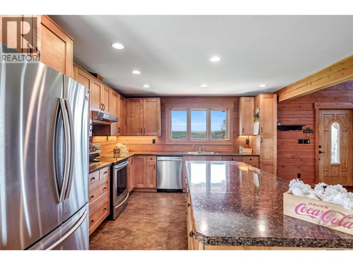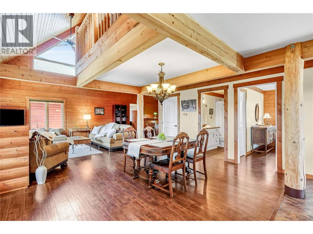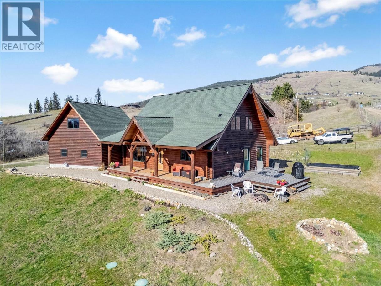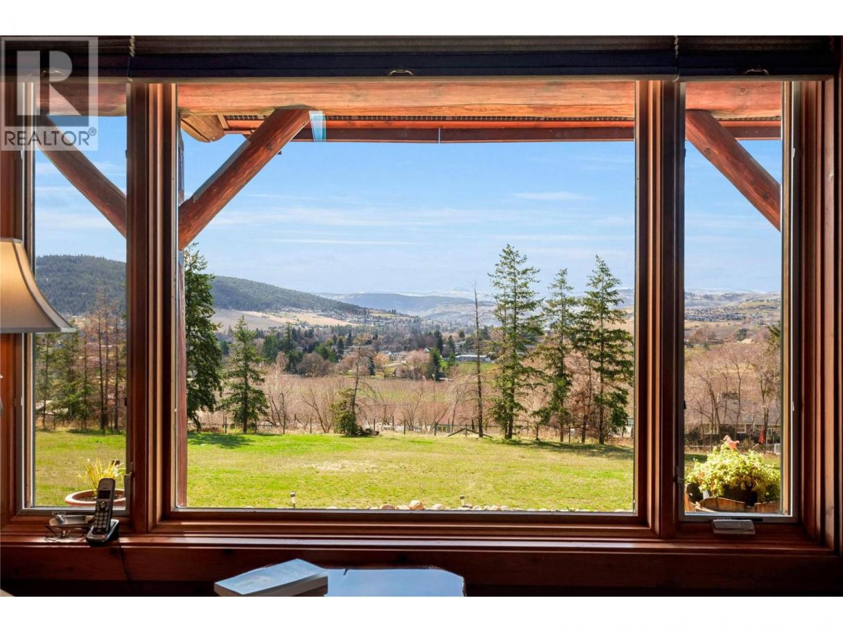 It’s the kind of place where the day winds down just right—out on the front porch, taking in the sunset over the Coldstream Valley, with Kalamalka Lake catching the light in the distance. Set on 2.47 acres just off Highway 6, this property offers space, views, and a home that feels grounded the second you step inside. Follow the driveway up and you’re met with that elevated perspective—valley views, lake glimpses, and a sense of privacy that’s hard to replicate this close to town. Constructed from solid milled wood, this home radiates warmth and charm, with vaulted ceilings and an open main living space that feels airy and inviting. The kitchen is built for gathering, with maple cabinetry, a large island, and plenty of storage. A main floor bedroom adds flexibility for one-level living or a quiet office. Upstairs, the loft connects to a spacious primary bedroom, full bath, and additional bedroom. Downstairs is unfinished with a roughed-in bath, ready for future plans. And then there’s the bonus, a detached garage with an enclosed breezeway and a private studio suite above. Perfect for hosting, working from home, or creating an additional income stream. A property that offers more than just space, it offers a lifestyle. (id:6769)