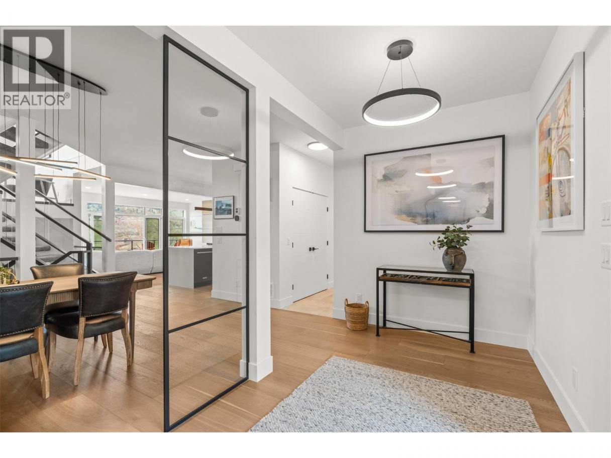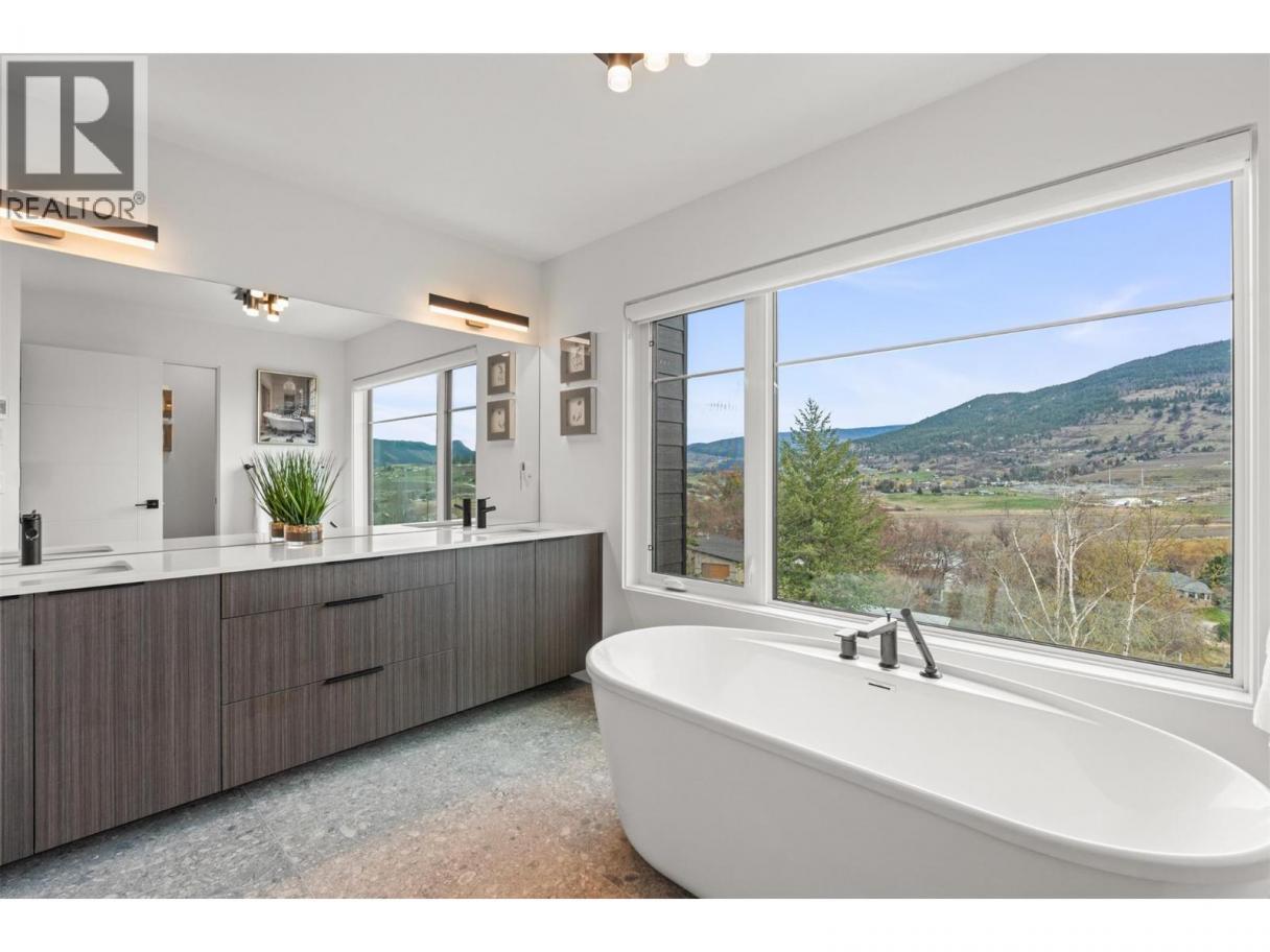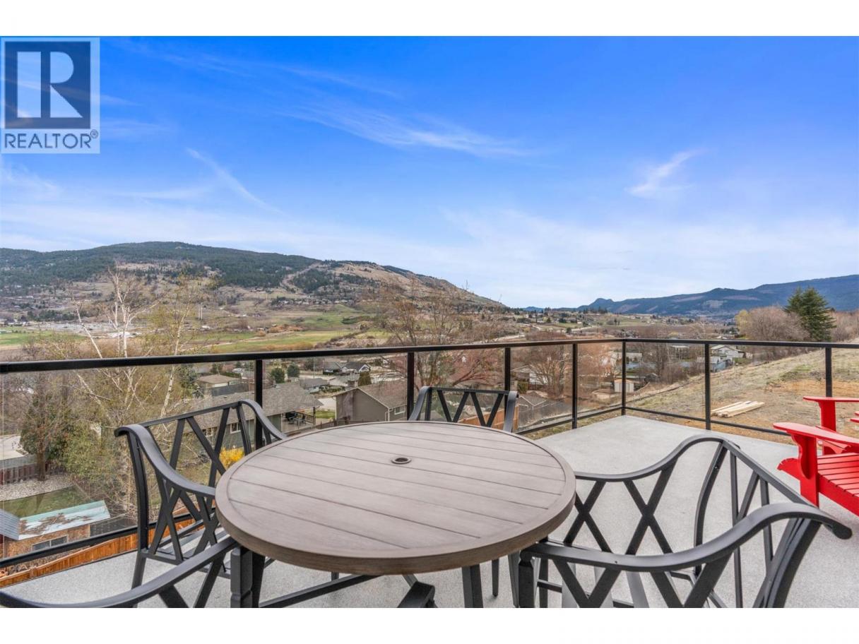 Set in the desirable Morningview neighbourhood of Coldstream, this 2023-built home blends modern design, thoughtful upgrades, and an elevated setting with beautiful valley views. Large windows, high ceilings, and an open-concept layout fill the home with natural light, creating a bright and inviting atmosphere throughout. The kitchen and dining area are both stylish and functional, featuring upgraded appliances, a spacious island, and a custom wine rack that adds character and entertaining appeal. The living room is anchored by an electric fireplace and connects seamlessly to outdoor living, creating easy everyday flow. Upstairs, the primary suite feels like a true retreat with two walk-in closets, power blinds, and a spa-inspired ensuite complete with heated tile floors, a soaker tub, dual sinks, and a glass shower. Two additional bedrooms are connected by a convenient Jack and Jill bathroom, while upper-level laundry adds everyday ease. Thoughtfully upgraded beyond typical builder finishings, the home features extended hardwood flooring in place of carpet and a striking feature wall in the primary bedroom. Situated on a 0.14-acre lot, the exterior is nearly complete with landscaping and fencing in place plus the turf has been purchased and is ready for installation. A full unfinished basement with plumbing roughed in offers future potential for a rec room, gym, or suite. Enjoy a near-new condition home without the added GST in a peaceful, growing Coldstream community. (id:6769)
