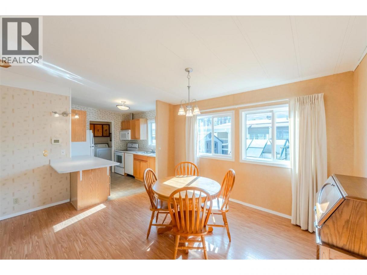 Welcome to Caravilla Estates—where you own your land in a quiet, meticulously maintained bareland strata community steps to Skaha Beach, parks, shopping and more! This bright and airy 2 bed, 2 bath home features a fully open-concept layout, ideal for both everyday living and entertaining. The spacious kitchen offers ample cabinetry with convenient pull-out drawers and flows seamlessly into the dining and living areas. A beautiful sun-filled addition with a wall of windows and southeast exposure captures stunning mountain views—perfect for morning coffee. The thoughtful floorplan offers privacy with the primary bedroom featuring a walk-in closet and ensuite, while the guest bedroom and full 4-piece bathroom are located on the opposite side—ideal for visitors. Laundry and storage area. Outside, enjoy a large corner lot with space for gardening, a powered shed, one covered parking stall plus an additional open stall. Highlights include a brand new hot water tank and dishwasher, ducted heat pump system, newer windows, updated PEX plumbing throughout and a skylight for added natural light. Residents enjoy access to a recreation facility with a games room, exercise room, indoor pool, and hot tub. Strata fee is $235/monthly, 55+ community and no pets allowed. A fantastic opportunity for low-maintenance living in an unbeatable location! Quick Possession Available** (id:6769)