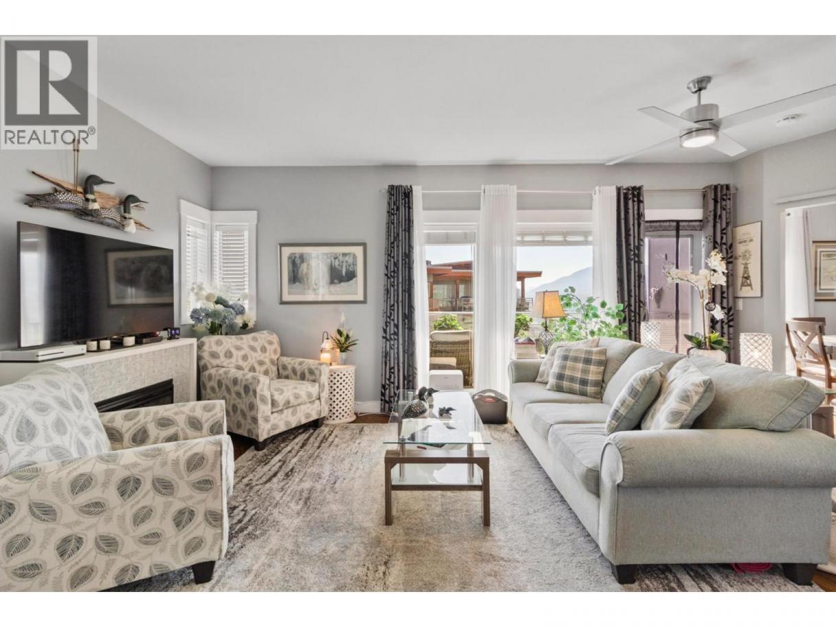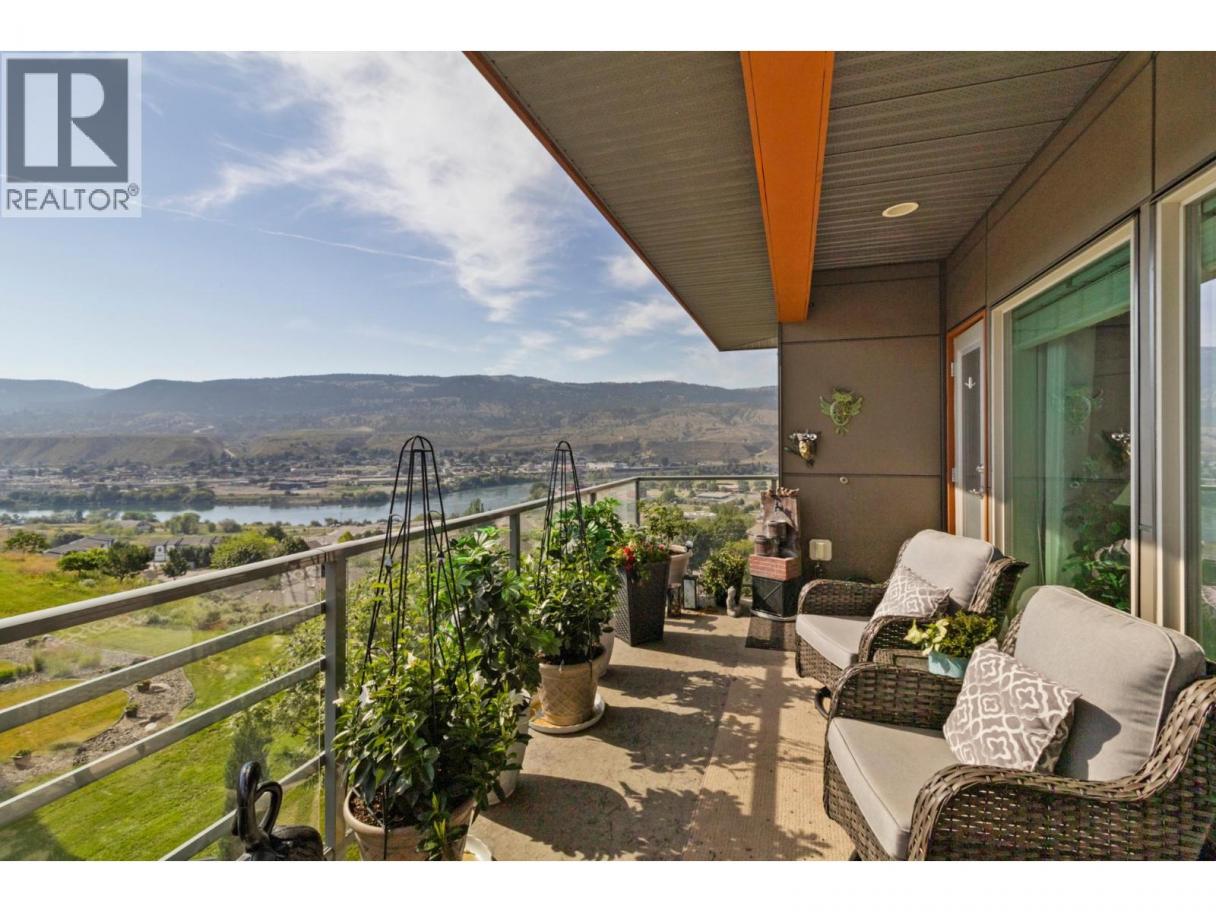 Welcome to Sun Rivers living at its finest. This well-maintained four-storey building is ideally located just steps from nature, hiking trails, golf, transit, shopping, and a popular local restaurant. This top-floor corner unit offers a bright, open-concept layout with a modern feel. Featuring 2 bedrooms and 2 bathrooms, the home is enhanced by 9-foot ceilings and large windows that fill the main living space with natural light. The kitchen and living area flow seamlessly, complete with granite countertops, an electric fireplace, updated lighting, and designer ceiling fans. Recent upgrades include a new Whirlpool fridge and Electrolux washer and dryer. The spacious primary bedroom accommodates a king-sized bed and includes a 3-piece ensuite. A second bedroom and full 4-piece bathroom—both with granite counters and glass tub/shower surrounds—complete the interior. Enjoy breathtaking east-facing views of the river and mountains from the private sundeck. Additional features include geothermal heating and cooling, secure underground parking, a storage unit, two elevators, and a security system. Pets and rentals are allowed. All measurements are approximate and should be verified if important. (id:6769)