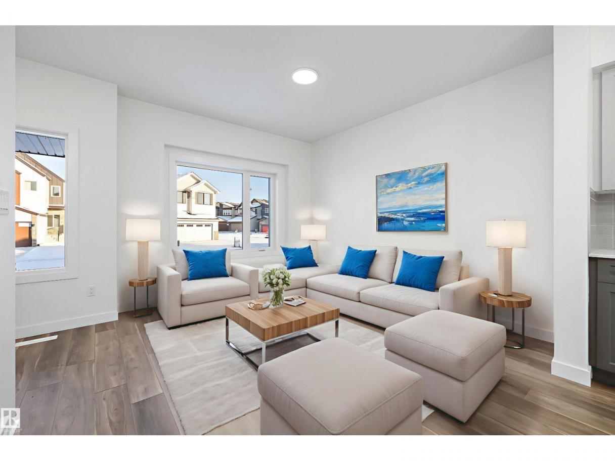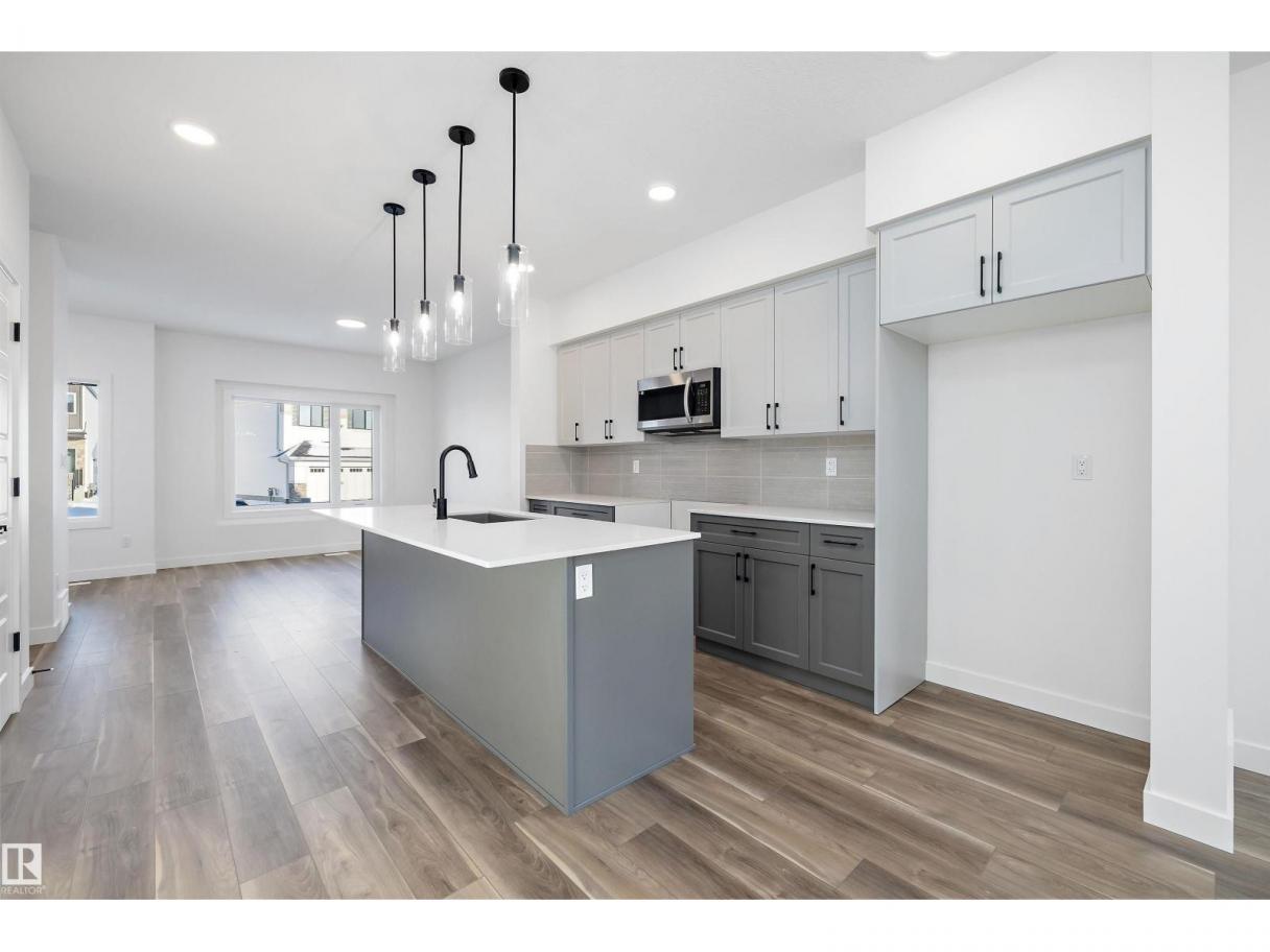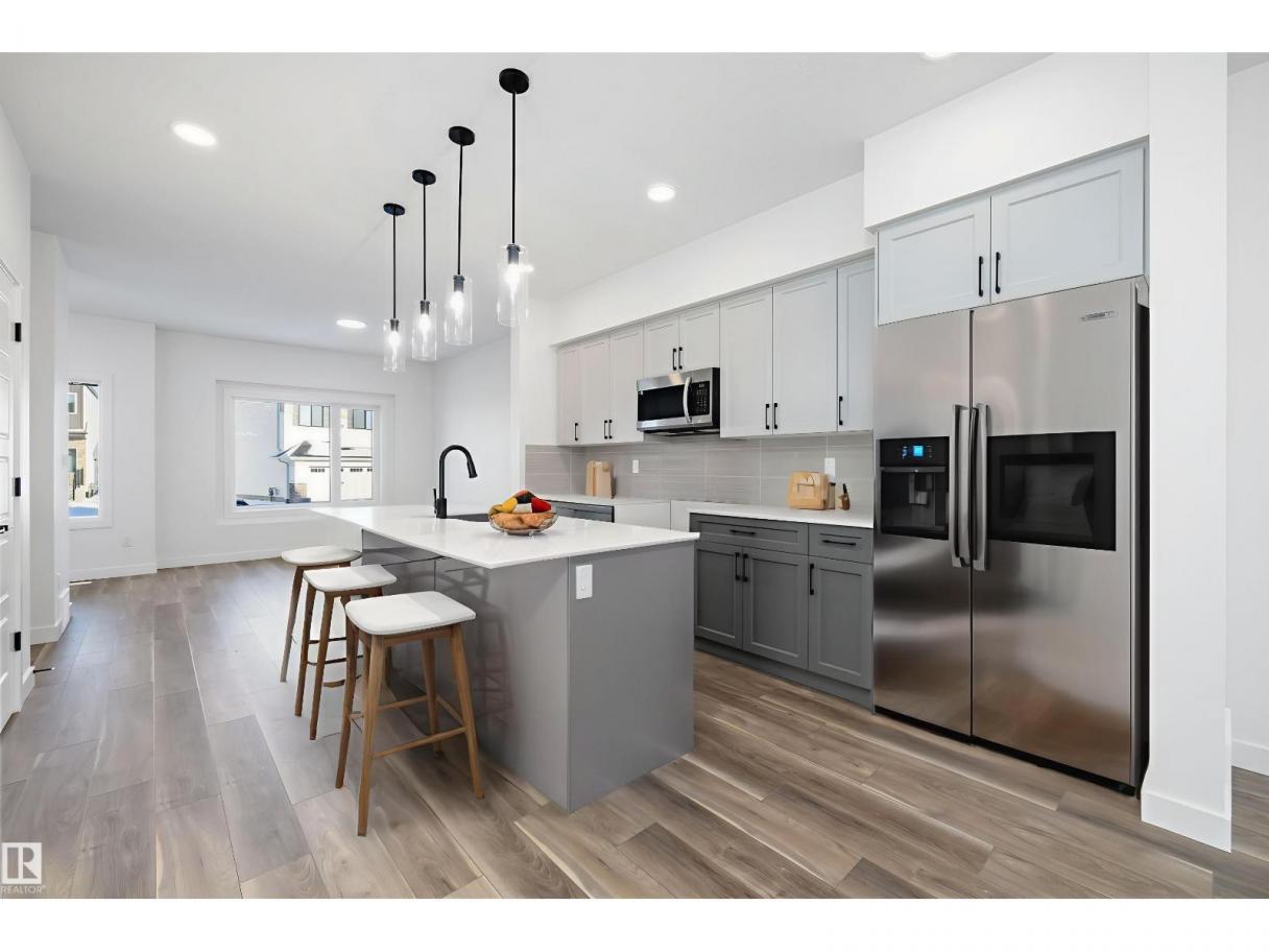 Designed for modern living, this home blends comfort and functionality. The main floor features luxury vinyl plank flooring, a welcoming foyer with coat closet, and a bright great room with a large front window. The centrally located kitchen offers quartz countertops, a Silgranit undermount sink, island with eating ledge, soft-close cabinets, over-the-range microwave, and a spacious pantry. At the rear, the dining area overlooks the backyard. A convenient half bath and rear entry provide access to the yard and parking pad, with the option to add a detached double garage. Upstairs, an open loft adds flexible living space. The primary suite includes a walk-in closet and 3-piece ensuite with stand-up shower, while two additional bedrooms, a full bath, and laundry complete the level. Features include black fixtures, 9-ft ceilings on the main and basement, separate side entrance, and basement rough-ins. (id:6769)