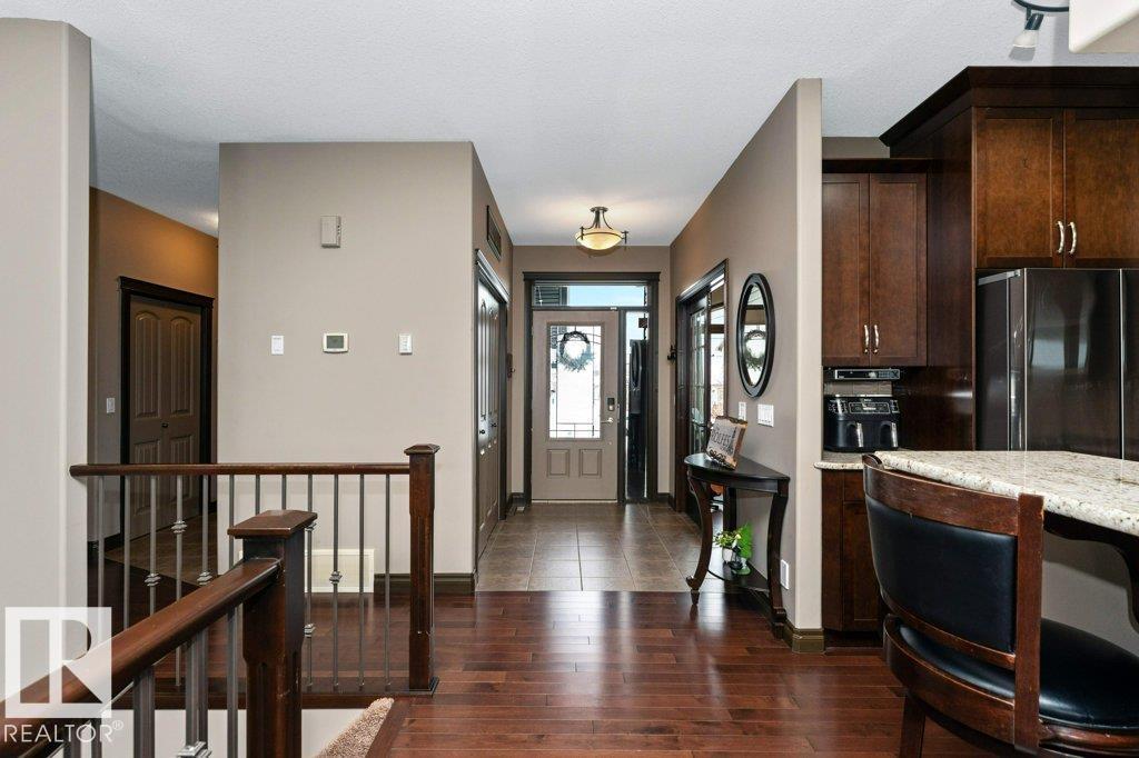 Location ! Location ! Location ! Welcome to this immaculate, original-owner walkout bungalow in desirable South Fort—perfect for a FAMILY seeking comfort, style, and space. Quietly located in a cul-de-sac, this custom-built Rayborne home offers a fully finished walkout basement backing onto paved walking trails and is just steps to transit, shopping, and close to Schools. The open-concept main floor is ideal for entertaining with a spacious kitchen, dining, and great room featuring hardwood floors, maple cabinetry, granite counters, tile backsplash, and newer stainless steel appliances. The private primary suite includes a spa-like ensuite and walk-in closet, plus main floor laundry, a second bedroom, full bath, and den complete the main floor. The bright walkout basement features a massive family room with access to patio in backyard PLUS 2 additional bedrooms, a full bath & plenty of storage. Complete HOME with Central AC and heated 24x24 garage on a beautifully landscaped pie-shaped lot. (id:6769)