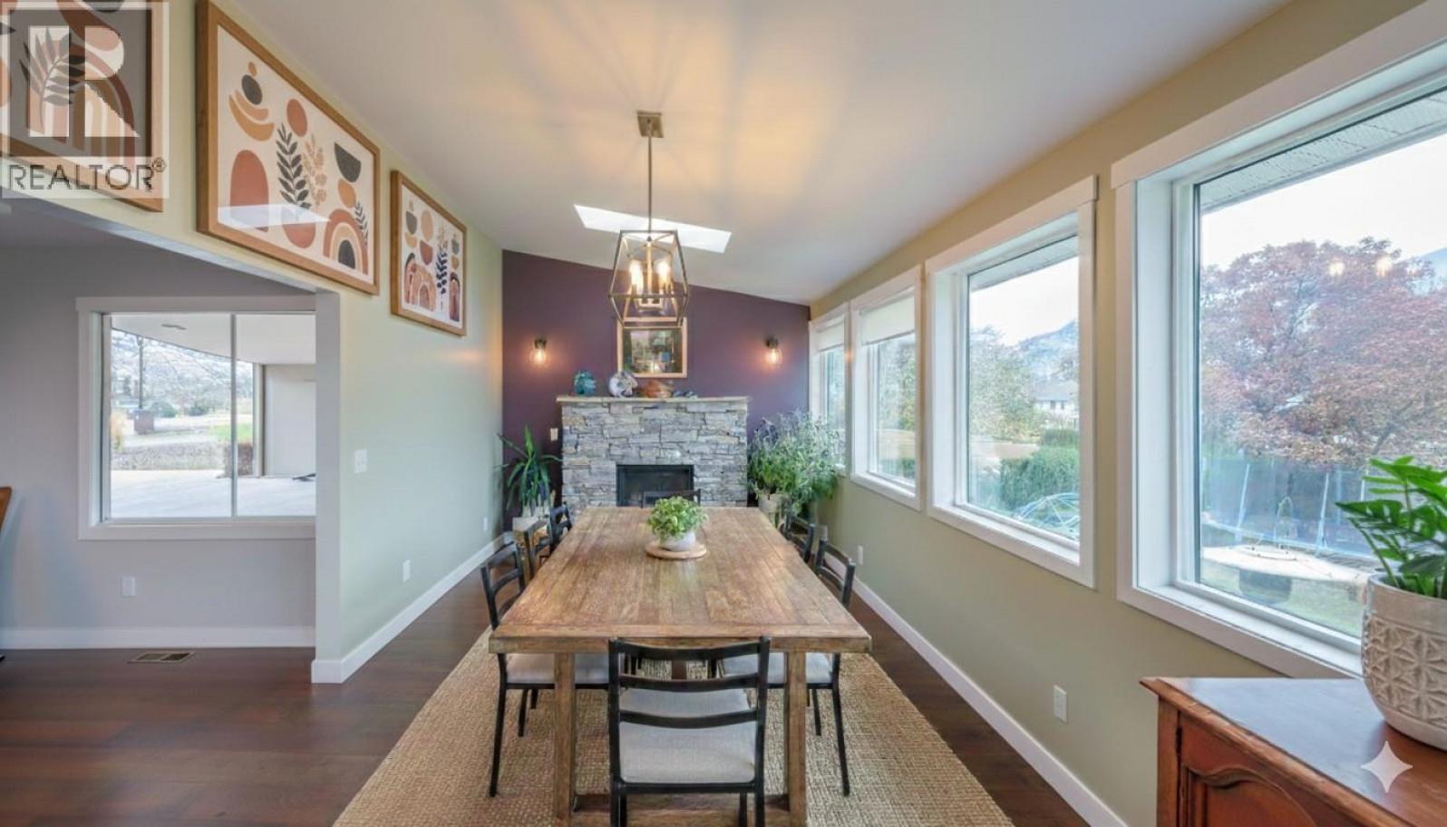 Rarely do you find a 0.50-acre private sanctuary that perfectly balances resort-style living with breathtaking panoramic views. This expansive property is the ultimate outdoor retreat, featuring a heated saltwater pool framed by stamped concrete and a landscaped patio with a custom pergola. Surrounded by vinyl fencing and mature cedars, the backyard offers total seclusion. The RS1 zoning and dual property access provide exciting potential for a carriage house or secondary suite. With dedicated RV/boat parking, this lot is designed to accommodate every hobby and toy.The home itself is a renovated masterpiece designed to showcase the sweeping vistas of the town, mountains, and vineyards. The main floor features an open-concept layout where oversized windows flood the space with natural light. A dramatic wood beam and custom rock fireplace add warmth to the living area, while the dining room boasts its own cozy fireplace and leads out to a covered deck for seamless indoor-outdoor hosting. With four bedrooms—including three on the upper level and one on the main—the floor plan is ideal for growing families. The spa-inspired main bathroom impresses with marble tile, jetted tub, and walk-in rain shower. Downstairs, the full daylight basement offers walk-out access, a workshop, and a tiled three-piece bath, making it an easy candidate for a suite conversion. This is more than a home; it is a lifestyle! *Some photos virtually staged.* (id:6769)