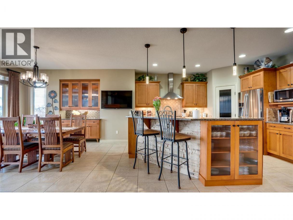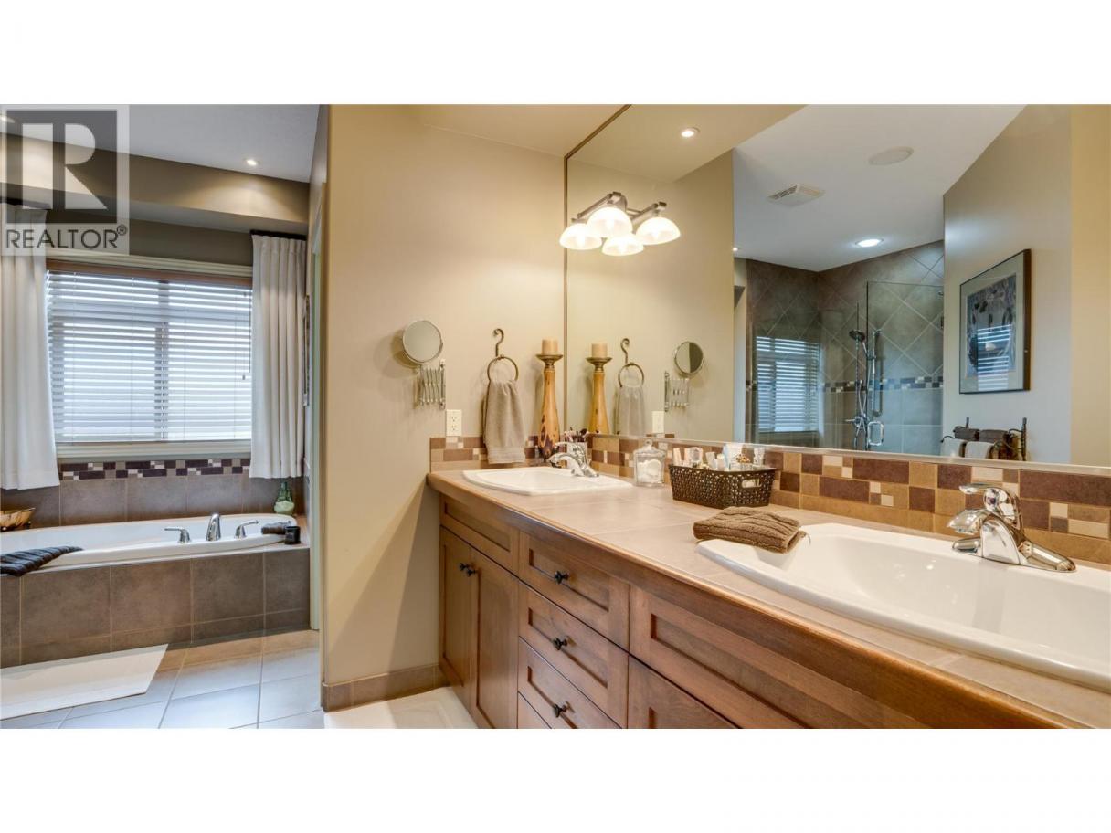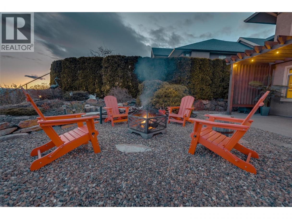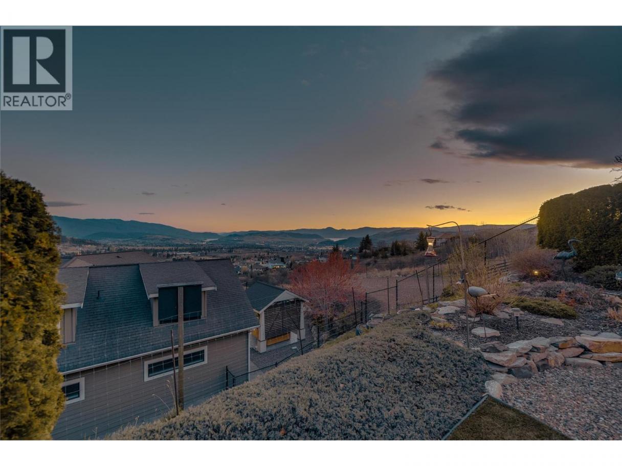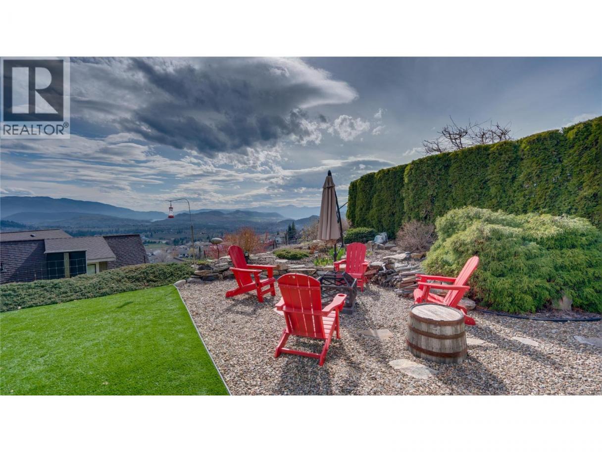 Meticulously maintained one-owner rancher with walkout basement on a quiet no-through road, offering some of the best views in the valley—two lakes, mountains, and the city of Vernon. Main level features 9’ ceilings, a spacious living/dining area with 3-way gas fireplace, and a well-designed kitchen opening to a covered deck with gas BBQ hookup, ceiling fan, and excellent privacy. Large primary suite with walk-in closet and full ensuite with separate tub and shower. Fully finished walkout basement includes two large bedrooms, full bathroom, surround sound media room, bar area, and ample storage. Additional features: oversized 25x24 double garage plus lower double garage/workshop with 220V power, new Rinnai on-demand hot water, central vac with kick plates, 6 security cameras, fully irrigated low-maintenance landscaping, and covered patios. Floor plans and further information available upon request. (id:6769)
