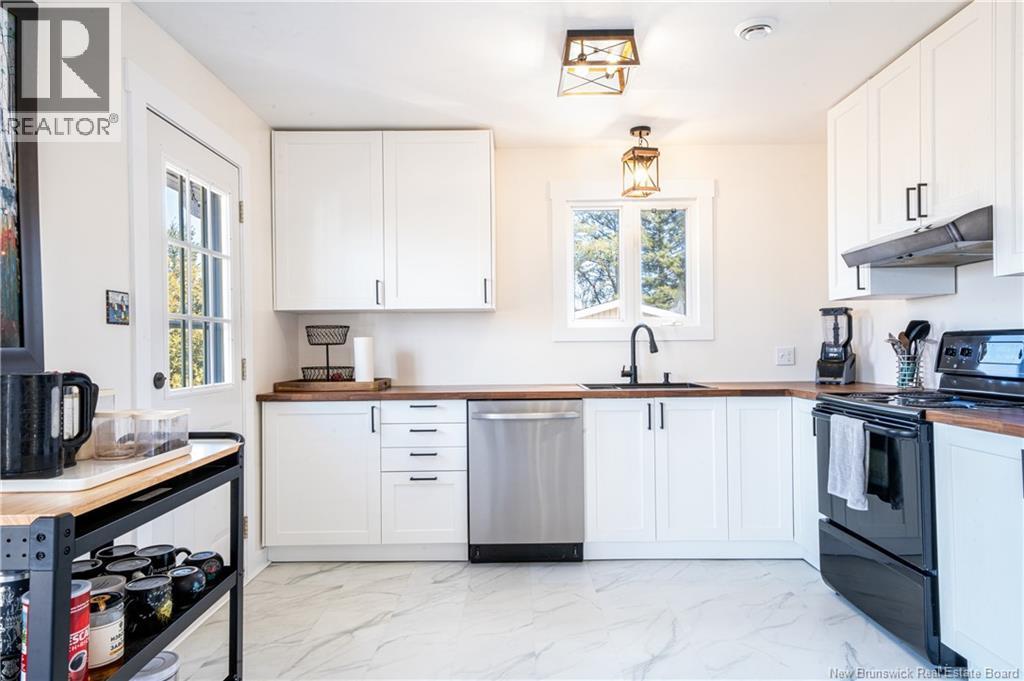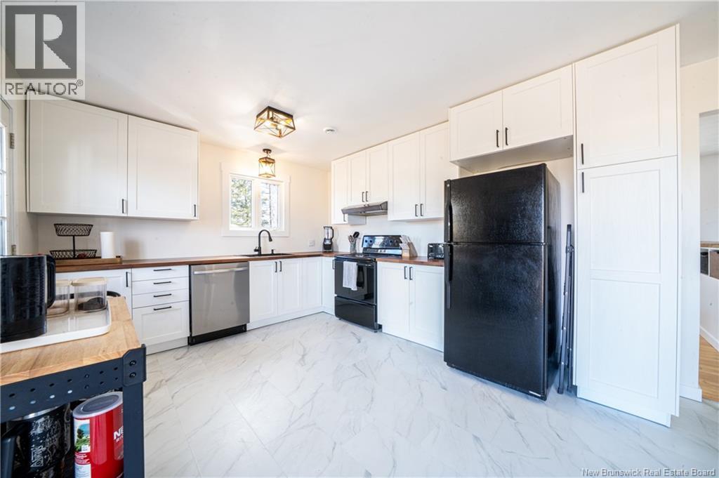 Welcome to 74 Cartier, a beautifully updated 3+1 bedroom, 2 bathroom raised bungalow set on a landscaped lot just minutes from the beach! The main level features a brand-new white IKEA Enköping eat-in kitchen, along with new doors, baseboards, and wainscot-style mouldings throughout the living room, hallway, and three bedrooms. The refreshed main bath includes a new vanity, shower head, mirror, ceramic tile, and fresh paint. The fully finished basement adds exceptional living space with a new bedroom (closet and large egress window), family room, kitchenette with IKEA Knoxhult cabinetry, and a full bathroom/laundry featuring a custom vanity, new toilet, tiles and glass-door corner shower. A pot-bellied wood stove featured in the family room creates the perfect space for relaxing or entertaining. Outside, enjoy a fenced, great-sized lot in a quiet, family-friendly neighbourhood. Two outbuildings (10x12 and 16x8), raised and decorative gardens, and two gravel pads offer flexibility for a playground, pool, or hot tub. In 2023, the roof was completely updated, including a new shape and shingles. A 5-7 minute drive from amenities, including grocery stores, hardware stores, restaurants, drive-in theatres, and Parlee Beach, hosting the warmest water north of the Carolinas! 20 minutes to Moncton, 40 minutes to Confederation Bridge, 40 minutes to Nova Scotia. (id:6769)