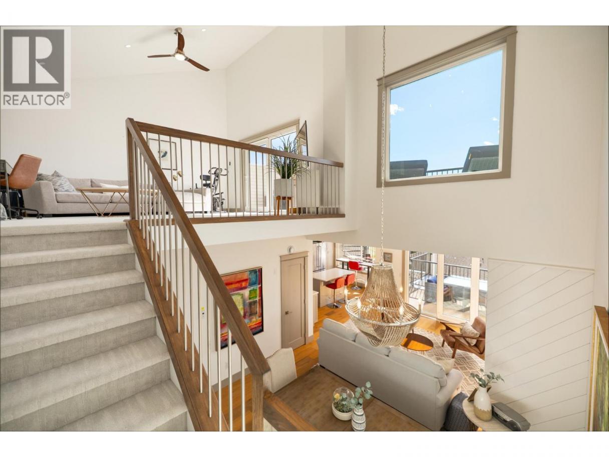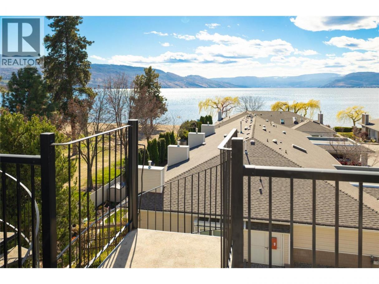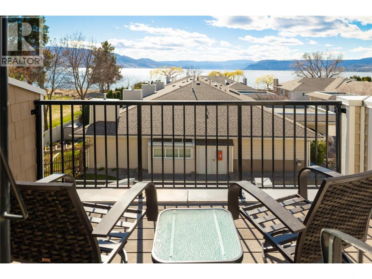 Welcome to your own lakeside retreat—where relaxed coastal charm meets refined, modern living. This beautifully updated 2 bedroom + loft, 2 bathroom condo captures a timeless “beach vibe,” offering breathtaking lake and mountain views from both levels, all within a sought-after gated waterfront community. From the moment you enter, you’re greeted by a bright, inviting vestibule with heated floors and a custom built-in bench—setting the tone for the thoughtful design throughout. The main level features two spacious bedrooms, including a serene primary suite with a walkthrough closet and a spa-inspired 4-piece ensuite, complete with heated floors. The heart of the home is the open-concept living, dining, and kitchen area, where vaulted ceilings and expansive windows frame the stunning lake views. A stylish gas fireplace with shiplap surround adds warmth and character, while wide plank hardwood flooring and quartz countertops complement the soft, neutral palette—perfectly aligned with today’s shift toward warm, natural tones. Upstairs, the airy loft offers a versatile family room or retreat space, overlooking the main living area and extending the home’s sense of openness and light. Outdoor living is equally impressive, with generous patio space on both levels connected by a charming spiral staircase—ideal for entertaining or simply soaking in the scenery. Immaculate and beautifully curated, this home is a rare opportunity to enjoy elevated beachfront living in a peaceful, private setting. (id:6769)