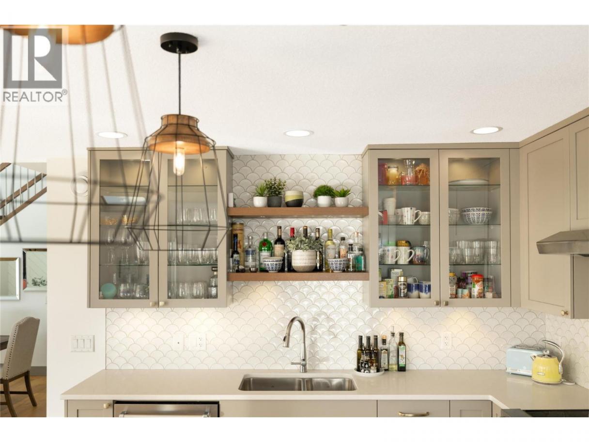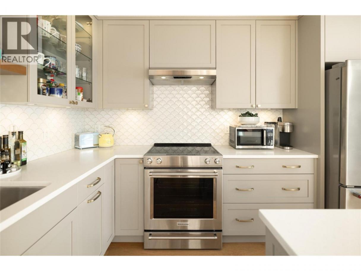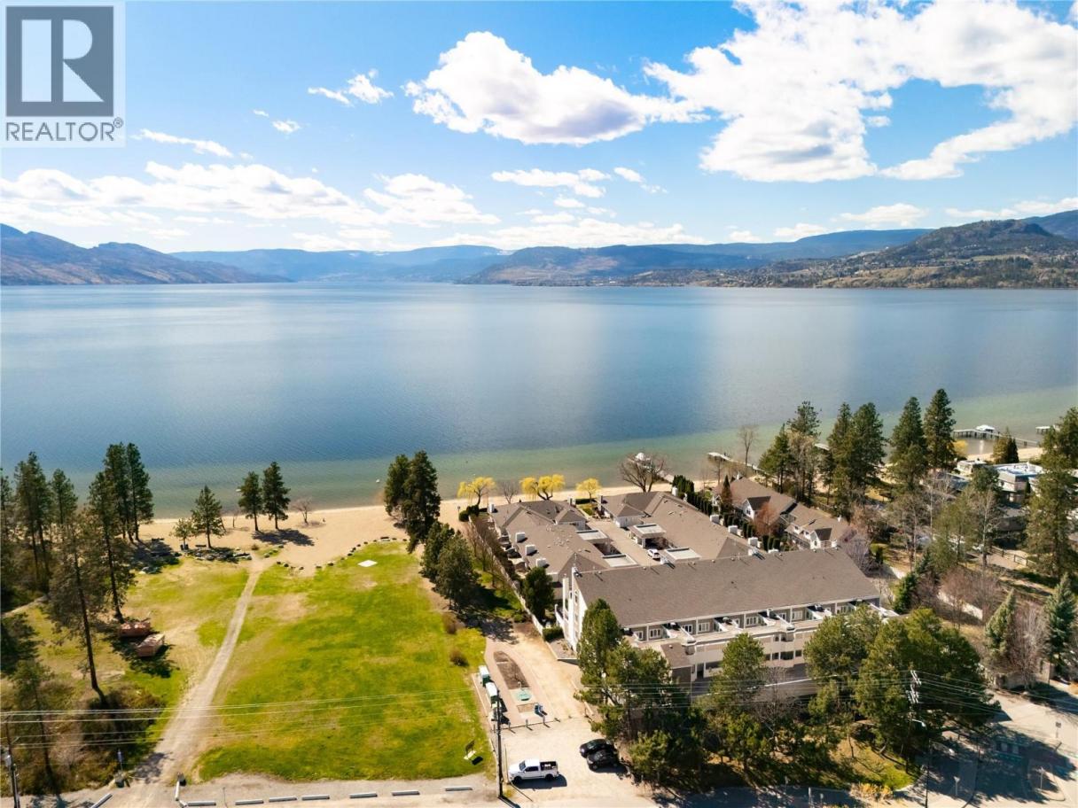 Welcome to your own lakeside retreat—where relaxed coastal charm meets refined, modern living. This beautifully updated 2 bedroom + loft, 2 bathroom condo captures a timeless “beach vibe,” offering breathtaking lake and mountain views from both levels, all within a sought-after gated waterfront community. From the moment you enter, you’re greeted by a bright, inviting vestibule with heated floors and a custom built-in bench—setting the tone for the thoughtful design throughout. The main level features two spacious bedrooms, including a serene primary suite with a walkthrough closet and a spa-inspired 4-piece ensuite, complete with heated floors. The heart of the home is the open-concept living, dining, and kitchen area, where vaulted ceilings and expansive windows frame the stunning lake views. A stylish gas fireplace with shiplap surround adds warmth and character, while wide plank hardwood flooring and quartz countertops complement the soft, neutral palette—perfectly aligned with today’s shift toward warm, natural tones. Upstairs, the airy loft offers a versatile family room or retreat space, overlooking the main living area and extending the home’s sense of openness and light. Outdoor living is equally impressive, with generous patio space on both levels connected by a charming spiral staircase—ideal for entertaining or simply soaking in the scenery. Immaculate and beautifully curated, this home is a rare opportunity to enjoy elevated beachfront living in a peaceful, private setting. (id:6769)