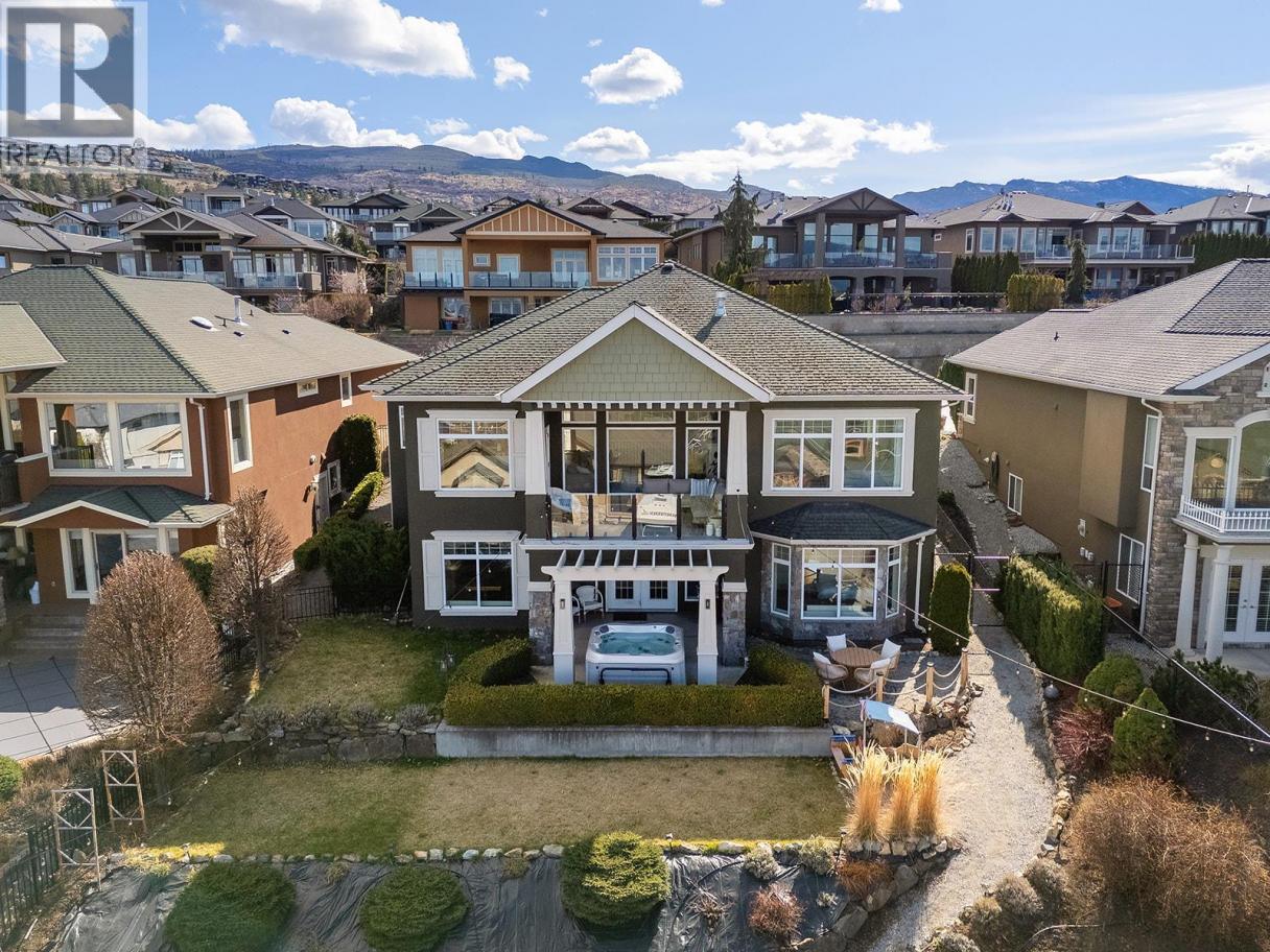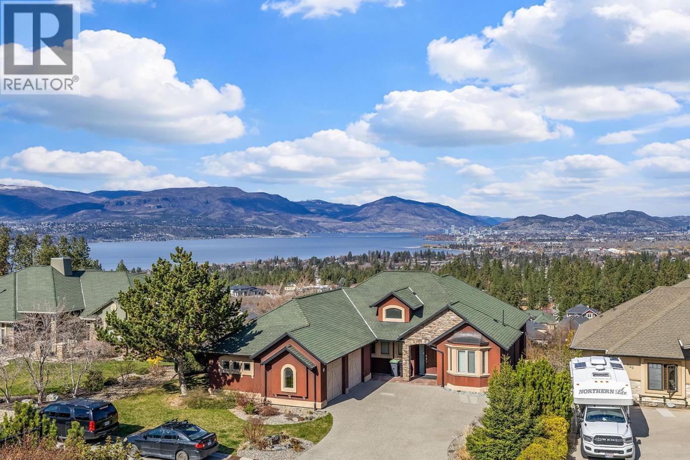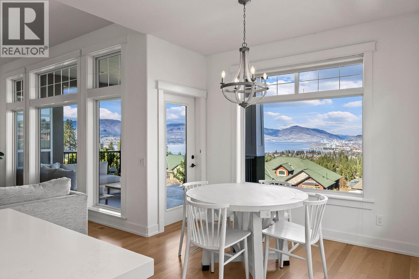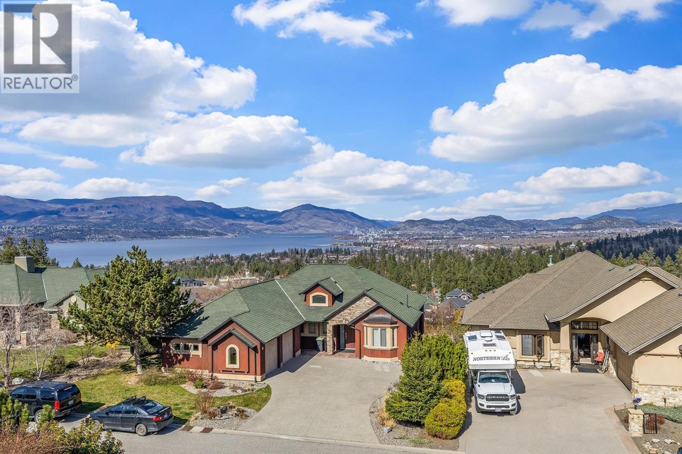 Stylish and inviting walk-out rancher in sought-after Upper Mission designed for the Okanagan lifestyle and panoramic lake views. Approximately 3,812 sq ft, this 5 bed, 4 bath home flows through bright open-concept living where hardwood floors and floor-to-ceiling windows frame sparkling water views. Gorgeous design details throughout including beams, arch entries, and wood slat wall features create a stylish modern farmhouse interior. The main level connects kitchen, breakfast, dining, and living spaces seamlessly, with a spacious primary suite featuring a walk-in closet and ensuite, a second bedroom, laundry, and a convenient powder room. The lower level expands the layout with additional bedrooms, a large rec area, great room, second kitchen, and a wine room, creating flexibility and privacy for guests or extended family. Step outside to a private setting with a hot tub, framed by hedges and rockwork, plus a double car garage and driveway with parking for four. Centrally located near Quarry Park, Canyon Falls Middle School, and Summerhill Winery in one of Upper Mission’s most desirable areas. (id:6769)