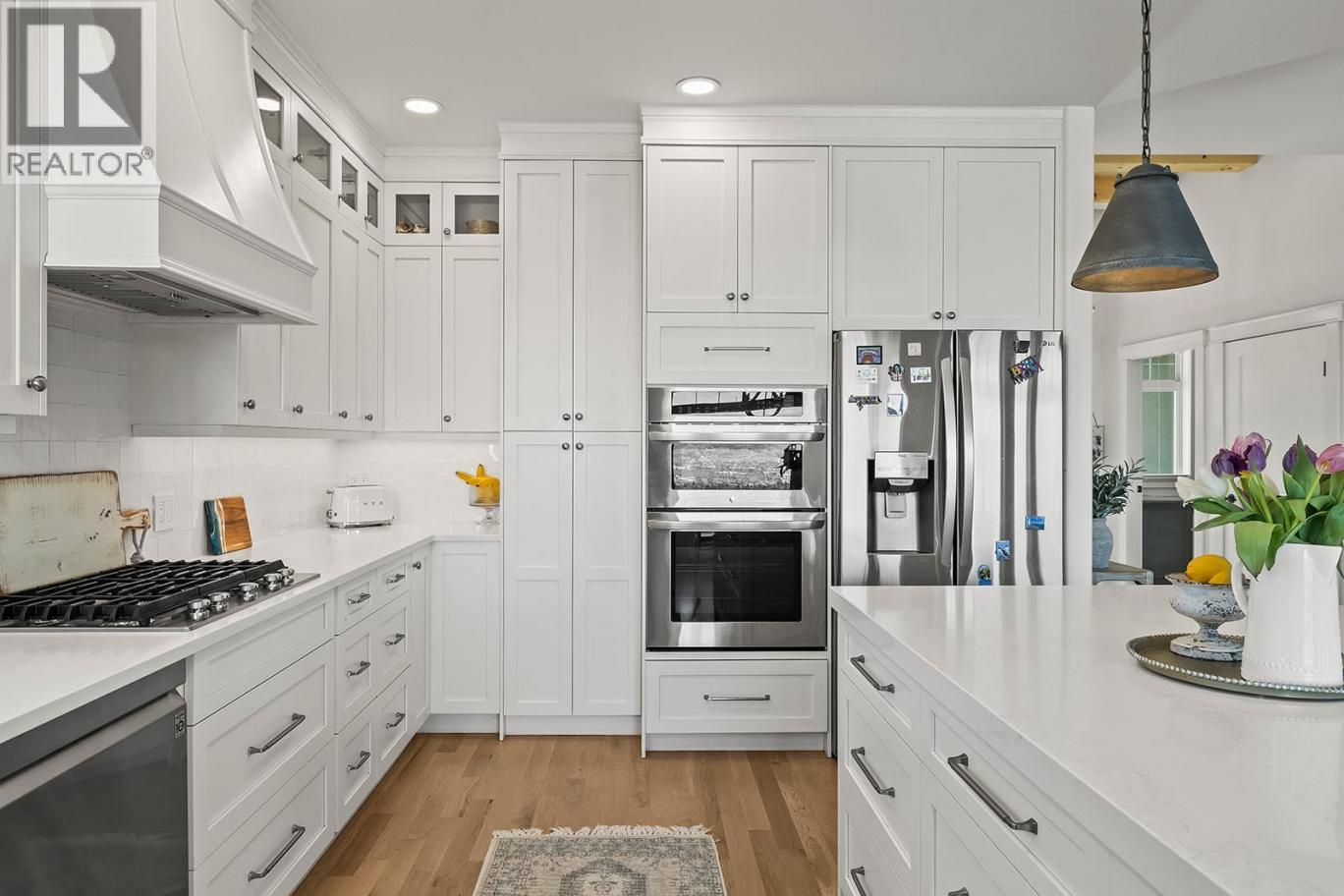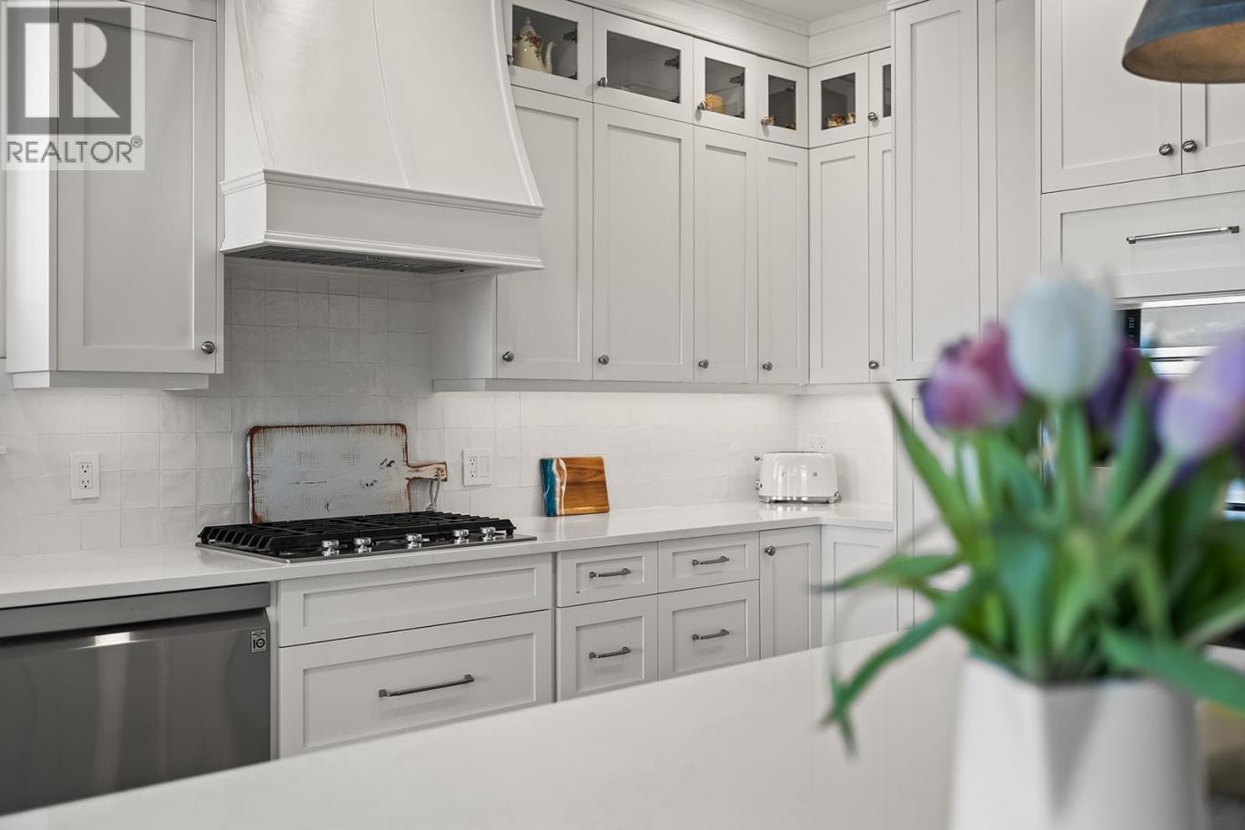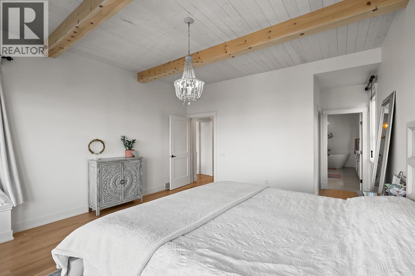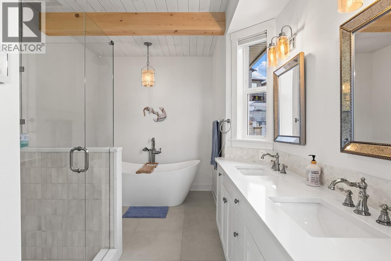 Stylish and inviting walk-out rancher in sought-after Upper Mission designed for the Okanagan lifestyle and panoramic lake views. Approximately 3,812 sq ft, this 5 bed, 4 bath home flows through bright open-concept living where hardwood floors and floor-to-ceiling windows frame sparkling water views. Gorgeous design details throughout including beams, arch entries, and wood slat wall features create a stylish modern farmhouse interior. The main level connects kitchen, breakfast, dining, and living spaces seamlessly, with a spacious primary suite featuring a walk-in closet and ensuite, a second bedroom, laundry, and a convenient powder room. The lower level expands the layout with additional bedrooms, a large rec area, great room, second kitchen, and a wine room, creating flexibility and privacy for guests or extended family. Step outside to a private setting with a hot tub, framed by hedges and rockwork, plus a double car garage and driveway with parking for four. Centrally located near Quarry Park, Canyon Falls Middle School, and Summerhill Winery in one of Upper Mission’s most desirable areas. (id:6769)