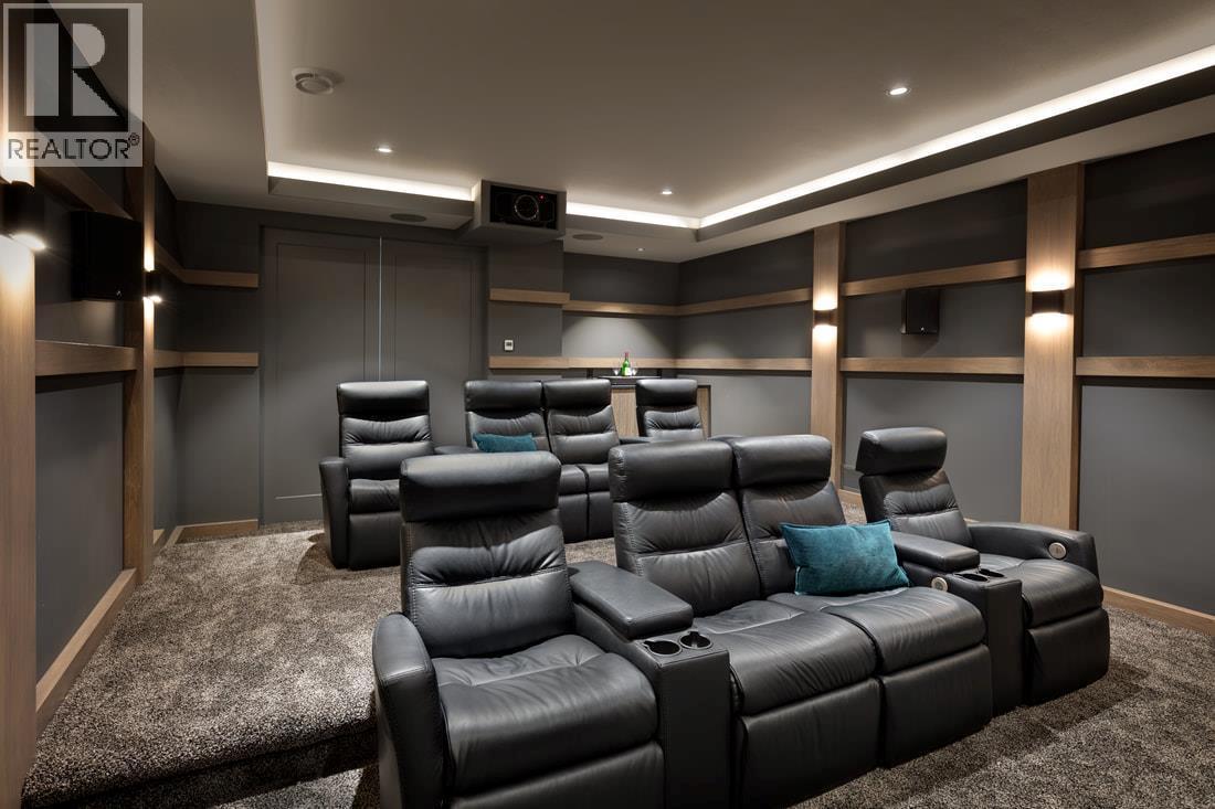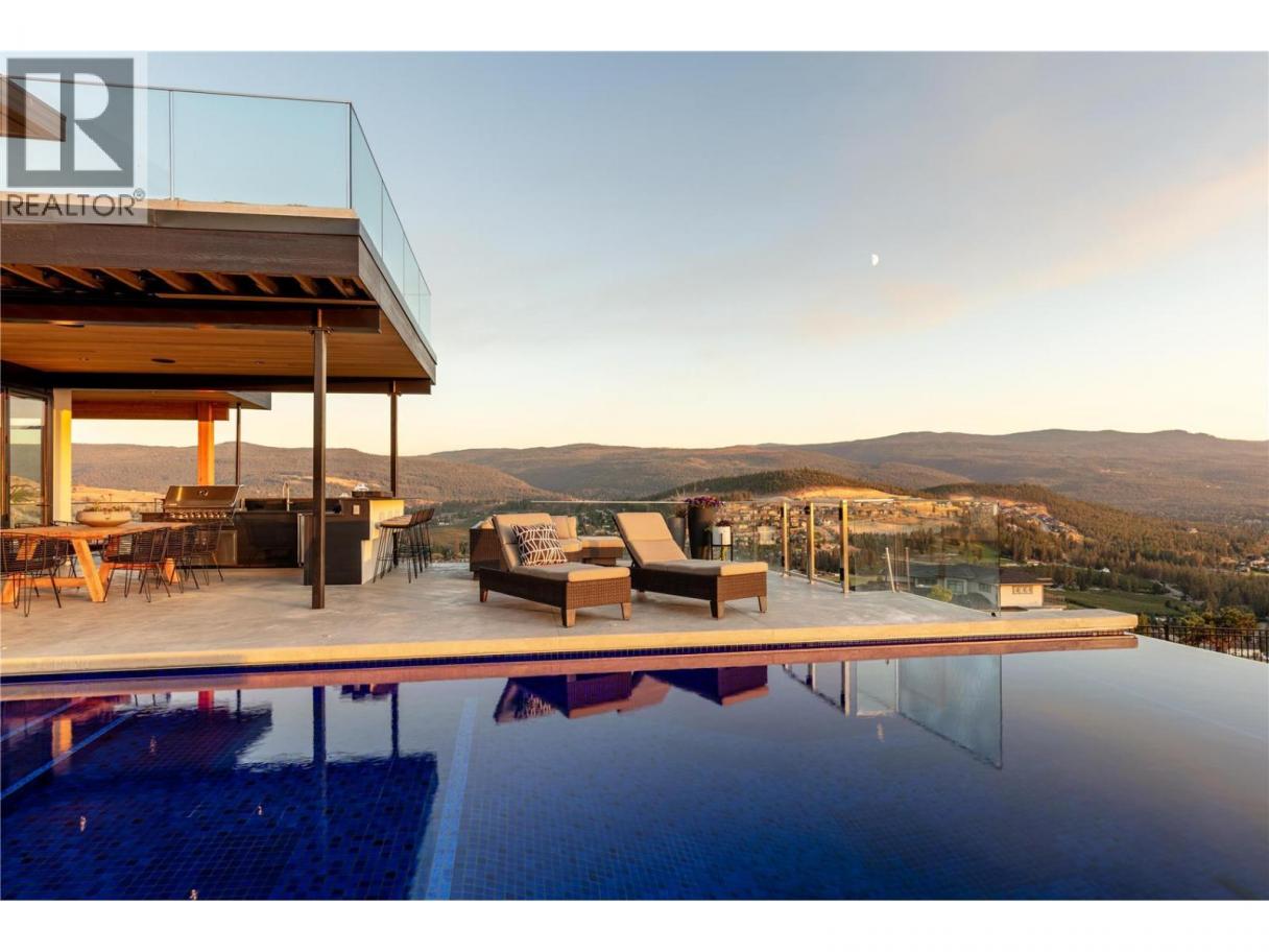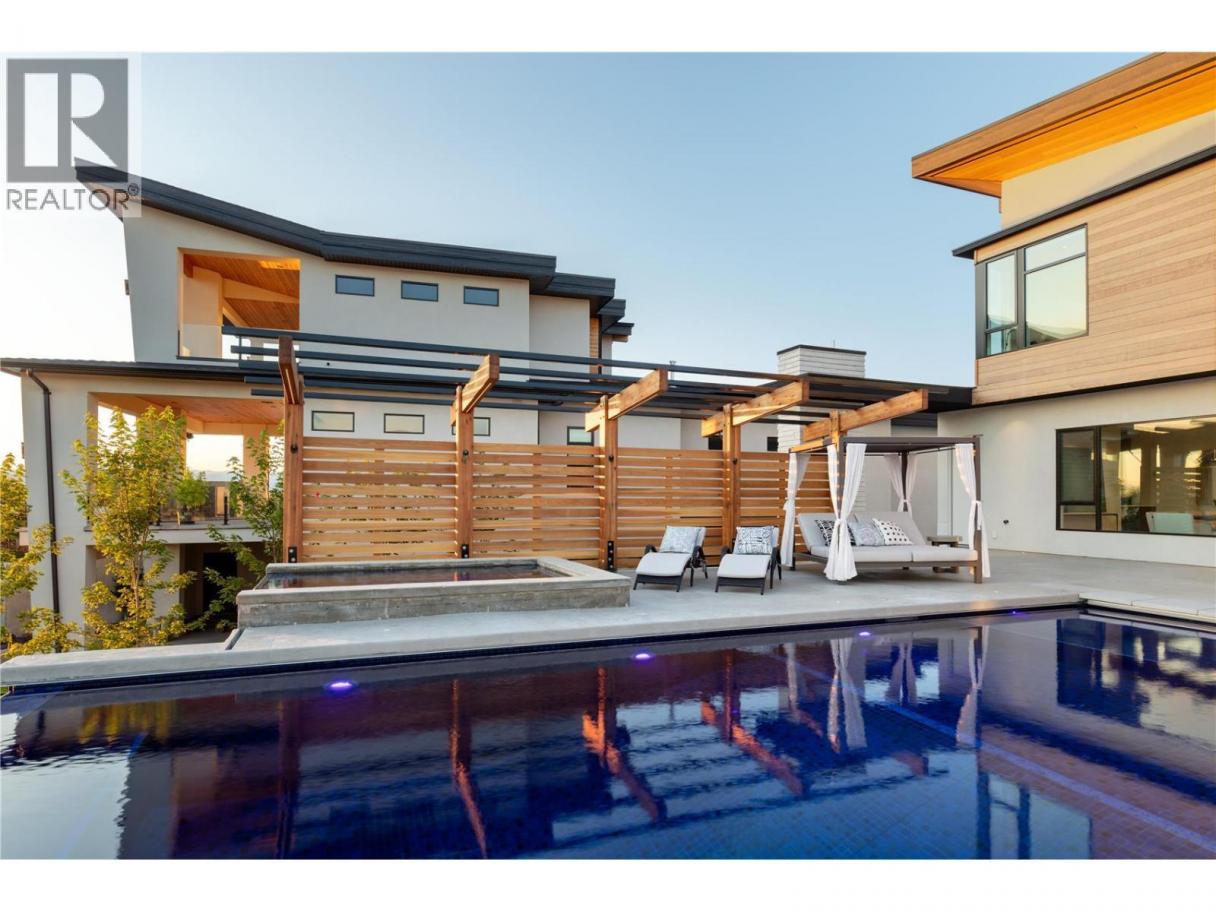 Perched gracefully atop an expansive double lot, this extraordinary seven-bedroom, six-bathroom estate captures breathtaking 270-degree vistas of shimmering lake waters, twinkling city lights, and rolling hills beyond. From the moment you enter, soaring ceilings and walls of windows bathe the home in natural light, creating an atmosphere of elegance and warmth. The open-concept main level is designed for both grand entertaining and intimate living, anchored by a spectacular great room that flows seamlessly into a chef-inspired gourmet kitchen complete with a fully appointed butler’s pantry. A refined dining room, enhanced by a striking two-way fireplace and custom built-ins, sets the stage for unforgettable gatherings. Outdoors, a private resort awaits. An infinity-edge pool and hot tub overlook the sweeping views, surrounded by generous lounging areas and a covered outdoor kitchen—perfect for hosting or unwinding in total serenity. Upstairs, three spacious bedrooms include a lavish primary retreat featuring its own private patio and dedicated laundry, offering both comfort and seclusion. The lower level transforms into the ultimate entertainment haven, with a games area, pool table, expansive lounge, and a fully equipped wet bar ready for any occasion. Additional highlights include a private cinema and a full indoor sports court. Two triple garages provide exceptional space, while the expansive backyard invites endless possibilities. Completing this remarkable property is a beautifully finished legal suite above the garage, offering luxury and flexibility. With unmatched scale, design, and lifestyle amenities, this is a truly irreplaceable residence. (id:6769)