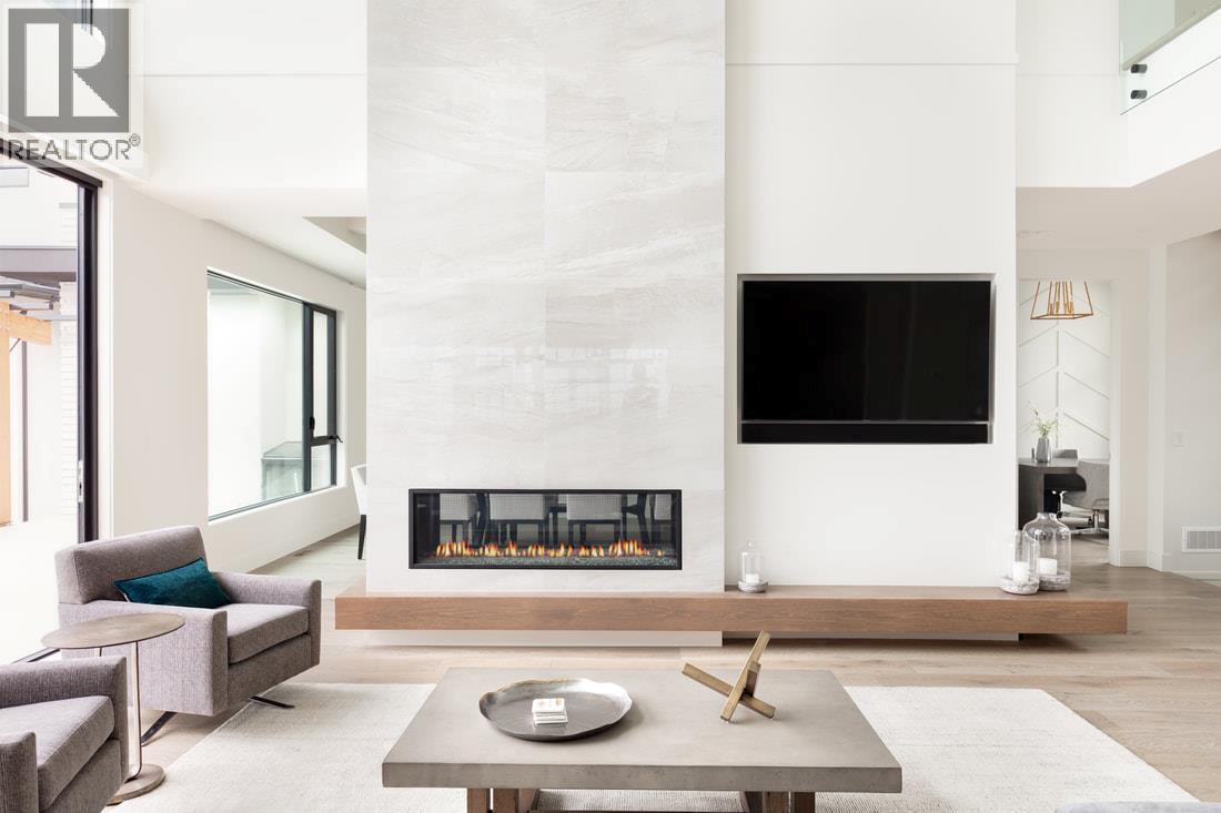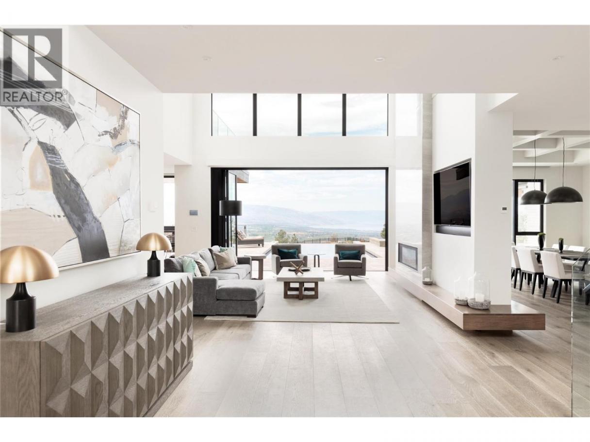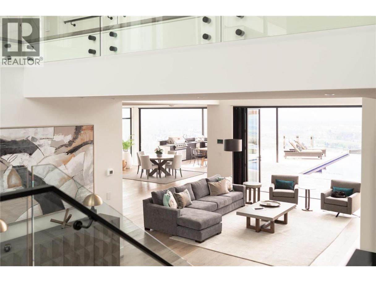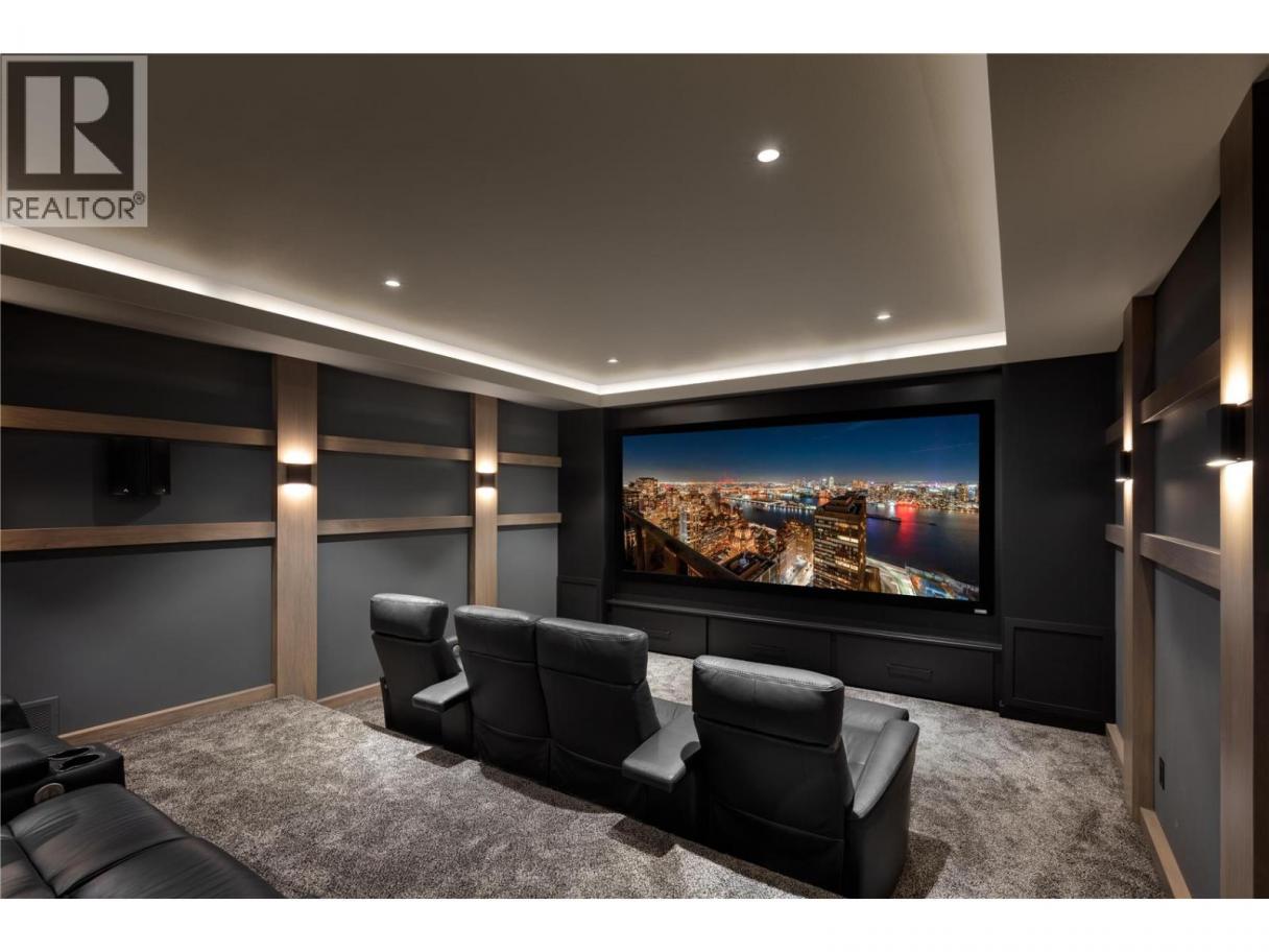Perched gracefully atop an expansive double lot, this extraordinary seven-bedroom, six-bathroom estate captures breathtaking 270-degree vistas of shimmering lake waters, twinkling city lights, and rolling hills beyond. From the moment you enter, soaring ceilings and walls of windows bathe the home in natural light, creating an atmosphere of elegance and warmth. The open-concept main level is designed for both grand entertaining and intimate living, anchored by a spectacular great room that flows seamlessly into a chef-inspired gourmet kitchen complete with a fully appointed butler’s pantry. A refined dining room, enhanced by a striking two-way fireplace and custom built-ins, sets the stage for unforgettable gatherings. Outdoors, a private resort awaits. An infinity-edge pool and hot tub overlook the sweeping views, surrounded by generous lounging areas and a covered outdoor kitchen—perfect for hosting or unwinding in total serenity. Upstairs, three spacious bedrooms include a lavish primary retreat featuring its own private patio and dedicated laundry, offering both comfort and seclusion. The lower level transforms into the ultimate entertainment haven, with a games area, pool table, expansive lounge, and a fully equipped wet bar ready for any occasion. Additional highlights include a private cinema and a full indoor sports court. Two triple garages provide exceptional space, while the expansive backyard invites endless possibilities. Completing this remarkable property is a beautifully finished legal suite above the garage, offering luxury and flexibility. With unmatched scale, design, and lifestyle amenities, this is a truly irreplaceable residence. (id:6769)