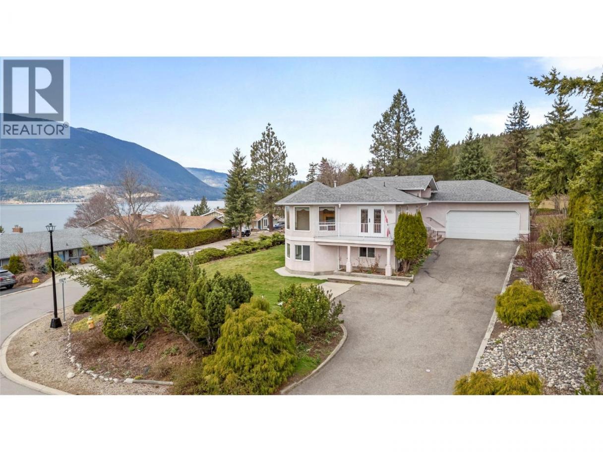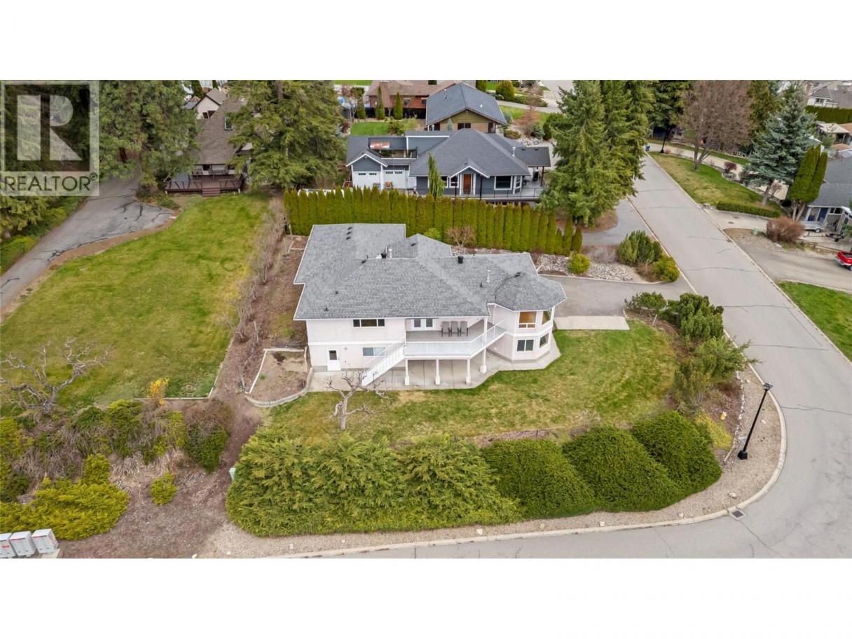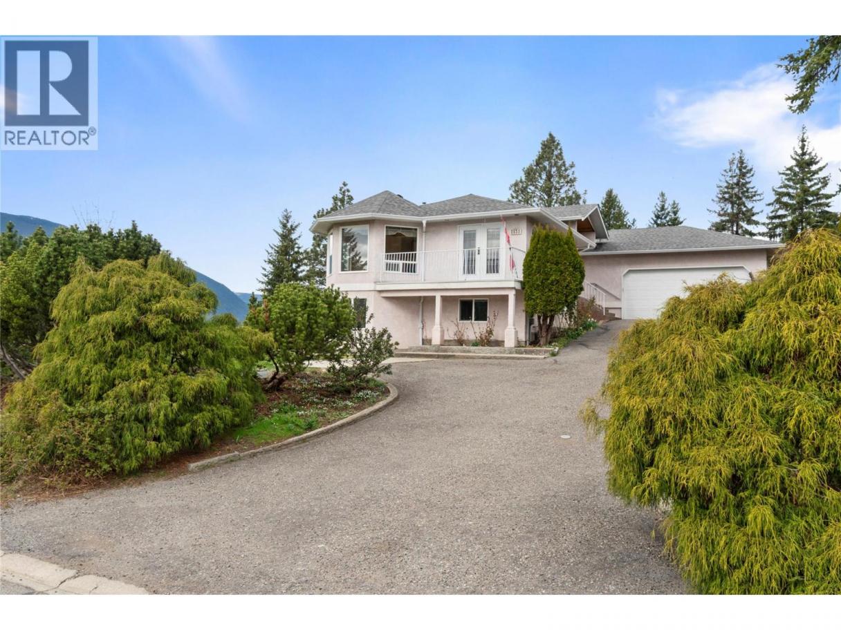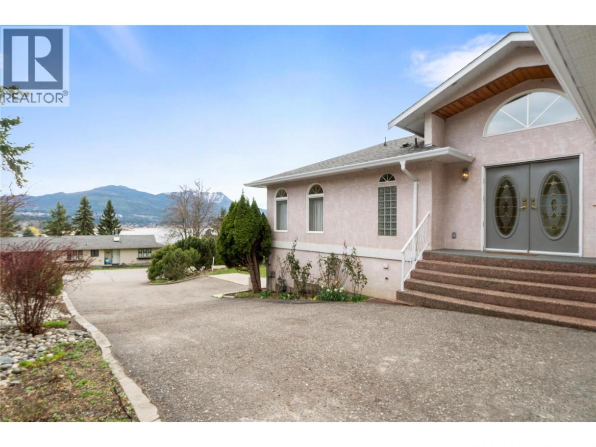 Welcome to a truly special home—custom built by the original owners and now offered for sale for the first time! Set proudly on a sun-drenched, nearly quarter acre corner lot in the highly coveted Raven neighborhood, this property captures panoramic lake and mountain views from multiple vantage points, both upstairs & down. Thoughtfully designed and impeccably maintained, this spacious 4-bedroom, 3-bathroom home offers incredible flexibility for families at all stages. The bright lower level features a covered concrete patio area w/lake view, & a self-contained 2-bdrm suite w/ 2 entrances, lg mudroom, and a ""wine cellar/pantry/laundry room""—perfect for extended family, guests, or a valuable mortgage helper. The main living space is warm and inviting, highlighted by a stunning vaulted wood octagonal ceiling, h/w flooring and a dramatic wall of windows that flood the home with natural light. The primary bdrm offers a walk-in closet, ensuite, and access to the front deck—an ideal spot to take in the view with your morning coffee. Outdoor living is just as impressive, with two decks, and established gardens featuring rose bushes, mature plantings, and unique apple tree with 5 varieties. Practical features include an oversized dble garage w/workspace, ample parking including RV or boat space, A/C, N/G fireplace, irrigation, CV, a new HW tank & full Poly B replacement (2026). Located just steps from scenic trails and parks - once you see it, you’ll know it’s the one. (id:6769)