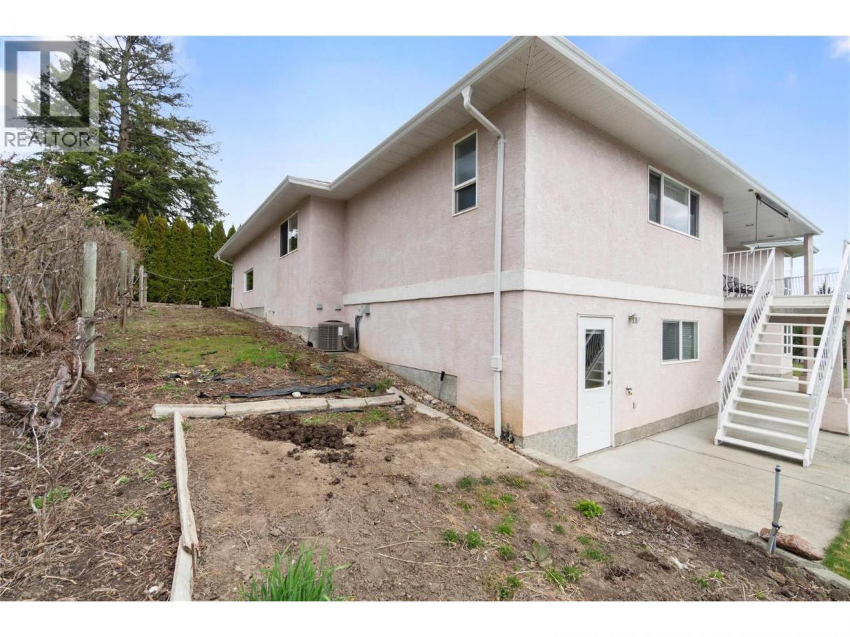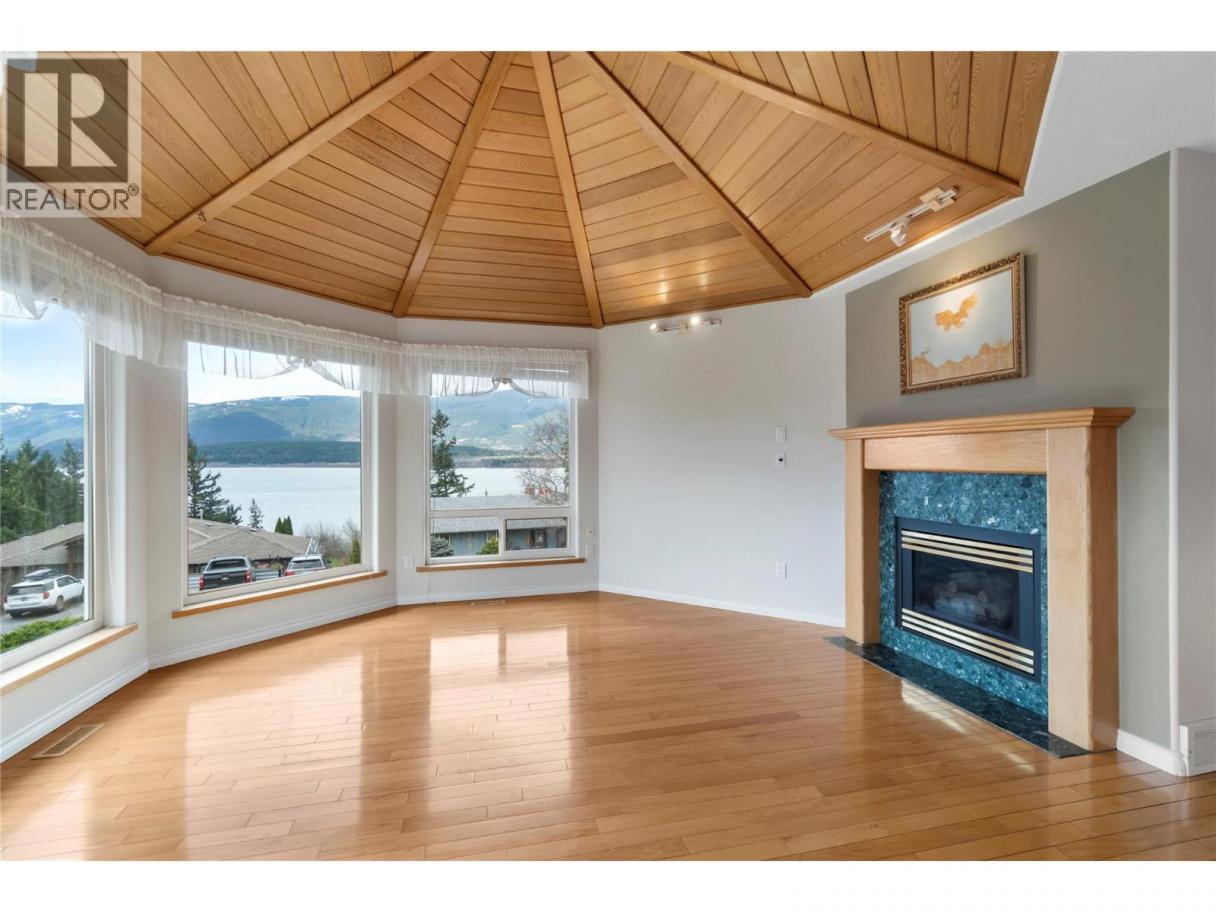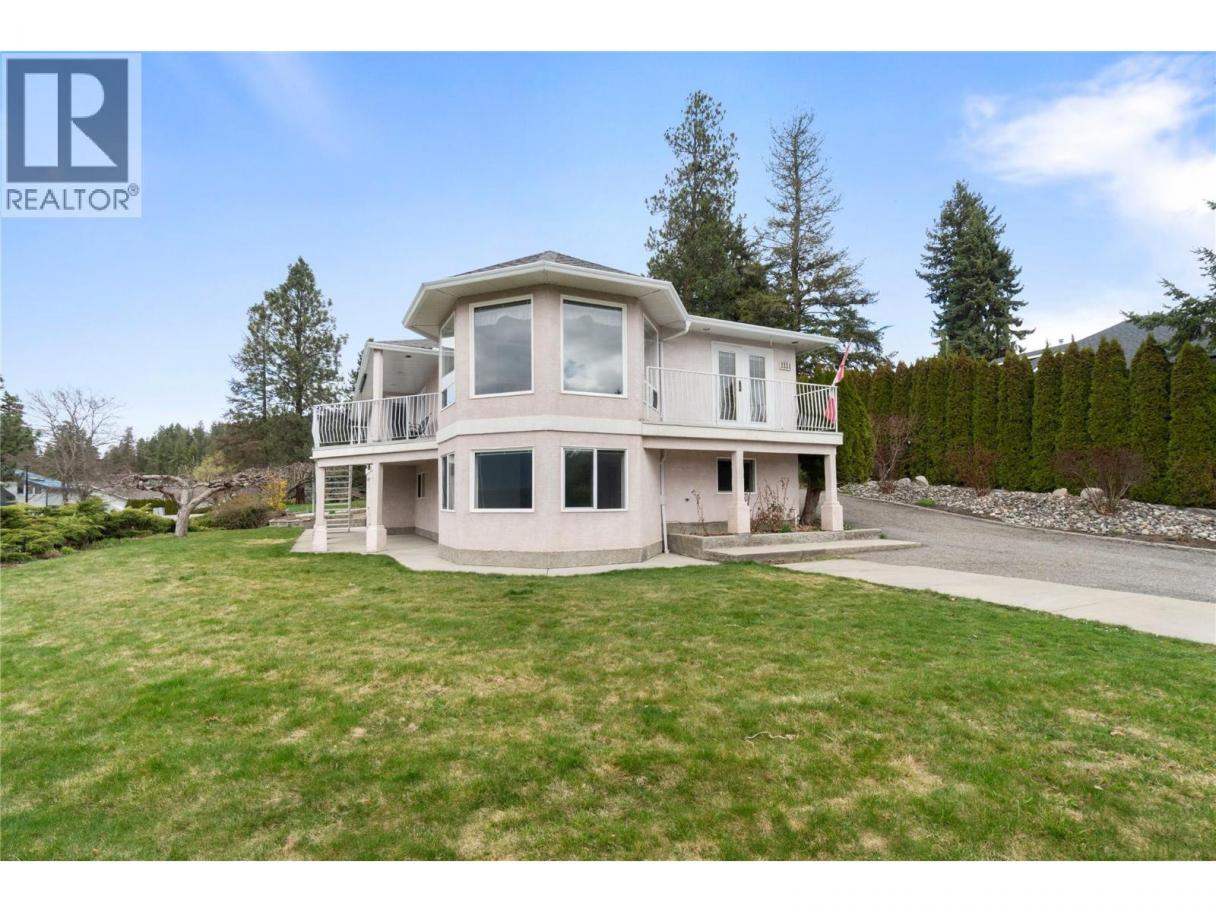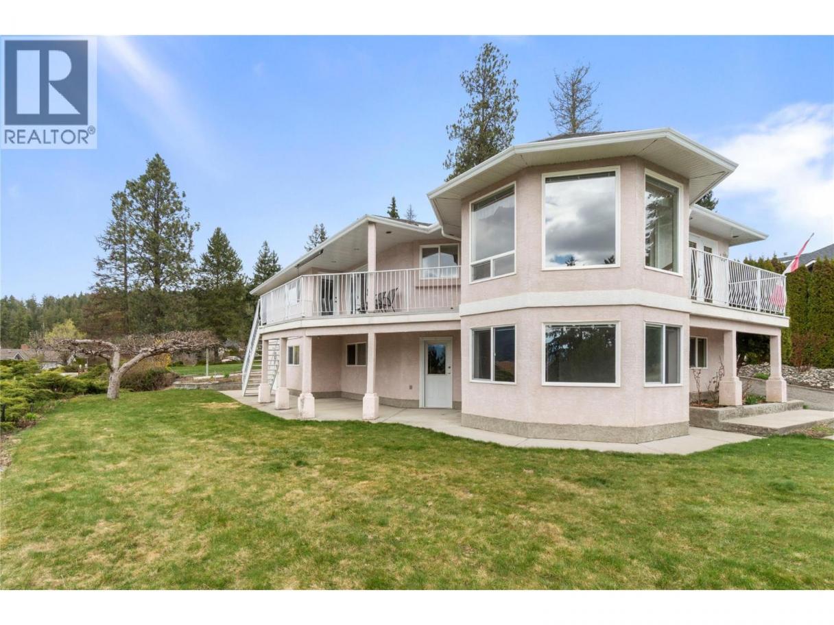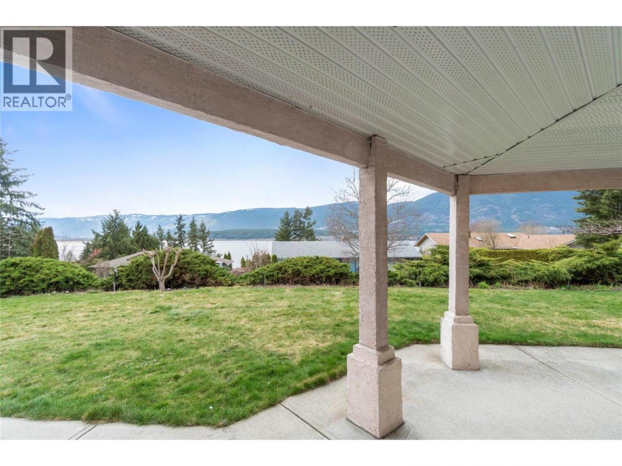 Welcome to a truly special home—custom built by the original owners and now offered for sale for the first time! Set proudly on a sun-drenched, nearly quarter acre corner lot in the highly coveted Raven neighborhood, this property captures panoramic lake and mountain views from multiple vantage points, both upstairs & down. Thoughtfully designed and impeccably maintained, this spacious 4-bedroom, 3-bathroom home offers incredible flexibility for families at all stages. The bright lower level features a covered concrete patio area w/lake view, & a self-contained 2-bdrm suite w/ 2 entrances, lg mudroom, and a ""wine cellar/pantry/laundry room""—perfect for extended family, guests, or a valuable mortgage helper. The main living space is warm and inviting, highlighted by a stunning vaulted wood octagonal ceiling, h/w flooring and a dramatic wall of windows that flood the home with natural light. The primary bdrm offers a walk-in closet, ensuite, and access to the front deck—an ideal spot to take in the view with your morning coffee. Outdoor living is just as impressive, with two decks, and established gardens featuring rose bushes, mature plantings, and unique apple tree with 5 varieties. Practical features include an oversized dble garage w/workspace, ample parking including RV or boat space, A/C, N/G fireplace, irrigation, CV, a new HW tank & full Poly B replacement (2026). Located just steps from scenic trails and parks - once you see it, you’ll know it’s the one. (id:6769)