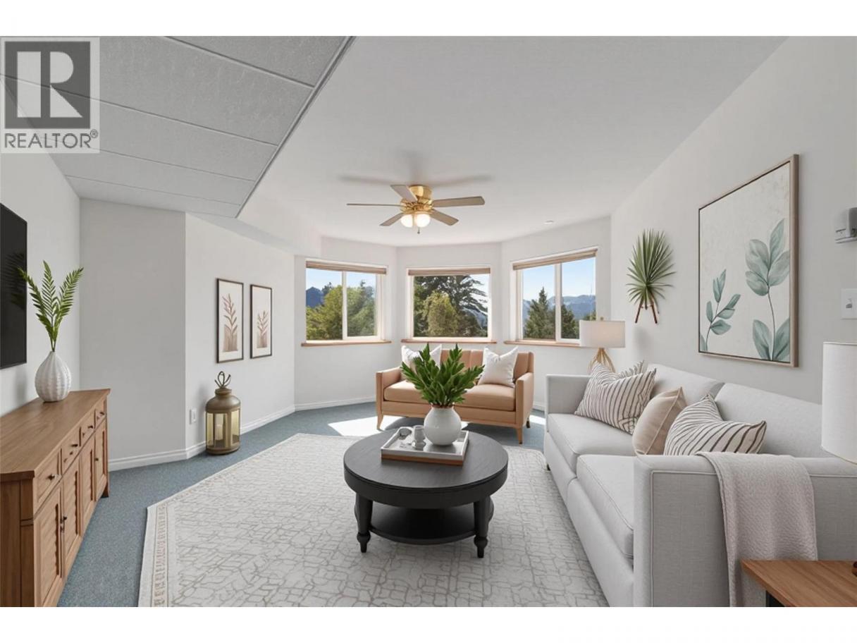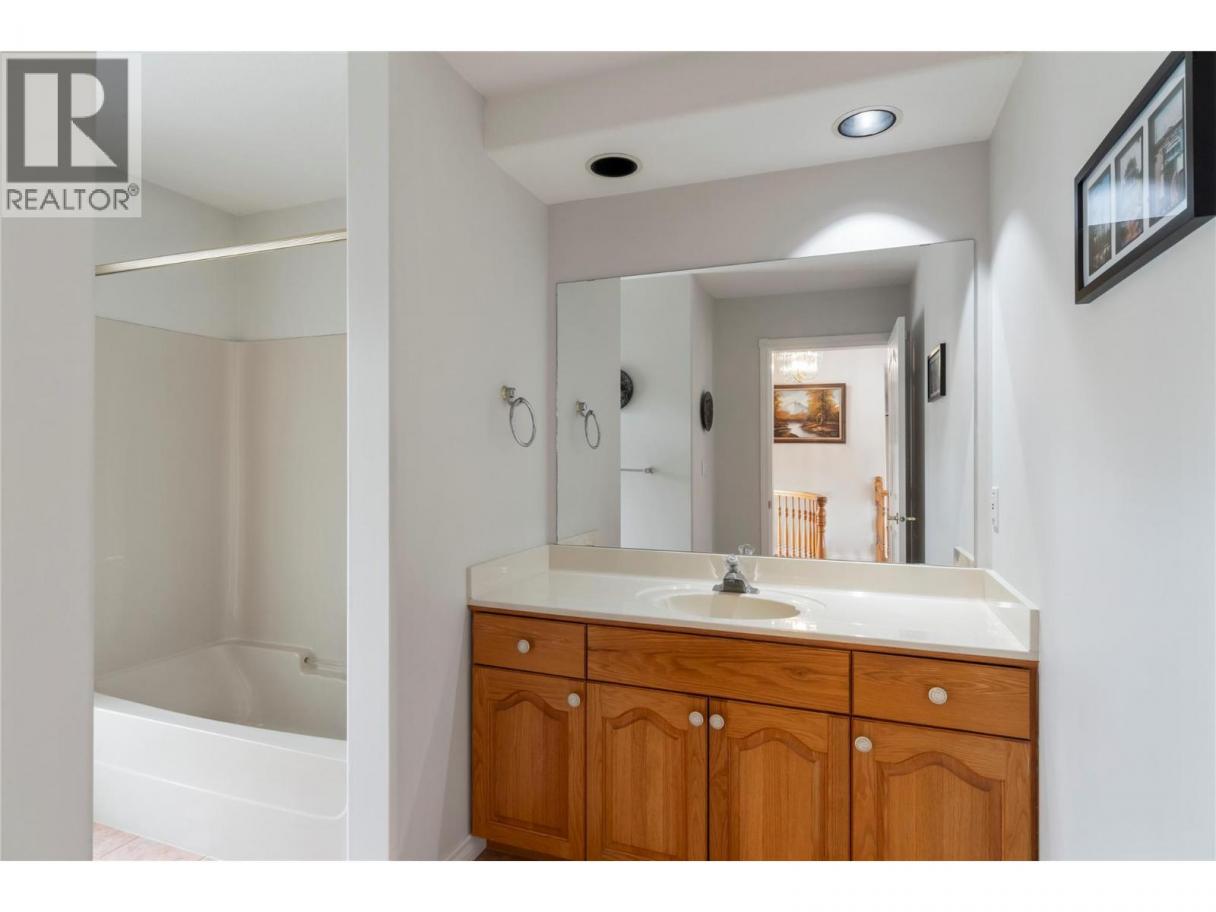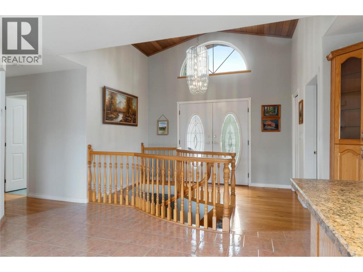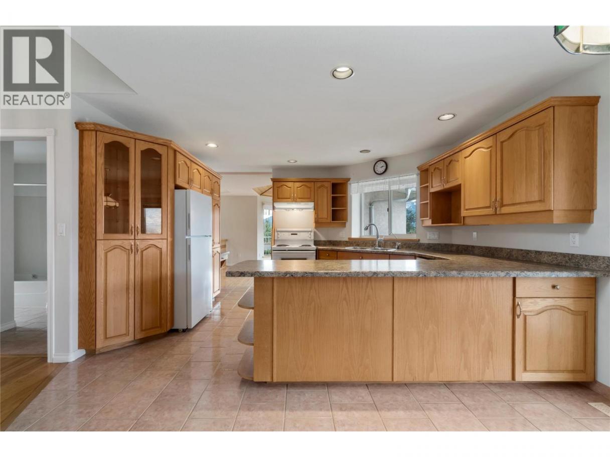 Welcome to a truly special home—custom built by the original owners and now offered for sale for the first time! Set proudly on a sun-drenched, nearly quarter acre corner lot in the highly coveted Raven neighborhood, this property captures panoramic lake and mountain views from multiple vantage points, both upstairs & down. Thoughtfully designed and impeccably maintained, this spacious 4-bedroom, 3-bathroom home offers incredible flexibility for families at all stages. The bright lower level features a covered concrete patio area w/lake view, & a self-contained 2-bdrm suite w/ 2 entrances, lg mudroom, and a ""wine cellar/pantry/laundry room""—perfect for extended family, guests, or a valuable mortgage helper. The main living space is warm and inviting, highlighted by a stunning vaulted wood octagonal ceiling, h/w flooring and a dramatic wall of windows that flood the home with natural light. The primary bdrm offers a walk-in closet, ensuite, and access to the front deck—an ideal spot to take in the view with your morning coffee. Outdoor living is just as impressive, with two decks, and established gardens featuring rose bushes, mature plantings, and unique apple tree with 5 varieties. Practical features include an oversized dble garage w/workspace, ample parking including RV or boat space, A/C, N/G fireplace, irrigation, CV, a new HW tank & full Poly B replacement (2026). Located just steps from scenic trails and parks - once you see it, you’ll know it’s the one. (id:6769)
