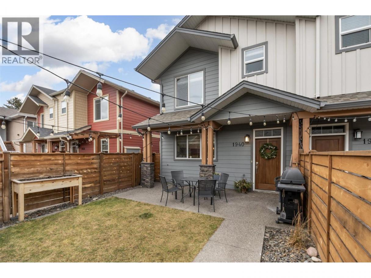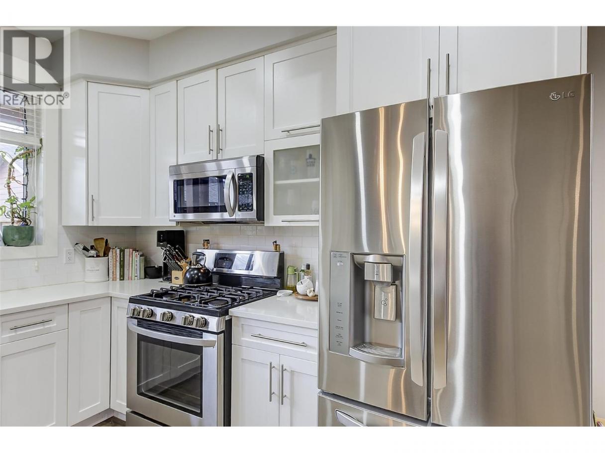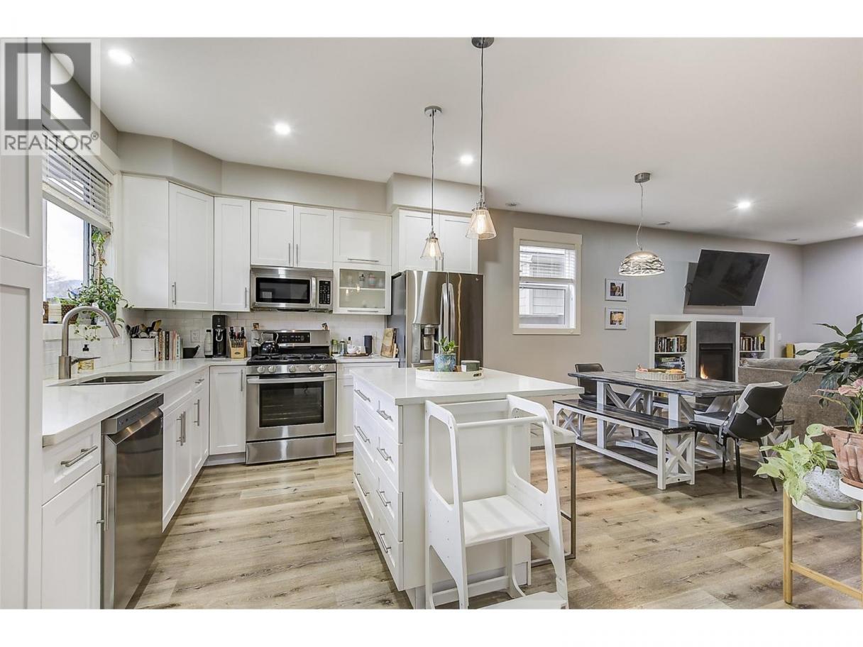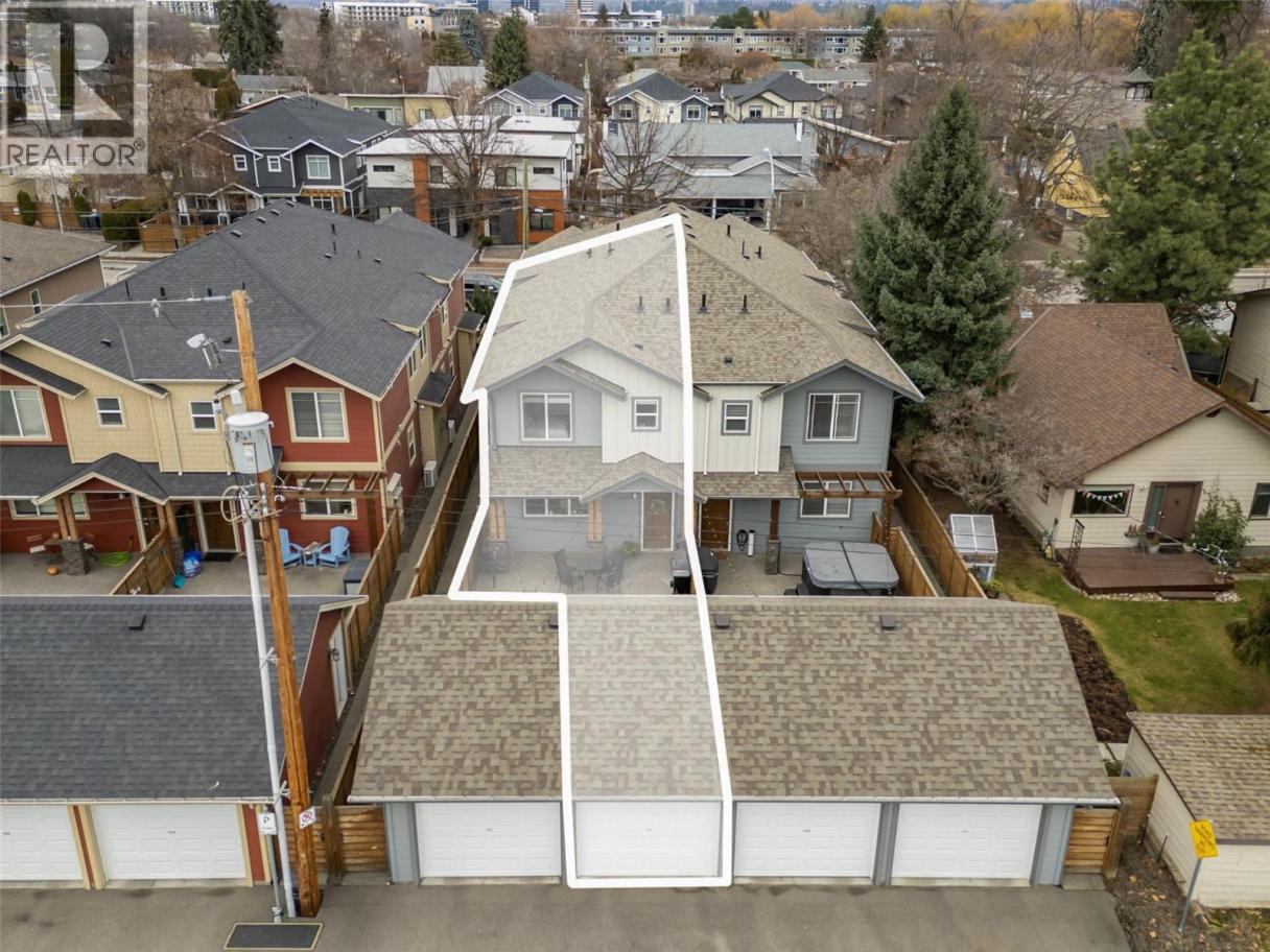 Experience relaxed, connected Kelowna living in this beautifully maintained townhome crafted by Maraine Construction. Thoughtfully designed with a warm, modern aesthetic, the home offers an inviting atmosphere from the moment you step inside. Sunlit living spaces create an easy flow for daily life—perfect for quiet mornings, relaxed evenings, or hosting friends in comfort. The kitchen’s quartz surfaces, stainless steel appliances, and gas range set the stage for effortless cooking and gathering. Upstairs, two bright bedrooms—primary with its own ensuite— provide privacy and comfort for homeowners, guests, or renters. A rare advantage in this category, the generous yard offers room to unwind outdoors, garden, or simply enjoy your own slice of city space. With covered garage parking, extra storage (including above-garage storage accessed by pull-down stairs), and efficient heating and cooling, the home delivers convenience without compromise. Situated near transit, schools, and essential amenities—and within a five-minute walk to three different parks with playgrounds—the location unlocks a genuinely walkable lifestyle. Bike or stroll to Pandosy Village or Downtown with ease, supported by direct access to the Ethel biking corridor. Offering style, comfort, and long-term value, this thoughtfully kept two-story townhome is an appealing alternative to condo living—ideal for a first home, investment, or those seeking a vibrant urban-adjacent community. (id:6769)