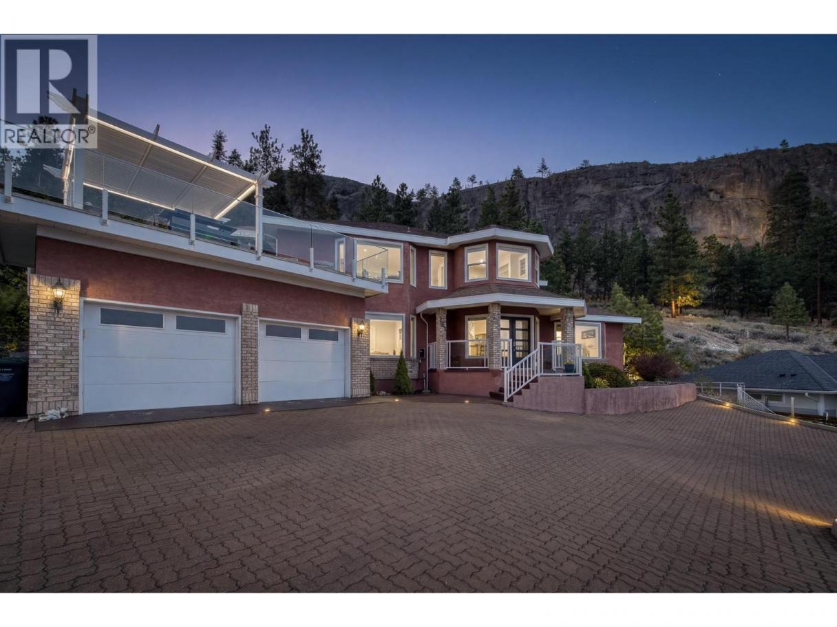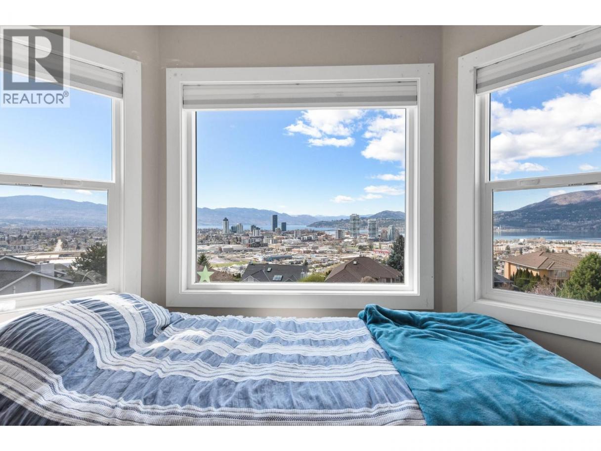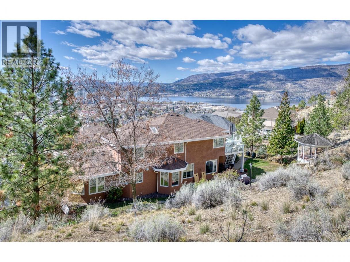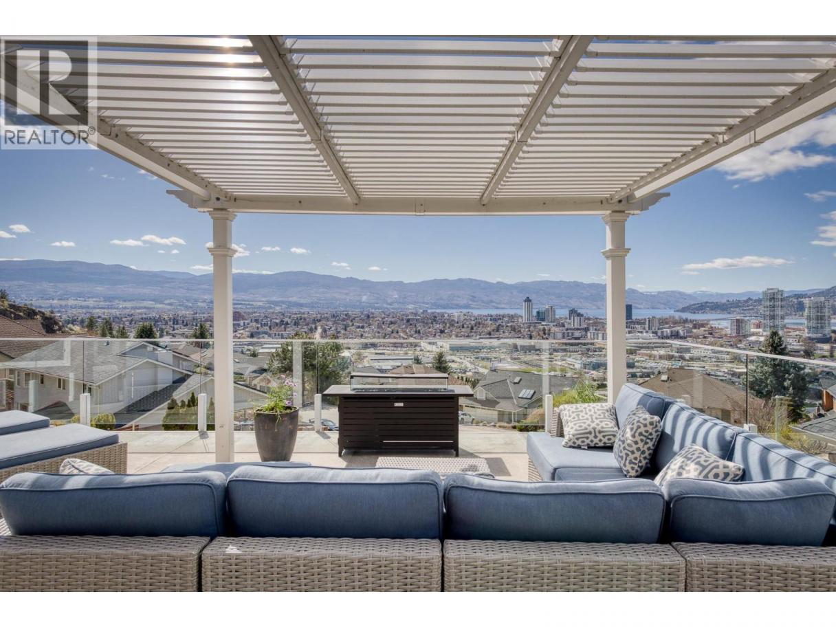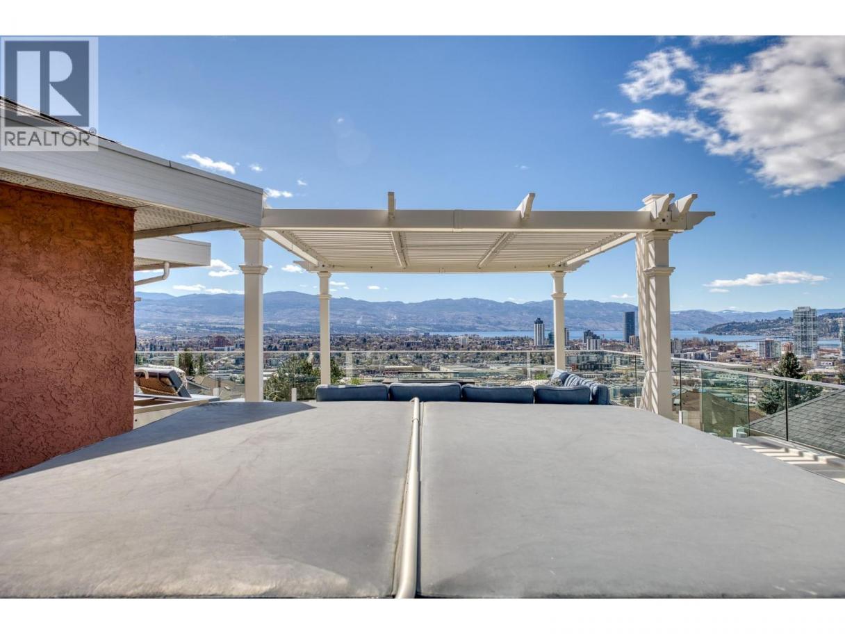 Enjoy panoramic views from this updated, family friendly, 4 BEDROOMS UP plus main floor DEN home in the sought after Royal View neighbourhood. The 1.5 acre lot backs onto Knox Mountain, bringing privacy and exclusive trail access. The house sits high and overlooks downtown and Okanagan Lake, providing stunning views throughout the home-it’s a space you will never want to leave. The interior boasts a kitchen that is a chef's dream, with island, separate pantry and high end appliances including a 36” DCS range. There's large foyer with curved staircase, separate dining room, an office/den/gym, plus cozy sunken living and family rooms. The home has enough space for two offices, making it ideal for remote work. The upper floor is perfect for larger families. The master has an electric fireplace, large walk in, and more space for yoga or a home office. The large 5-pc ensuite contains a double vanity, separate shower, and double jetted tub. Step out to your expansive 1,000 sq. foot rooftop deck ideal for entertaining and taking in the sunsets or lights of downtown from under your 12x12 louvered pergola, and private hot tub. The additional 3 beds up are nicely sized for any age. The basement area has a media room, wine cellar, and plenty of storage. The oversized garage (31ft deep on one side) has 11ft ceilings and space for a workshop. The backyard boasts a nice pergola and covered patio. Check out the virtual tour: https://youriguide.com/y066p_721_royal_pine_dr_kelowna_bc/ (id:6769)