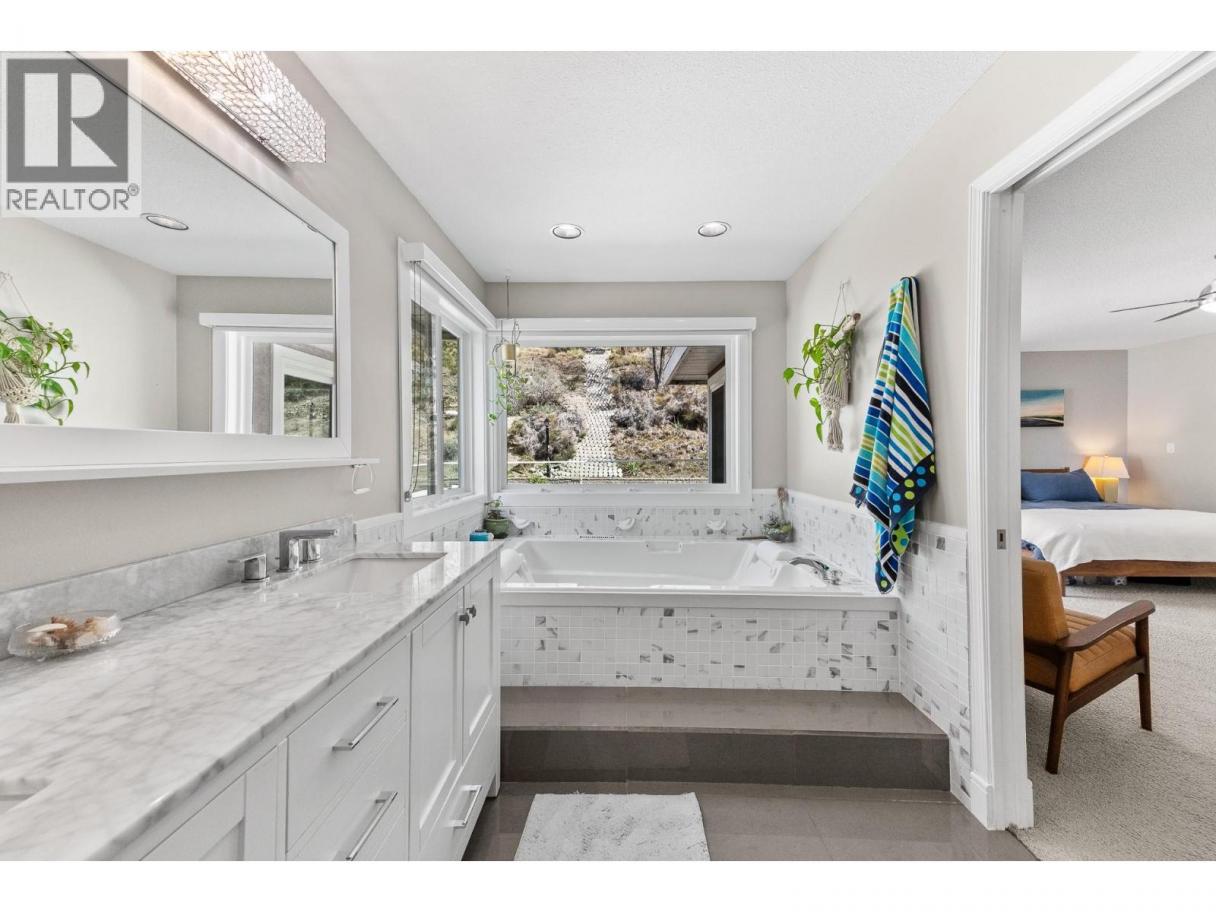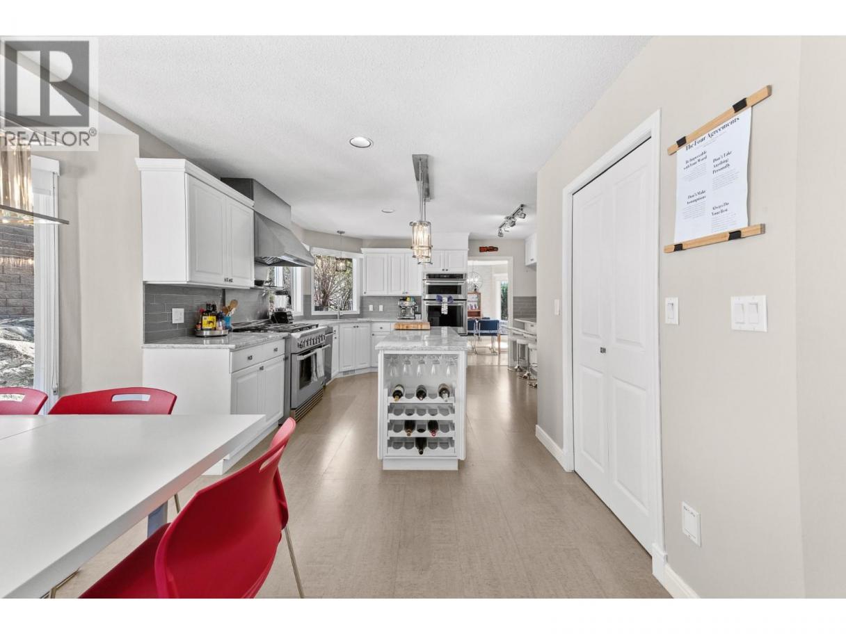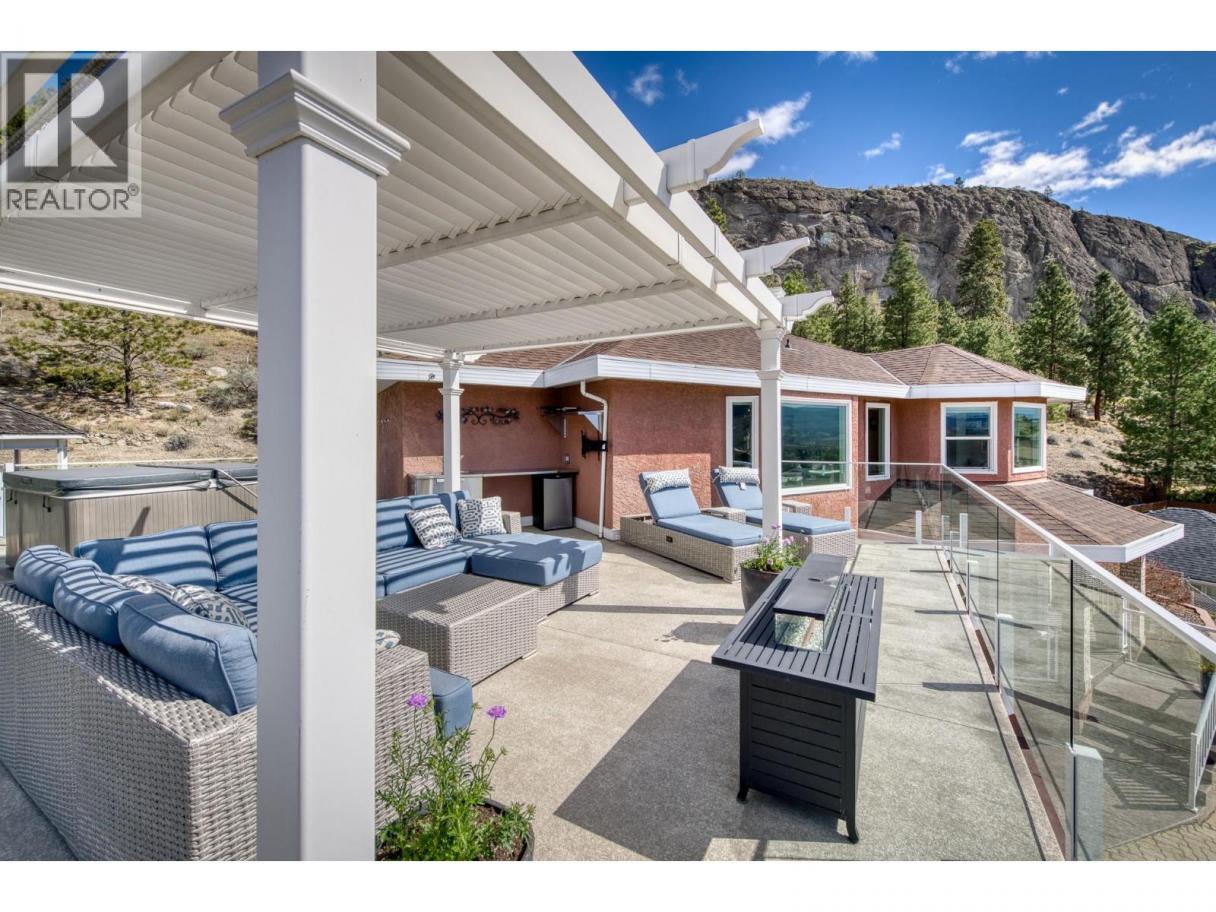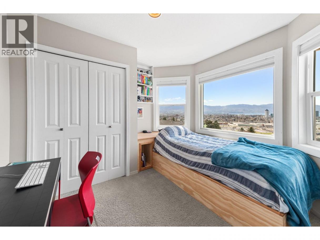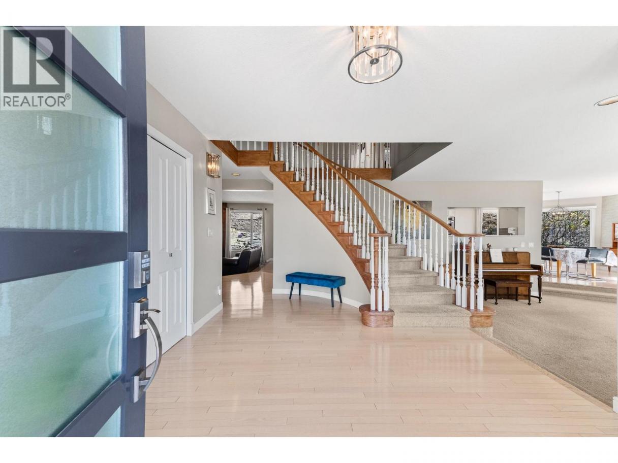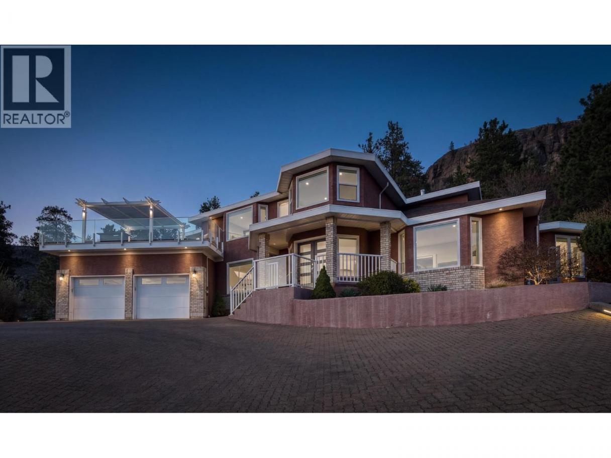 Enjoy panoramic views from this updated, family friendly, 4 BEDROOMS UP plus main floor DEN home in the sought after Royal View neighbourhood. The 1.5 acre lot backs onto Knox Mountain, bringing privacy and exclusive trail access. The house sits high and overlooks downtown and Okanagan Lake, providing stunning views throughout the home-it’s a space you will never want to leave. The interior boasts a kitchen that is a chef's dream, with island, separate pantry and high end appliances including a 36” DCS range. There's large foyer with curved staircase, separate dining room, an office/den/gym, plus cozy sunken living and family rooms. The home has enough space for two offices, making it ideal for remote work. The upper floor is perfect for larger families. The master has an electric fireplace, large walk in, and more space for yoga or a home office. The large 5-pc ensuite contains a double vanity, separate shower, and double jetted tub. Step out to your expansive 1,000 sq. foot rooftop deck ideal for entertaining and taking in the sunsets or lights of downtown from under your 12x12 louvered pergola, and private hot tub. The additional 3 beds up are nicely sized for any age. The basement area has a media room, wine cellar, and plenty of storage. The oversized garage (31ft deep on one side) has 11ft ceilings and space for a workshop. The backyard boasts a nice pergola and covered patio. Check out the virtual tour: https://youriguide.com/y066p_721_royal_pine_dr_kelowna_bc/ (id:6769)