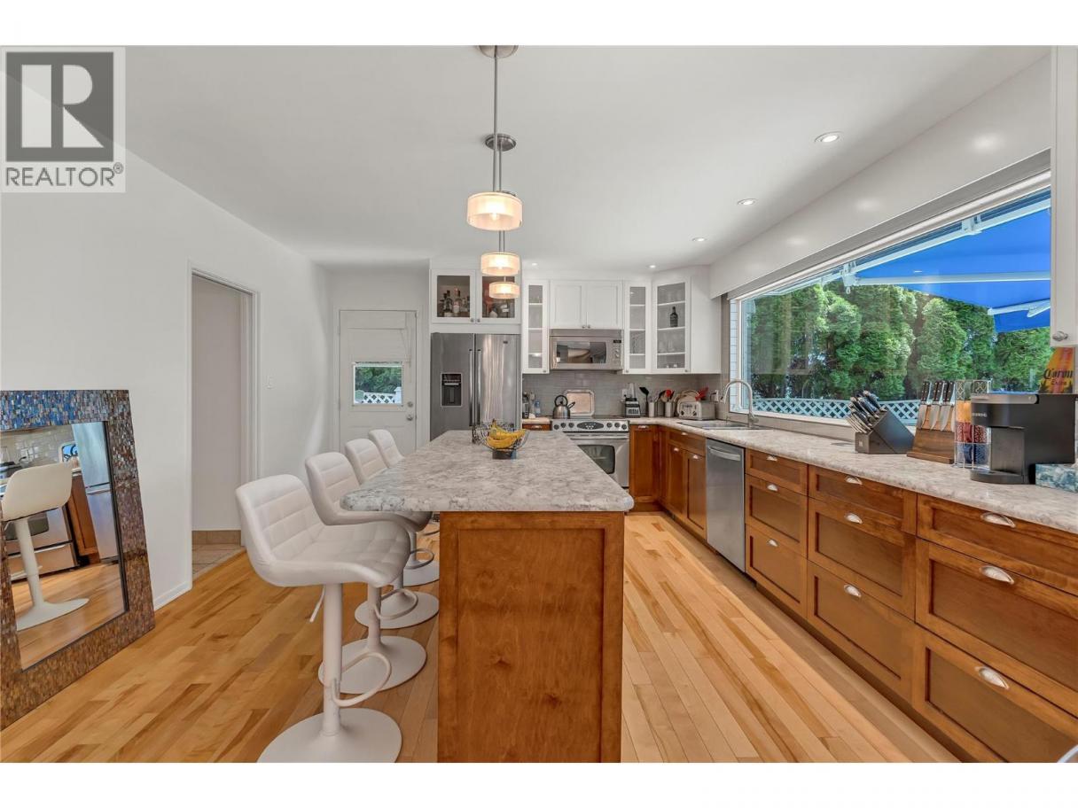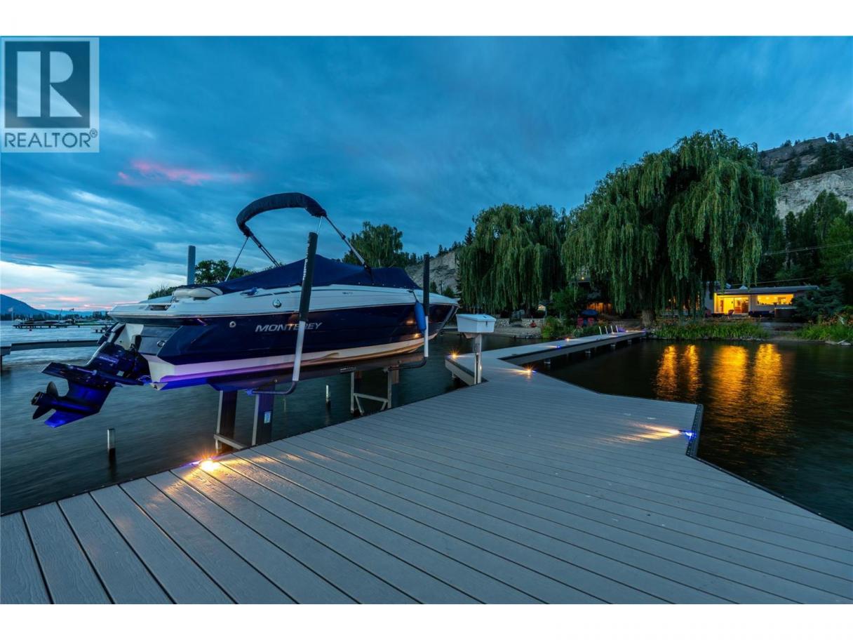 Lakeside Living on Skaha Lake – A Rare Opportunity Welcome to your opportunity to create lifelong memories in this beautifully maintained lakefront home. Situated on the shores of Skaha Lake, this charming property offers 60 feet of sandy beachfront and a lush, landscaped yard leading to a spacious patio perfect for relaxing and enjoying breathtaking lake views. This well-cared-for home features 4 bedrooms, 2 bathrooms, with a bonus room that can be used as a 5th bedroom, and a generous family room ideal for gatherings. The residence has been thoughtfully updated over the years with modernized bathrooms, an updated kitchen, and elegant hardwood flooring throughout the main living areas. Recent upgrades include a new air conditioning unit, professionally designed landscaping, and a brand-new dock, providing the ultimate setting for summer recreation and lakeside entertaining. Additional features include a 23.5' x 24' detached double garage and ample space for RV or boat parking. (id:6769)