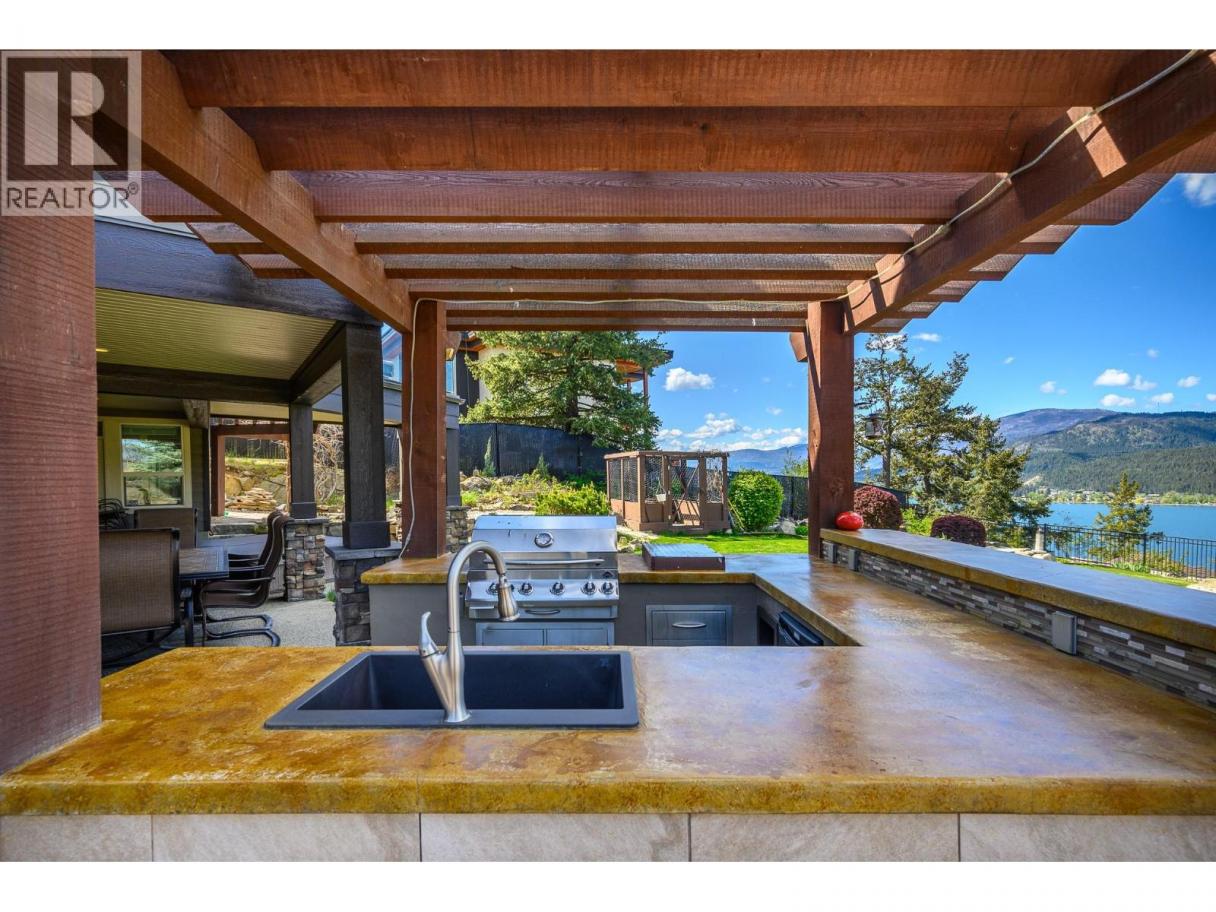 Home & Coach House with Unmatched Garage Package. *Seller Motivated* This rare lake view estate on a private .82-acre parcel in the exclusive Adventure Bay area redefines Okanagan luxury living. Over 5,000 sq. ft. of refined living space sits privately on the hillside with sweeping lake views from nearly every room. The main level features a spacious gourmet kitchen with granite counters that flows seamlessly into expansive dining and living areas framed by dramatic floor-to-ceiling windows. Step outside to a large covered deck complete with a built-in outdoor kitchen, perfect for entertaining. The lower level offers a generous media room and bar, opening directly to the backyard oasis featuring a luxurious hot tub and second outdoor kitchen. The garage package is truly one-of-a-kind: a massive 2,100 sq. ft. heated shop with a 20-foot door that doubles as a regulation pickleball court. A separate upper driveway provides second access, unlimited parking and an RV hookup. Additional highlights include a guest house, 400 amp electrical service and a full fire suppression system. Residents enjoy exclusive shared access to a private beach and boat launch just minutes away. Located in one of the Okanagan’s most desirable four-season communities with world-class golf, wineries, and recreation at your doorstep. This exceptional property is easy to view with flexible possession. Serious buyers are encouraged to act now. Contact your Agent or the Listing Agent to schedule a viewing. (id:6769)