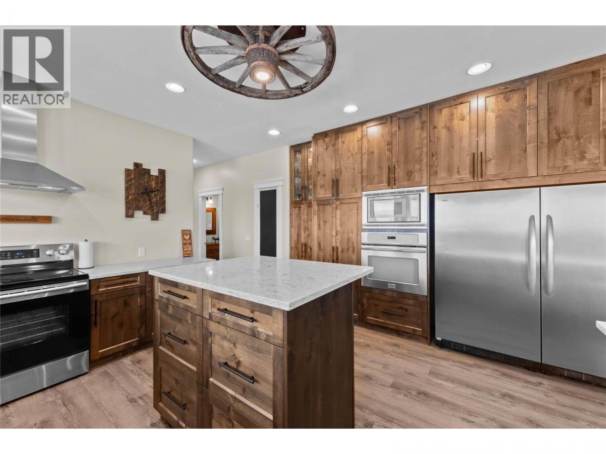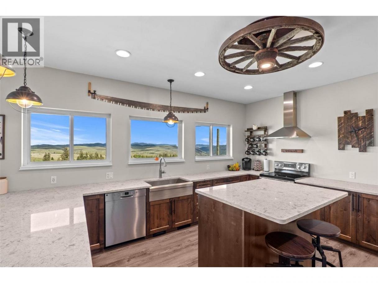 Set on 80 breathtaking acres in Knutsford, just 20 minutes from Kamloops, this ranch offers privacy, income potential, and stunning 360° views. 3,990 sqft home features 5 bedrooms & 4 baths, w/ a bright, open layout & large windows capturing the surrounding landscape. Renovated kitchen boasts quartz countertops, custom cabinetry, & modern finishes, flowing into spacious living & dining areas ideal for entertaining. Step onto the upgraded wraparound deck with new railings, stairs, and durable Flexstone coating, perfect for enjoying panoramic sunsets. Primary suite includes a walk-in closet and a spa-inspired ensuite with a glass shower and soaker tub. Fully self-contained basement suite w/ separate entry, quartz kitchen, and soundproofing offers excellent income or multigenerational living potential. Additional features include new flooring, fresh paint, LED lighting, WETT-certified wood stove. The property is fully fenced and includes a grazing lease for potential farm status benefits. 25 GPM well provides reliable water yr around. Attached heated double garage and 30x50 insulated shop w/ power and reinforced slab offer exceptional workspace. 6' x 11' chicken coop (2019) is equipped w/ power, storage, and dual 10' x 10' enclosures. Fully fenced property includes a 60' solid round pen, a three-stall lean-to w/ tack area. Rare opportunity to own a versatile lifestyle property in prime rural setting. Property exempt from Foreign Buyer Ban. Contact 250-682-5986 for details. (id:6769)