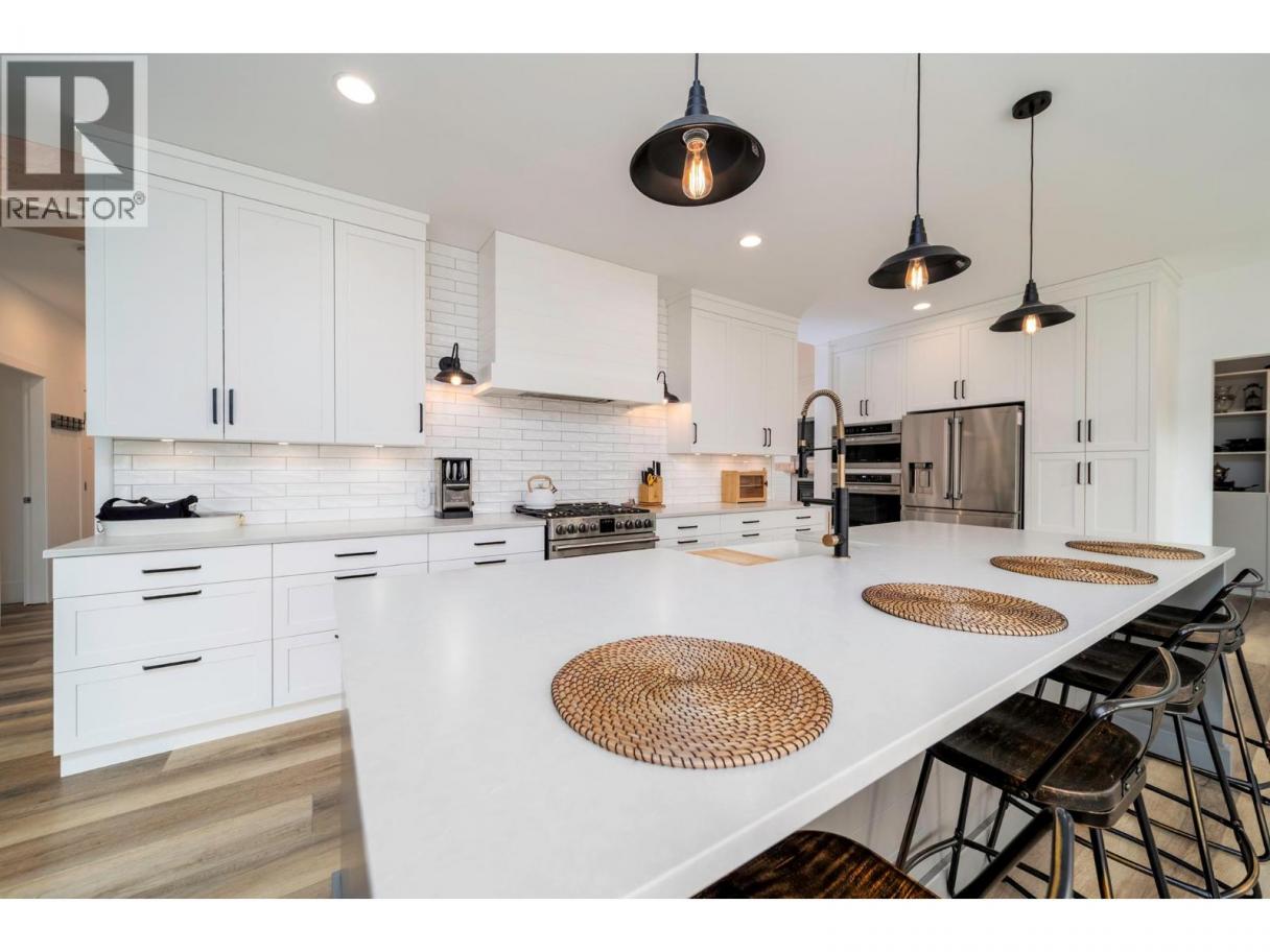 Extensively renovated and award-winning, this exceptional Upper Mission residence offers over 4,100 sq.ft. of refined living space designed for how people truly live, gather, and unwind. From the moment you enter, the scale impresses—soaring ceilings, a grand curved staircase, and light-filled spaces that immediately feel like home. The main level is built for connection, featuring expansive living areas and a chef-inspired kitchen with a generous island and oversized walk-in pantry (7’ x 14’1”), seamlessly extending to outdoor living—perfect for entertaining or relaxed family evenings. Upstairs, the primary suite is a true retreat with a spa-inspired 6-piece ensuite and walk-in closet, complemented by two additional bedrooms and a dedicated office (200+ sq.ft.) for a quiet, productive workspace. The walk-out lower level delivers incredible flexibility with a large rec room (~473 sq.ft.), guest bedroom, full bath, and space for media, fitness, or play. Step outside to your private resort—saltwater pool, hot tub, and natural gas fire pit—backing onto protected green space for privacy and tranquility. A complete 2022 renovation by AEC Contracting showcases a Gold Tommy Award-winning kitchen and ensuite, Westwood Cabinetry, quartz surfaces (Katie Knorr design), and custom Urban Closets. With 4 fireplaces, on-demand hot water, and thoughtful upgrades throughout, this is a rare opportunity to own a true lifestyle property in one of Kelowna’s most sought-after neighbourhoods. (id:6769)