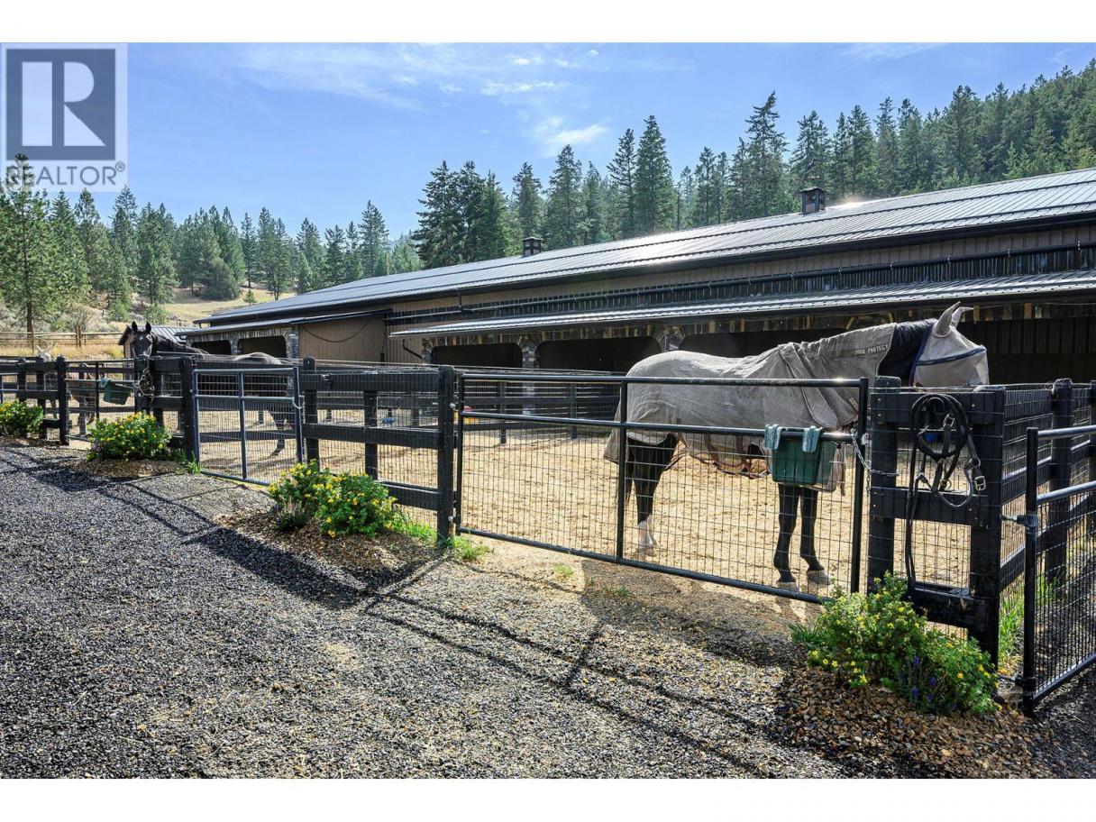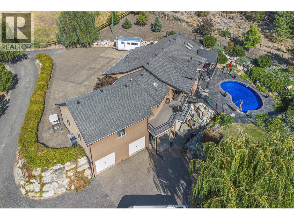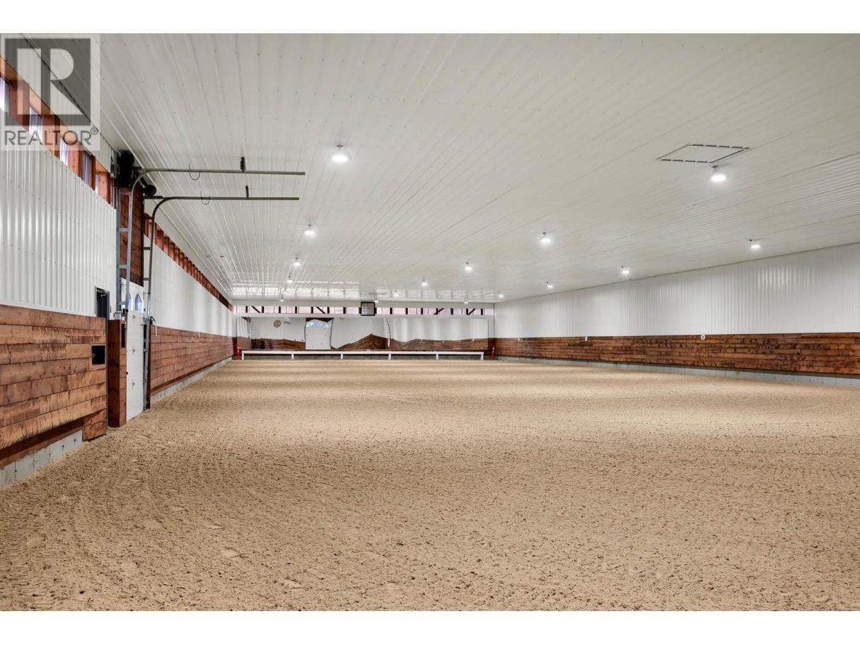 An exceptional opportunity to own a premier equestrian estate offering top-tier living, income potential, and unmatched versatility...all on 16 pristine acres within Kamloops city limits. Designed for both serious equestrian use & lifestyle appeal, the property features a state-of-the-art indoor arena built to competition dressage standards (20m x 60m). The bright, insulated/heated interior offers premium dust-free footing, full-length mirrors, and is ideal for year-round training, clinics, or boarding operations. The thoughtfully designed 3-stall barn includes a spacious foaling stall, insulated/heated interior, rubber flooring with cushioned underlay, and wash rack equipped with advanced red light therapy. Also plans & space for 2 more stalls & arena viewing area from the barn. Above, the loft presents excellent potential for a suite and/or staff quarters, adding flexibility for multi-family accommodation or business use. Fully irrigated & efficiently laid out, the property includes large paddocks with durable, chew-resistant fencing & lush grazing pastures...perfect for maintaining horse health while supporting a professional or boutique equestrian business. The 4,300 sq ft executive home delivers refined comfort with a grand foyer, vaulted ceilings, and an open-concept design. A chef’s kitchen anchors the space, complete with custom cabinetry, granite counters & backsplash, and premium Fisher & Paykel appliances including built-in fridge/freezer, double ovens, double dishwasher, wine cooler, garbage compactor & ice machine. The lower level offers additional value with a spacious family/games room and a self-contained one-bedroom suite...ideal for extended family or on-site staff. Outdoor living is equally impressive, featuring a kidney shaped saltwater pool, expansive patio areas, and beautifully landscaped grounds designed for both relaxation & entertaining. This estate delivers a rare combination of location, infrastructure, & income potential. (id:6769)