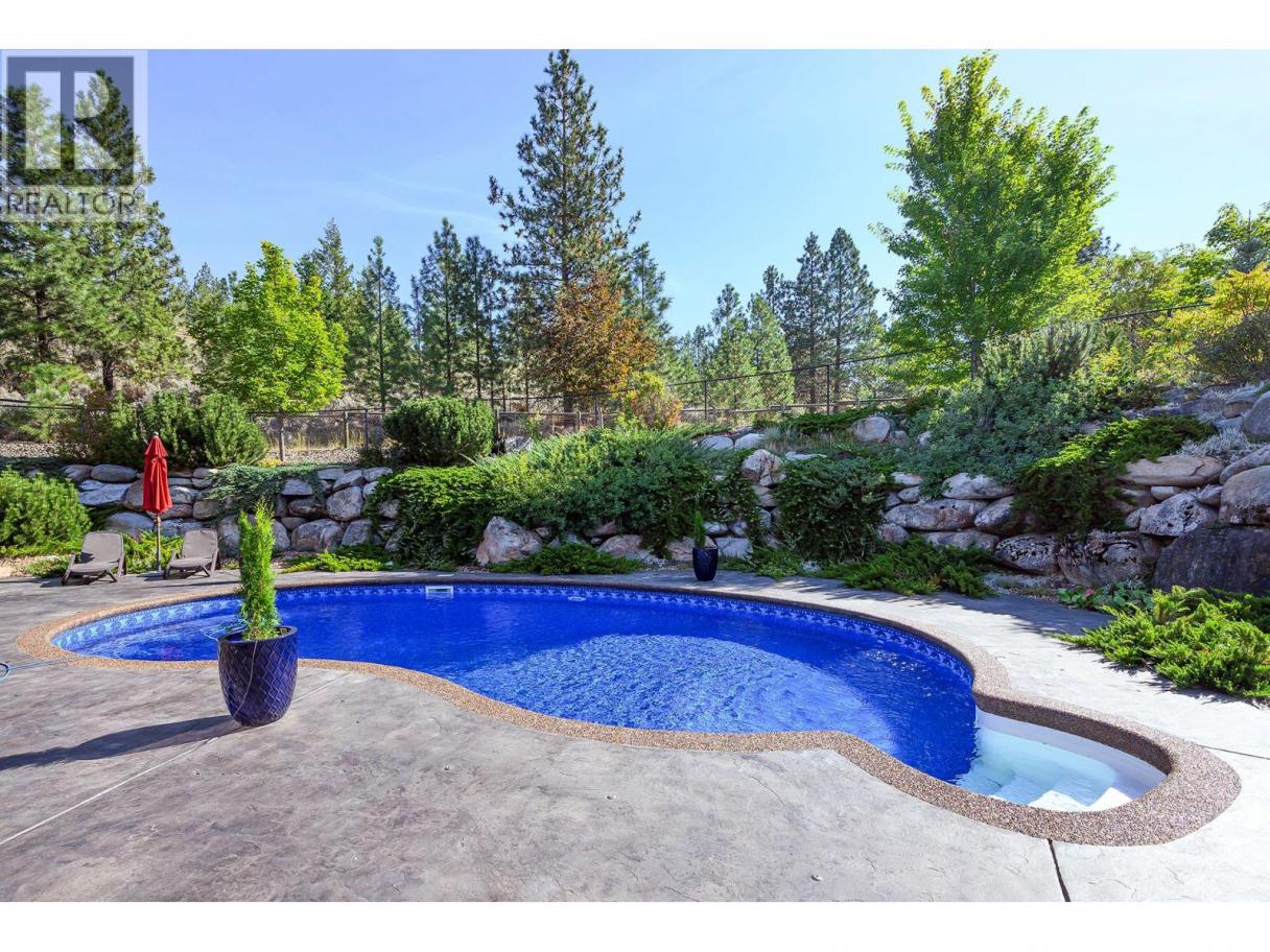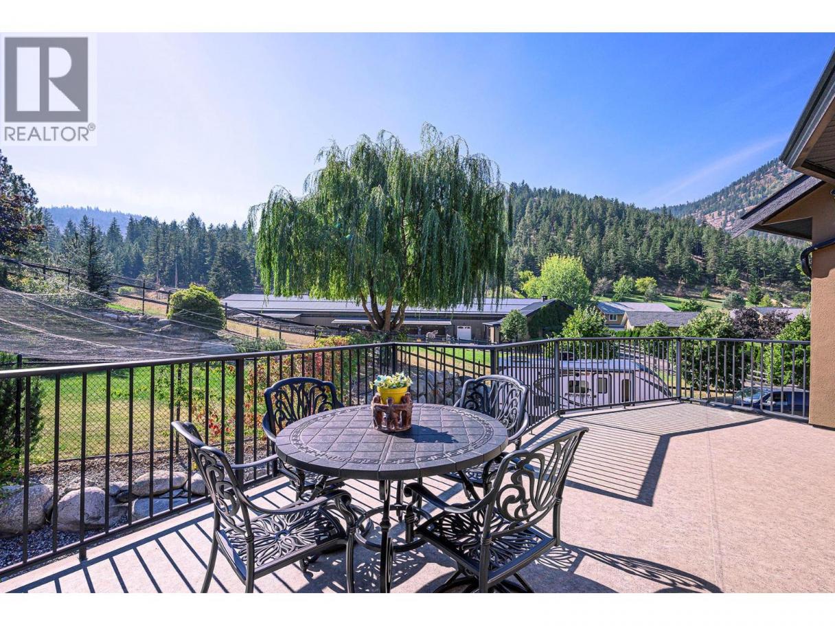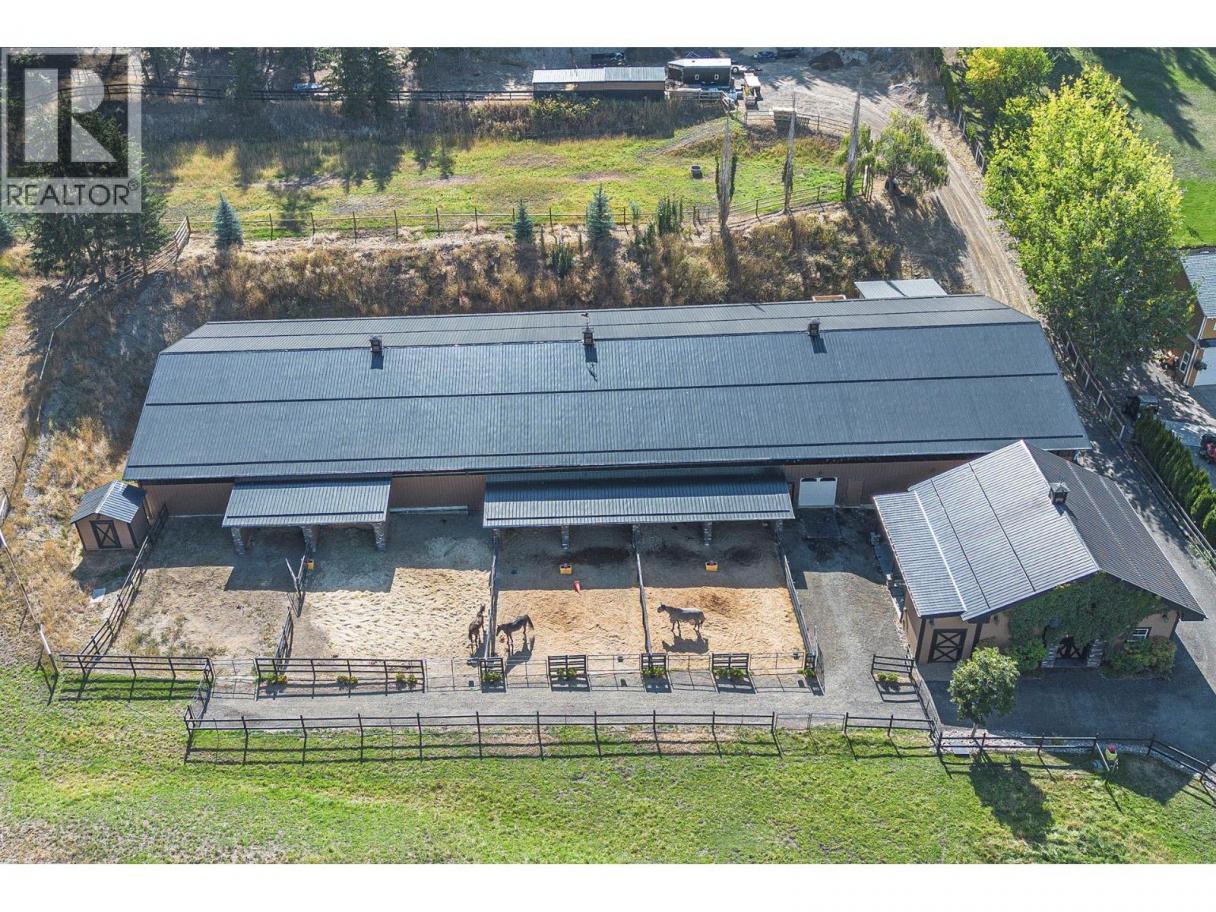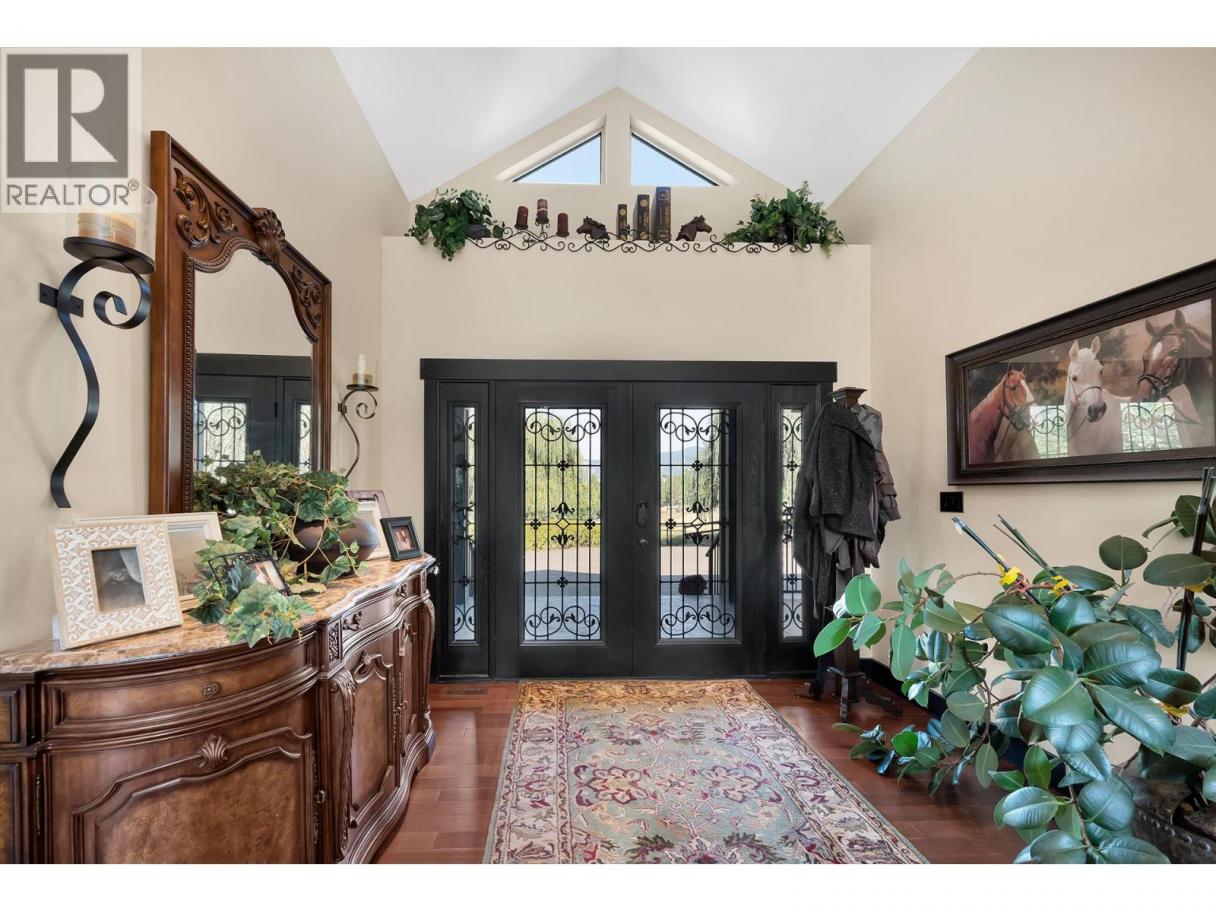 An exceptional opportunity to own a premier equestrian estate offering top-tier living, income potential, and unmatched versatility...all on 16 pristine acres within Kamloops city limits. Designed for both serious equestrian use & lifestyle appeal, the property features a state-of-the-art indoor arena built to competition dressage standards (20m x 60m). The bright, insulated/heated interior offers premium dust-free footing, full-length mirrors, and is ideal for year-round training, clinics, or boarding operations. The thoughtfully designed 3-stall barn includes a spacious foaling stall, insulated/heated interior, rubber flooring with cushioned underlay, and wash rack equipped with advanced red light therapy. Also plans & space for 2 more stalls & arena viewing area from the barn. Above, the loft presents excellent potential for a suite and/or staff quarters, adding flexibility for multi-family accommodation or business use. Fully irrigated & efficiently laid out, the property includes large paddocks with durable, chew-resistant fencing & lush grazing pastures...perfect for maintaining horse health while supporting a professional or boutique equestrian business. The 4,300 sq ft executive home delivers refined comfort with a grand foyer, vaulted ceilings, and an open-concept design. A chef’s kitchen anchors the space, complete with custom cabinetry, granite counters & backsplash, and premium Fisher & Paykel appliances including built-in fridge/freezer, double ovens, double dishwasher, wine cooler, garbage compactor & ice machine. The lower level offers additional value with a spacious family/games room and a self-contained one-bedroom suite...ideal for extended family or on-site staff. Outdoor living is equally impressive, featuring a kidney shaped saltwater pool, expansive patio areas, and beautifully landscaped grounds designed for both relaxation & entertaining. This estate delivers a rare combination of location, infrastructure, & income potential. (id:6769)