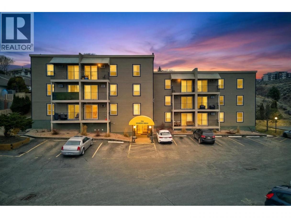Discover this super cute and affordable 1-bedroom apartment in central Kamloops, just minutes to TRU, downtown, the hospital, shopping, transit and more. This home has a bright, open living space with a fantastic view down the valley and over the North Thompson River. Enjoy fresh updates throughout including new lighting, paint, flooring, refaced kitchen cabinets, countertops, baseboard heaters, and balcony decking. The layout offers great storage, a cozy bedroom, and an easy-to-access balcony perfect for relaxing or watching year-round bird activity along Guerin Creek and its little waterfall — a surprisingly peaceful spot right in the city. Other perks include: low utility costs (approx. $35 in summer / $100 in winter), a window A/C included, 1 dedicated parking stall right in front of the unit, and easy location in the building for access in & out. This is a fantastic option for a first-time buyer, student, or anyone looking for an affordable investment property in a central location. Quick possession is possible. No pets allowed. Rentals allowed. (id:6769)