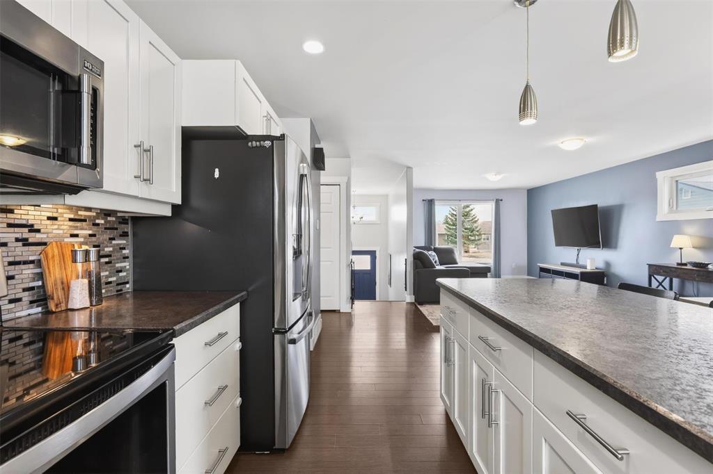 R10//Elie/SS April 13, offers reviewed April 20,5pm Welcome to Elie, where small-town charm meets everyday convenience, just a short drive to Wpg & PLP. This bright & inviting 1476 sqft home offering 5 bed(3 up, 2 down),2.5 bath & a functional layout designed for real life.The open-concept main living space is filled with natural light, featuring white cabinetry & a layout that keeps everyone connected. Enjoy your morning coffee in the east-facing living room, while evenings are best spent taking in stunning west-facing prairie sunsets over open fields.Primary bedroom includes a walk-in closet,4-piece ensuite creating a comfortable retreat.Downstairs, the fully finished lower level offers two additional bedrooms, a massive rec room, laundry room, convenient 2-piece bath perfect for growing families or extra space to relax & play.Step outside to a two-tier deck & fully fenced backyard, ideal for kids, pets, and summer entertaining. The oversized double garage adds even more value & functionality.Located close to daycare, all levels of schools,French immersion in St. Eustache,this home offers the space, comfort,& community. (id:6769)