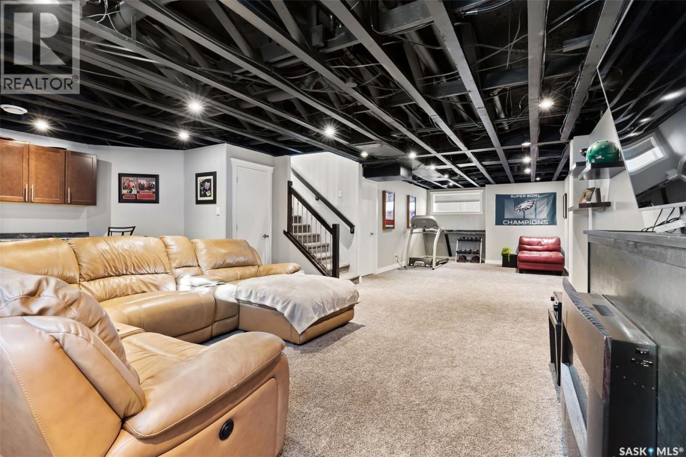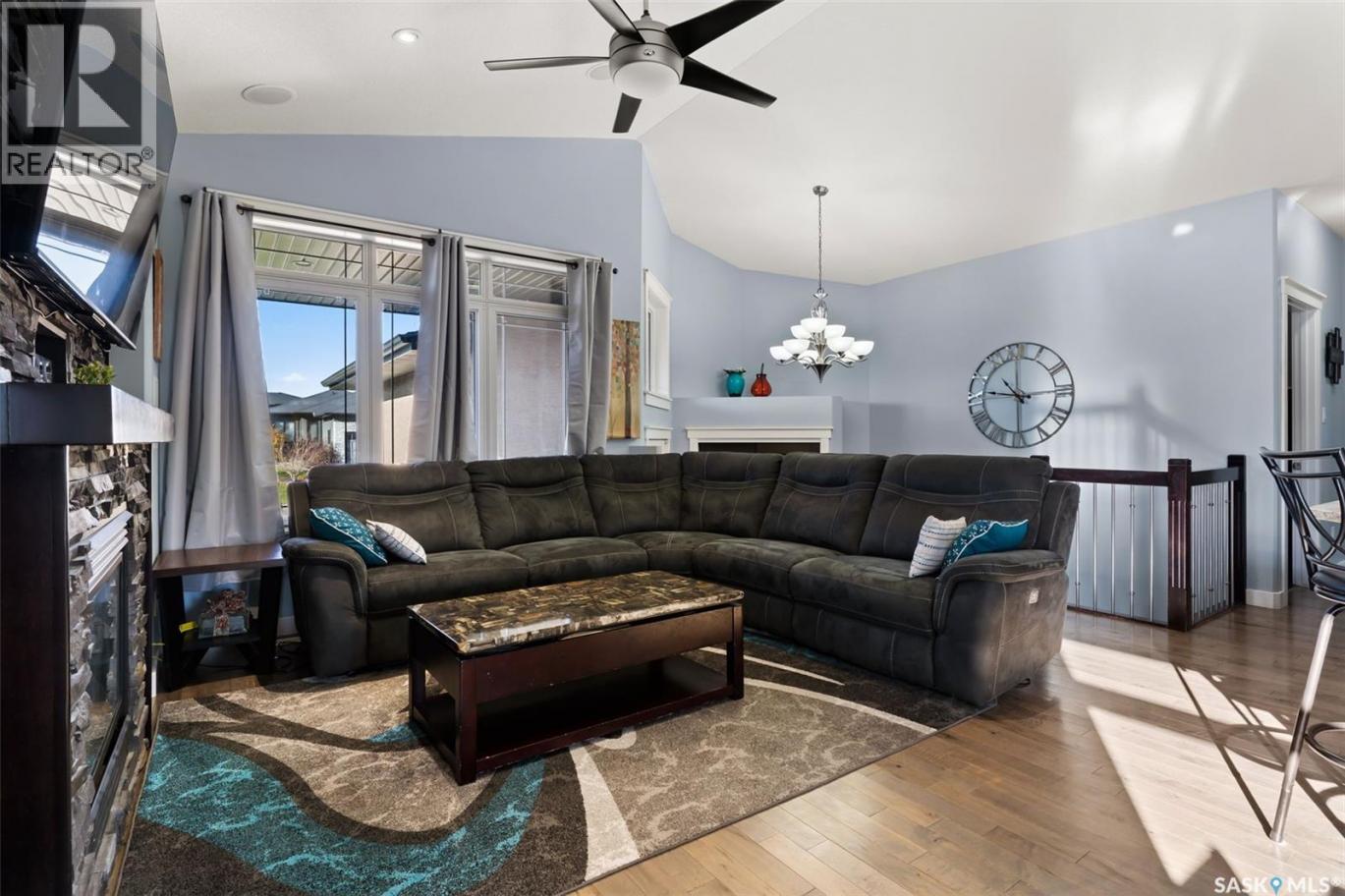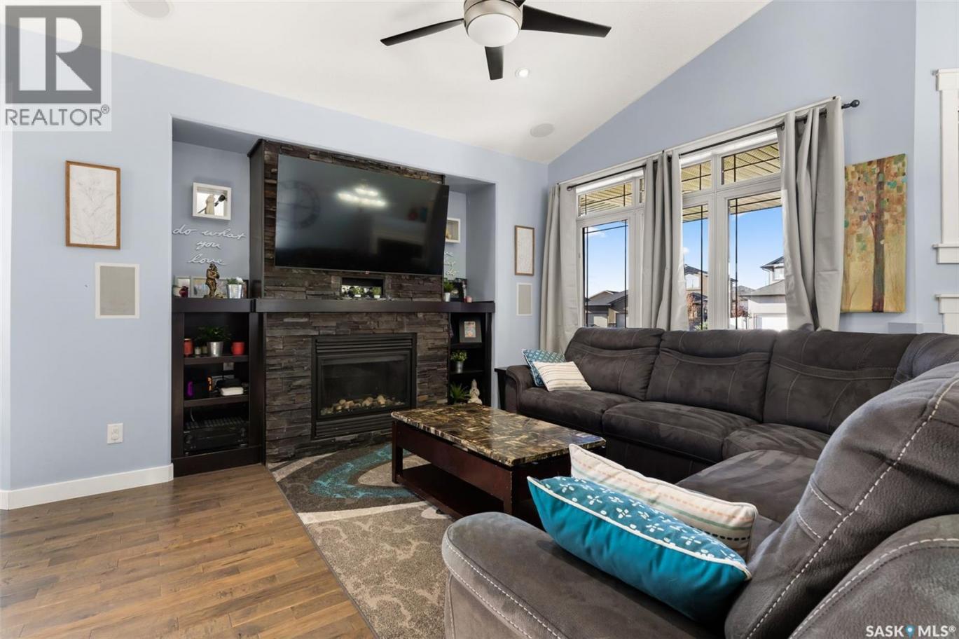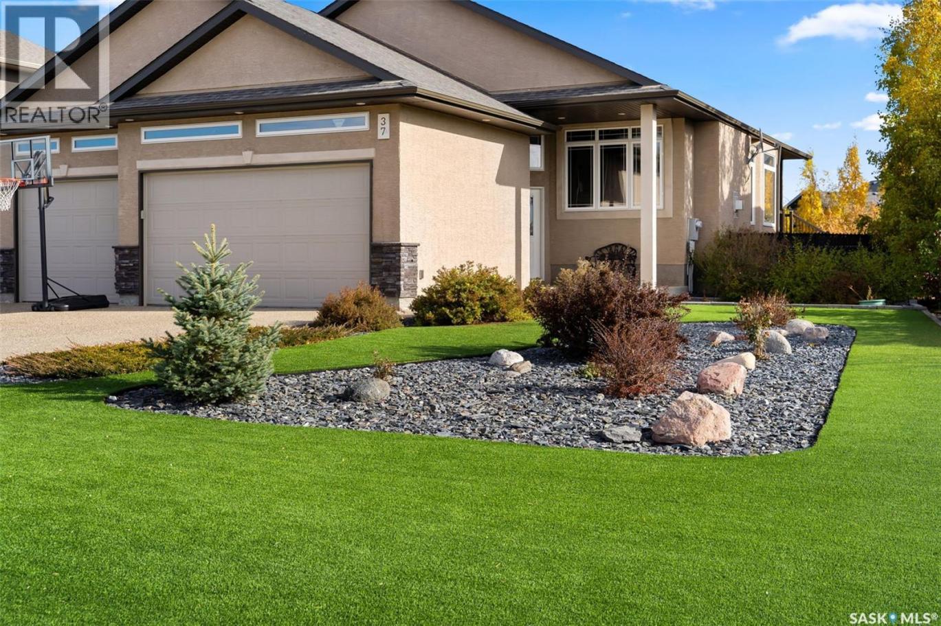 Welcome to 37 Churchill Crescent, White City – A move-in-ready family home just minutes from Regina and an easy walk to the brand-new school. From the moment you arrive, the xeriscaped front yard delivers jaw-dropping curb appeal with almost zero upkeep. Step inside to soaring vaulted ceilings, designer pot lights, and sunlight pouring across the open main floor. A stacked-stone gas fireplace anchors the living room, flowing seamlessly into the dining area and a chef-worthy kitchen featuring rich espresso maple cabinetry, granite counters, a huge eat-up island, walk-in pantry, and direct access to the covered veranda for effortless indoor-outdoor living. The private primary suite is a true retreat with its own deck door, spa-like 4-piece ensuite, and spacious walk-in closet. Two more bright bedrooms with clever recessed closets, a stylish 4-piece main bath, and convenient main-floor laundry round out the main level. Downstairs, the fully finished basement is built for fun and comfort: massive family room, dedicated games area, sleek wet bar, an oversized fourth bedroom, full 4-piece bath, and tons of storage. Builder spray-foam insulation keeps everything cozy and energy bills low. The heated 32'×26' triple garage with 14' ceilings and room for a car lift (negotiable) is a rare gem. The backyard is pure joy: hot tub, fenced dog run, raised garden beds, storage shed, underground sprinklers, and a huge covered veranda that extends the season. Meticulously maintained, loaded with upgrades, and ready for you to move in – this is the turn-key White City dream home you’ve been waiting for. Come fall in love today. (id:6769)