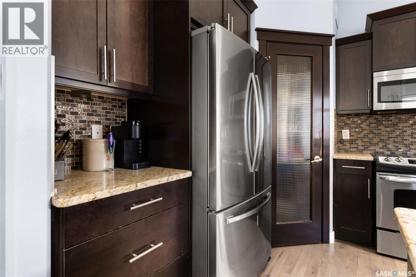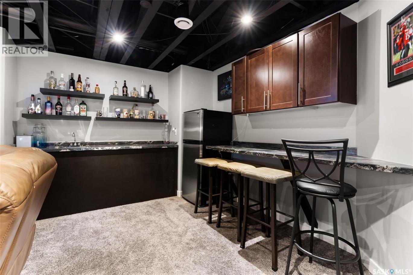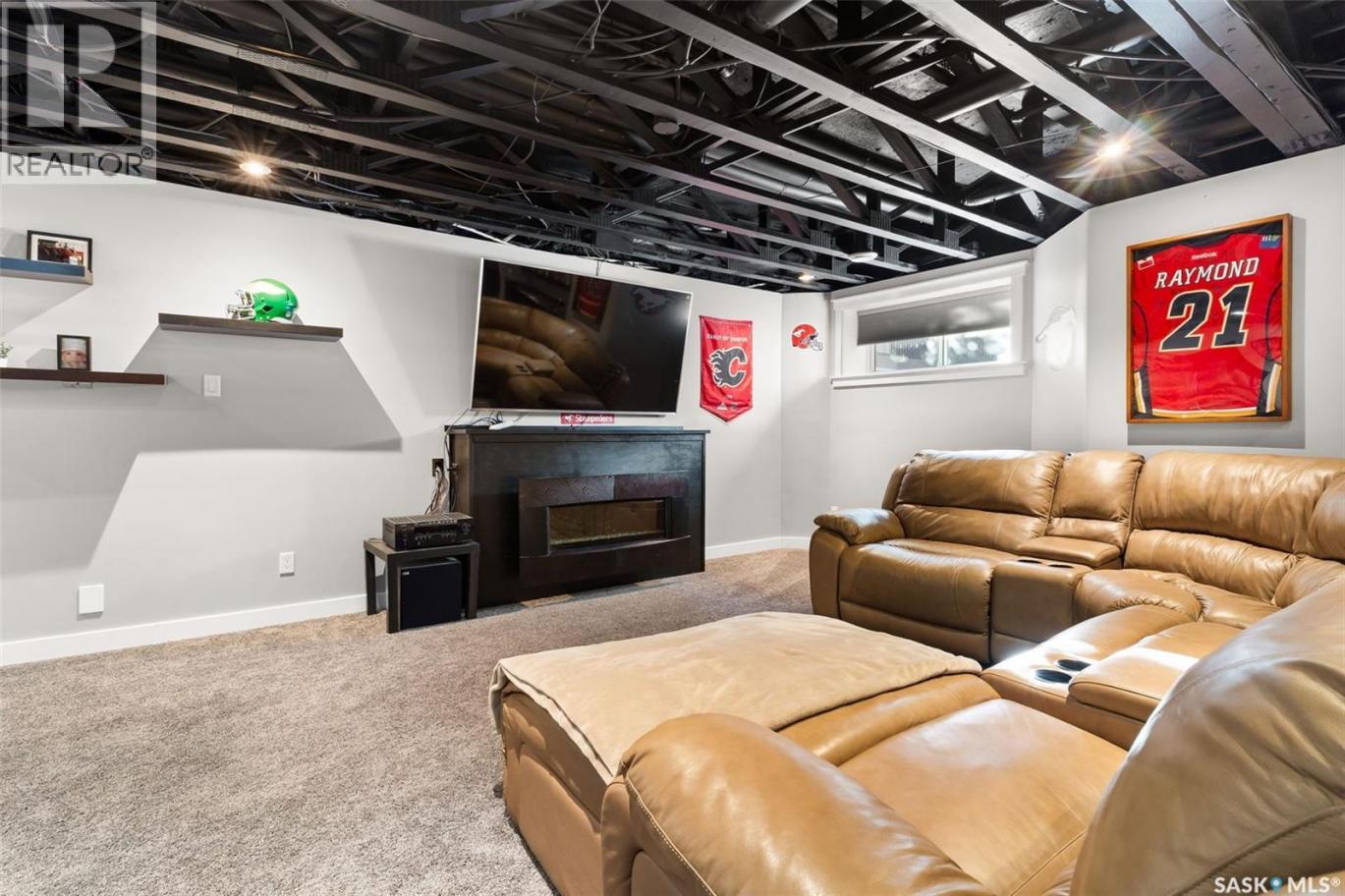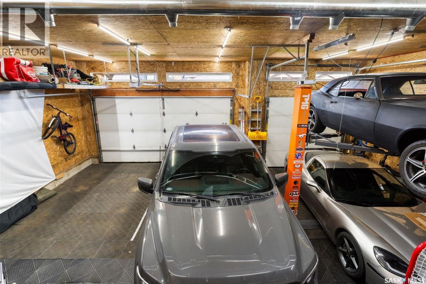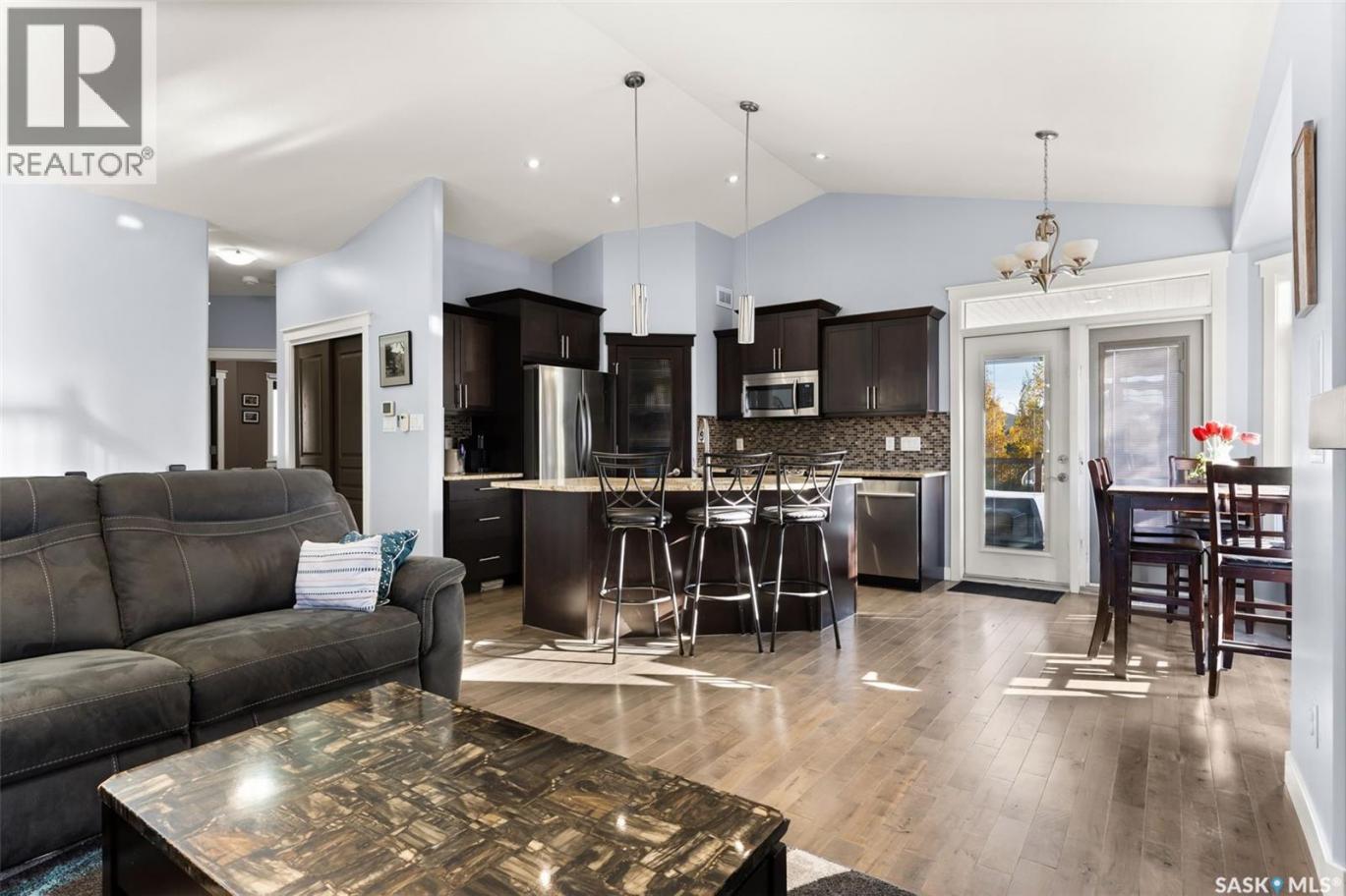 Welcome to 37 Churchill Crescent, White City – A move-in-ready family home just minutes from Regina and an easy walk to the brand-new school. From the moment you arrive, the xeriscaped front yard delivers jaw-dropping curb appeal with almost zero upkeep. Step inside to soaring vaulted ceilings, designer pot lights, and sunlight pouring across the open main floor. A stacked-stone gas fireplace anchors the living room, flowing seamlessly into the dining area and a chef-worthy kitchen featuring rich espresso maple cabinetry, granite counters, a huge eat-up island, walk-in pantry, and direct access to the covered veranda for effortless indoor-outdoor living. The private primary suite is a true retreat with its own deck door, spa-like 4-piece ensuite, and spacious walk-in closet. Two more bright bedrooms with clever recessed closets, a stylish 4-piece main bath, and convenient main-floor laundry round out the main level. Downstairs, the fully finished basement is built for fun and comfort: massive family room, dedicated games area, sleek wet bar, an oversized fourth bedroom, full 4-piece bath, and tons of storage. Builder spray-foam insulation keeps everything cozy and energy bills low. The heated 32'×26' triple garage with 14' ceilings and room for a car lift (negotiable) is a rare gem. The backyard is pure joy: hot tub, fenced dog run, raised garden beds, storage shed, underground sprinklers, and a huge covered veranda that extends the season. Meticulously maintained, loaded with upgrades, and ready for you to move in – this is the turn-key White City dream home you’ve been waiting for. Come fall in love today. (id:6769)