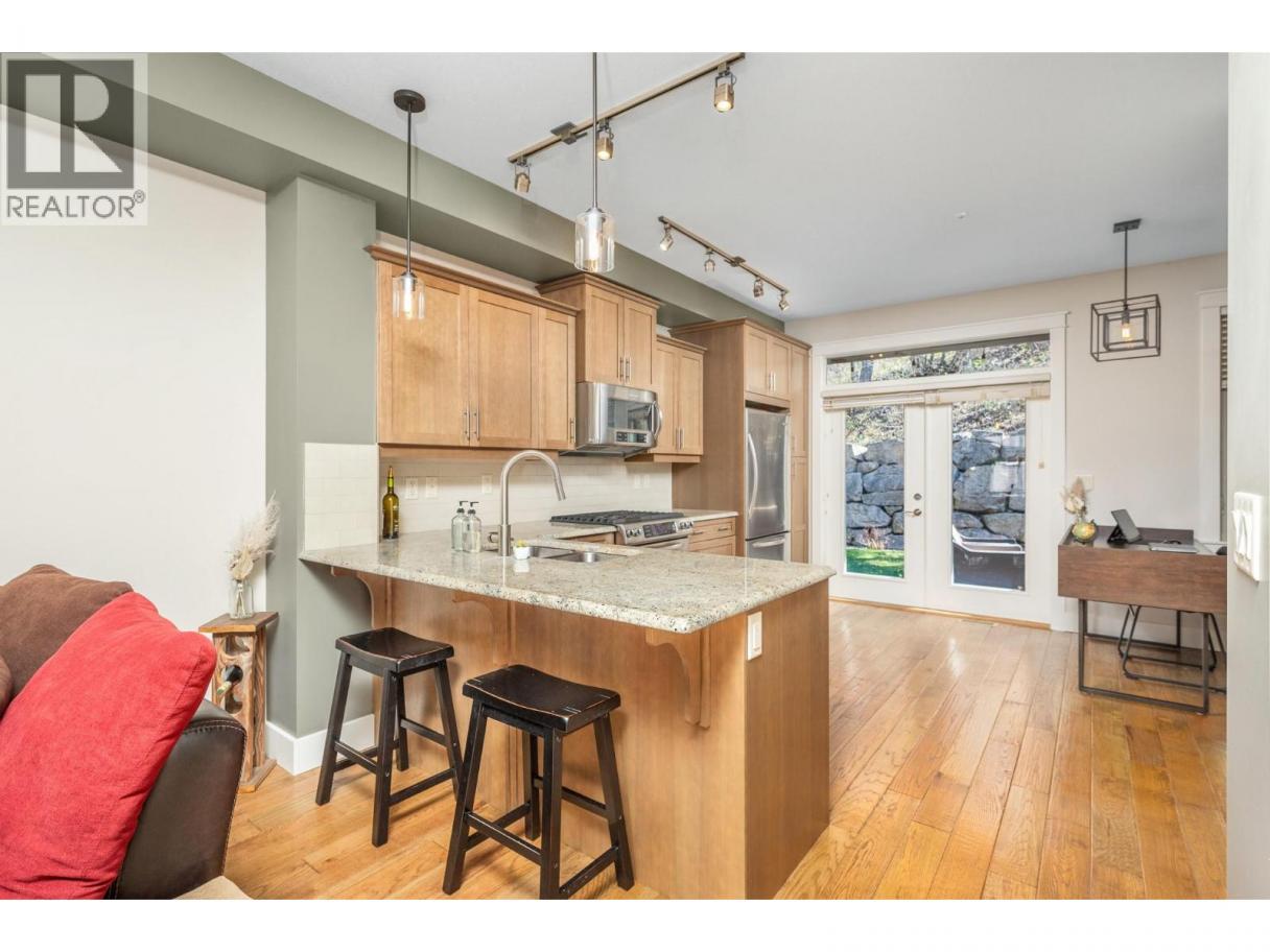 An exceptional opportunity to live where you play! This beautifully designed 2-bedroom townhome offers a true sense of home from the moment you step inside. The inviting open-concept layout features hand-scraped oak hardwood flooring and gourmet kitchen with stainless steel appliances, gas range, granite countertops and bar along with a spacious breakfast nook—perfect for everyday living and entertaining. Step outside to your private patio and backyard, ideal for relaxing or summer BBQs. The bright living and dining areas showcase a cozy gas fireplace and lovely views of the PR 7th green. Upstairs, the spacious primary suite offers a luxurious ensuite with double sinks, heated floors, and a large tiled shower. The second bedroom features a built-in Murphy bed and private ensuite—perfect for guests, an office, or den. The man-cave, double-length garage with epoxy flooring also provides tons of extra storage. Enjoy access to the Fitness Centre with gym, yoga studio, indoor pool, hot tub, and steam rooms. Plus homeowner enjoy discounts on golf and clubhouse dining or Palino’s Pizza. Optional Racquet Club membership offers tennis and pickleball all year round. Miles of trails right right outside your door for hiking and biking or pamper yourself at Sparkling Hill Wellness Hotel a short 3 mins from your home. Resort living at its finest—your next home awaits! (id:6769)