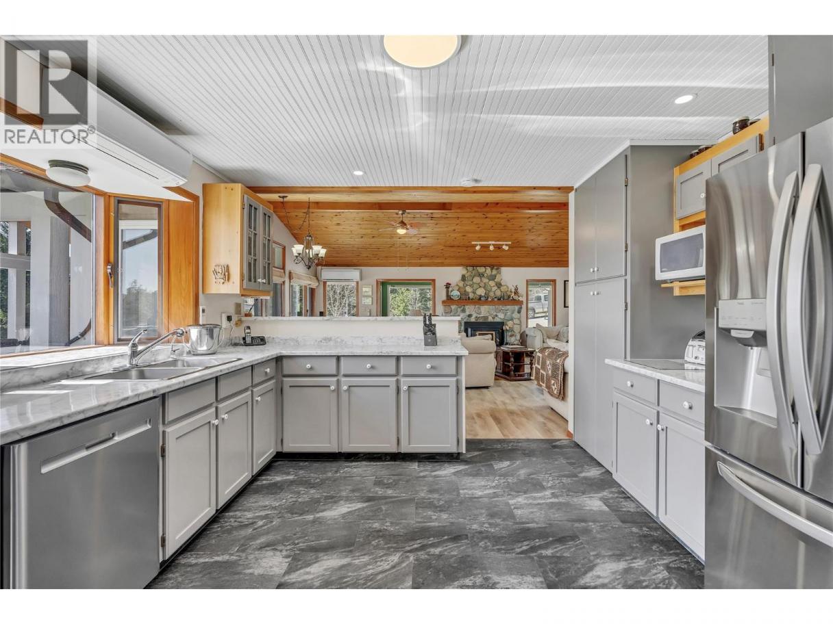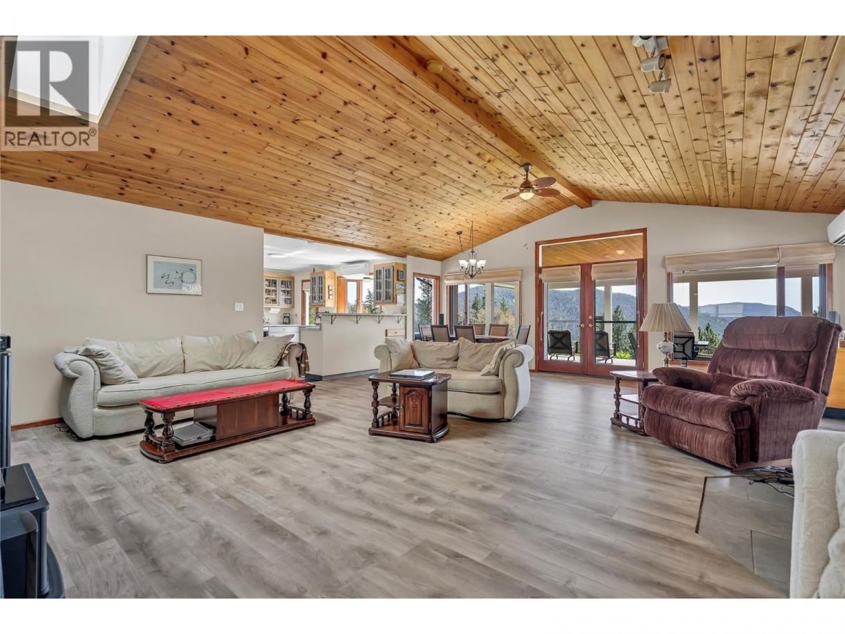 Remarkable 56-acre property offers the utmost in privacy & breathtaking views. Rancher, with bright foyer entry, leading to a living rm, new lux vinyl plank floor, Blaze King Princess insert. Vaulted ceilings & lg daylight windows create a spacious, inviting atmosphere, with a stunning stone fireplace. Open kitchen includes a eating bar, new floor & appliances. Dining area with French doors. 3 bedrooms & 2 baths, inc a master suite with a 4-piece bath & WIC. Laundry rm with 4-piece bathroom. Enjoy the covered stamped concrete patio, with hot tub & BBQ, perfect for entertaining & watching Okanagan sunsets. The property boasts over two acres surrounding the home, secured with deer fencing, automatic gate entry, & cameras for peace of mind. Two-car garage with a breezeway to the front door provides convenience. Detached garage w/200 amp service, 2 bays, & 531 sq ft workshop w/ wood stove, basement & cold storage area an extra 385 sq ft, ideal for storage. A greenhouse, fenced garden area, fruit trees. Water via 2 legal licenses, a drilled well on-site ready to hook up. Home has a RO system & a Grundfos pump. Mini split heat pumps for efficient cooling & heating yr-round. All this 20 minutes from Summerland, close to recreation amenities. Starlink Internet is available for reliable connectivity. Situated on a no-thru road, near school bus route, ensuring convenience for families. It represents a dream come true. Contact us today to schedule a viewing. (id:6769)