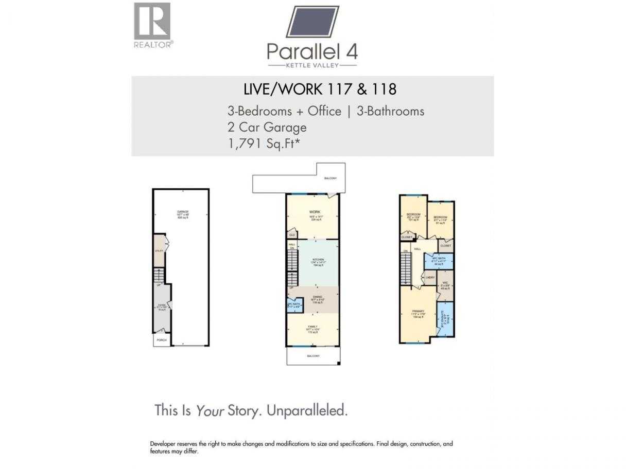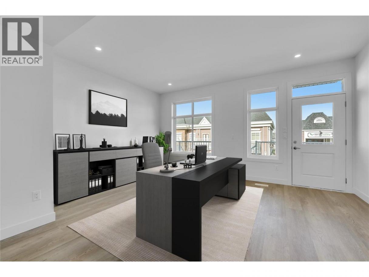 Unparalleled Living in Kettle Valley. Why Wait for Someday? Your Kettle Valley Story Starts Now. Brand New, Move-In Ready. Perfectly positioned parallel to Main Street, Parallel 4 is more than a new address. It’s a living hub designed around the 4 cornerstones of an unparalleled life: community, nature, purpose, & growth. Parallel 4 introduces one of only 3 exclusive Live/Work homes—designed with home-based business owners in mind without compromising your personal living area. The dedicated work area features double pocket doors providing separation from the main living area, street front access off Main Street & opportunity for signage—ideal for bookkeepers, counselors, designers, advisors, & more. Step inside the 3-bed, 3-bath townhome featuring an open-concept main floor with 9ft ceilings and large windows. The gourmet two-tone kitchen shines with a quartz waterfall island, designer finishes, & Wi-Fi-enabled Samsung appliances. Upstairs, the primary suite offers a walk-in closet & ensuite with quartz counters & a rainfall shower. 2 additional beds, a full bath, & laundry complete the upper floor. Enjoy a covered deck off the living room, an XL tandem garage with EV rough-in, & rear lane access. Live in Kelowna's sought-after family community, Kettle Valley. Move-in ready & PTT-exempt. Live/Work homes starting from $789,900. Showhome open at #106 Sat-Sun12-3pm. (id:6769)
