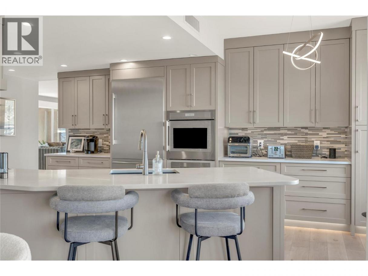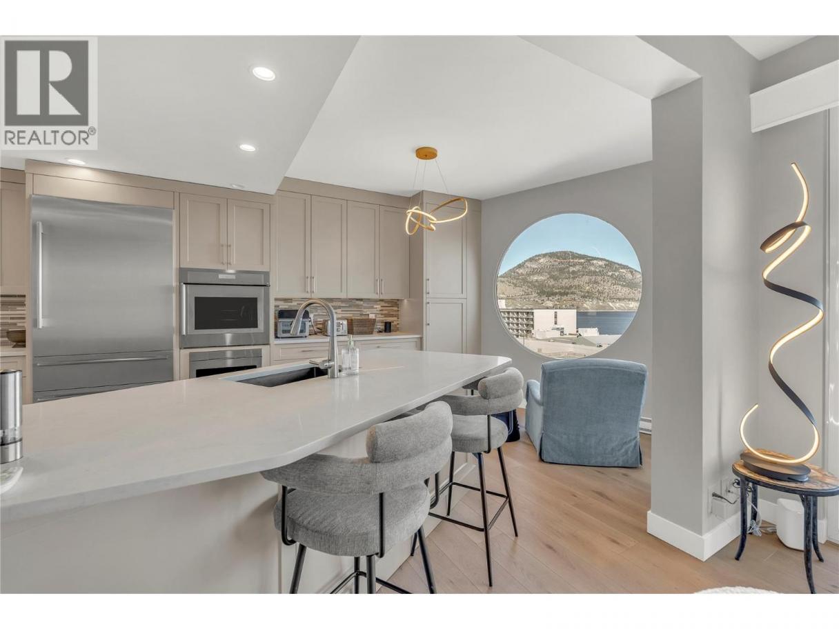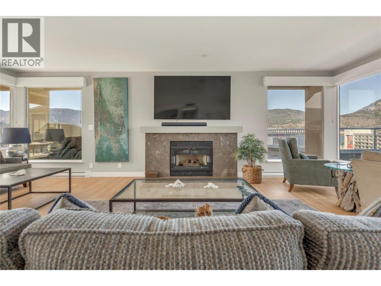 Perfectly positioned in one of Penticton’s most sought after addresses, this gorgeous penthouse at 86 Lakeshore Drive delivers a truly rare offering, unobstructed, panoramic views spanning Okanagan Lake, the City of Penticton, and the surrounding mountains from every window. With over 1,200 sq.ft. of wraparound deck, this is a front row seat to the Okanagan lifestyle. Beautifully updated throughout, this home showcases a stunning custom kitchen with quartz countertops, premium stainless appliances, and seamless flow to a sunlit nook with direct access to the lakeview deck. New flooring carries throughout into an expansive living space anchored by a gas fireplace, bar with wine and beverage fridges, and walls of glass framing breathtaking views in every direction. The layout is both functional and refined, offering a den/office, sunroom, an impressive primary retreat with walk-in closet, full ensuite, and direct deck access, plus a spacious second bedroom with its own ensuite and equally stunning views. Set directly across from the beach, park, and Okanagan lake, this exclusive 55+ residence includes two secure underground parking stalls and storage. This is more than a home, it’s penthouse living at its finest. (id:6769)