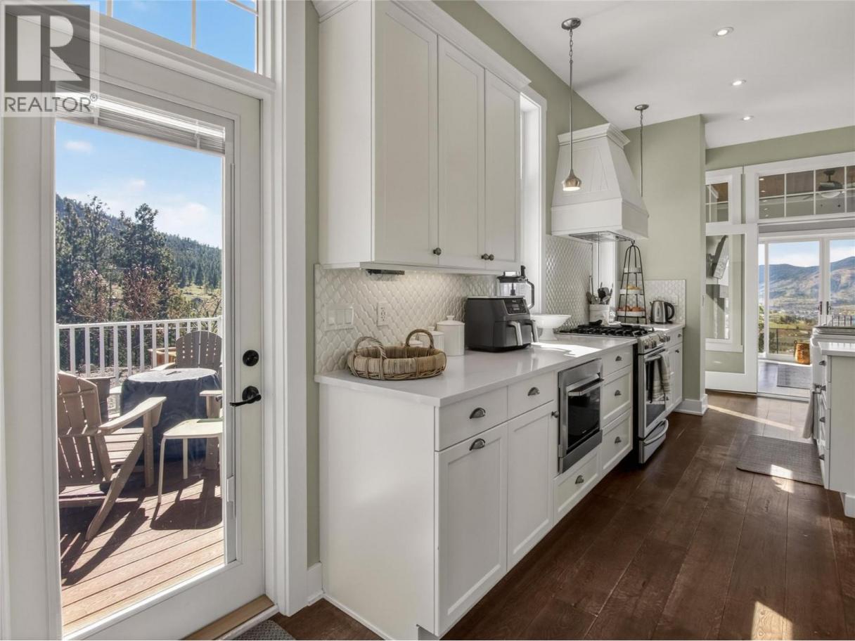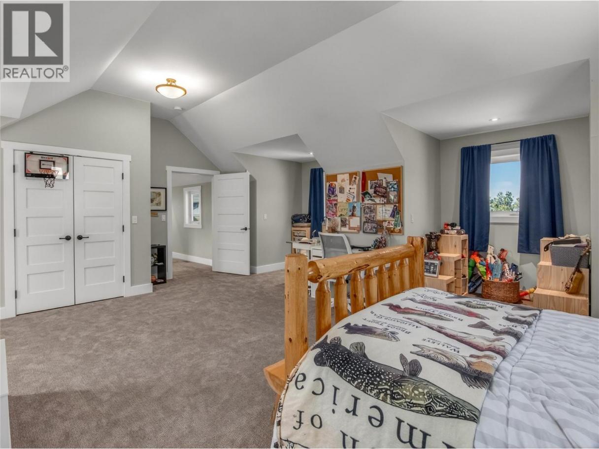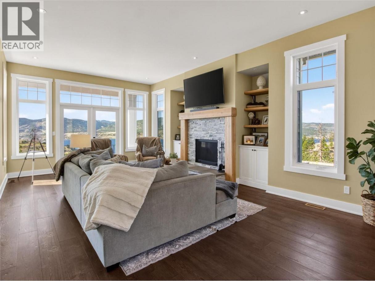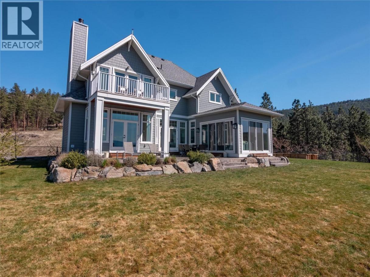 Perched above the Naramata Bench sits this once in a lifetime, completely private, legacy property on 17.15 acres with epic views! Built in 2016 this 4386sqft home has 4 bedrooms & 4 bathrooms with views from every window. As you enter the home you’ll notice the 10’ ceilings, hardwood floors, natural light, & views. The large living room has a stunning Giltin door wood fireplace, the gorgeous dining room has built ins, & both rooms have doors out to the beautiful front patio. The classic farmhouse style kitchen features quartz counters, gas stove, center island, tons of cabinetry, & access out to the South facing deck with BBQ adjacent to the kitchen garden beds. Off the kitchen is a 2nd family room with a cozy propane fireplace & 2 sets of patio doors for indoor/outdoor living. The upstairs has 10’ ceilings, laundry, a large guest room, huge kids room that could be divided into two, and the stunner primary suite complete with walk in closet, gorgeous ensuite with soaker tub and shower & double vanities + a private deck to take in the sunsets. The ICF basement has 9’ ceilings & features a rec room big enough for a pool table, a blaze king wood stove, & a wine bar. Theres also a 4th bedroom, bathroom, & an office. The irrigated yard has about a .5 acre fenced with garden beds & a chicken coop, plenty of room for a pool, + 2 acres behind the house in a field. Live with total privacy & access to three blind mice bike park, frisbee golf, KVR, 3 Mile Beach & pump track. (id:6769)